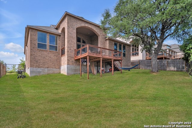 Welcome to this exquisite 2-story home nestled within the prestigious gated community of Johnson Ranch. Boasting a total of 5 bedrooms and 4.5 baths, this residence offers an abundance of space, luxury, and privacy. The grand entrance sets the stage for the rest of the home, featuring soaring ceilings, an open floor plan, and an abundance of natural light that floods the interior. The spacious living area is adorned with beautiful tile floors and fireplace. The gourmet kitchen is a chef's dream, equipped with top-of-the-line stainless steel appliances, granite countertops, and ample cabinet space. Retreat to the luxurious primary suite, located on the main level, which offers a peaceful sanctuary with a generous walk-in closet and a spa-like en-suite bathroom. The remaining four bedrooms, located on the upper level, provide ample space for family members or guests, each featuring its own well-appointed bathroom. Quick access to Hwy 281. Near shopping and groceries.