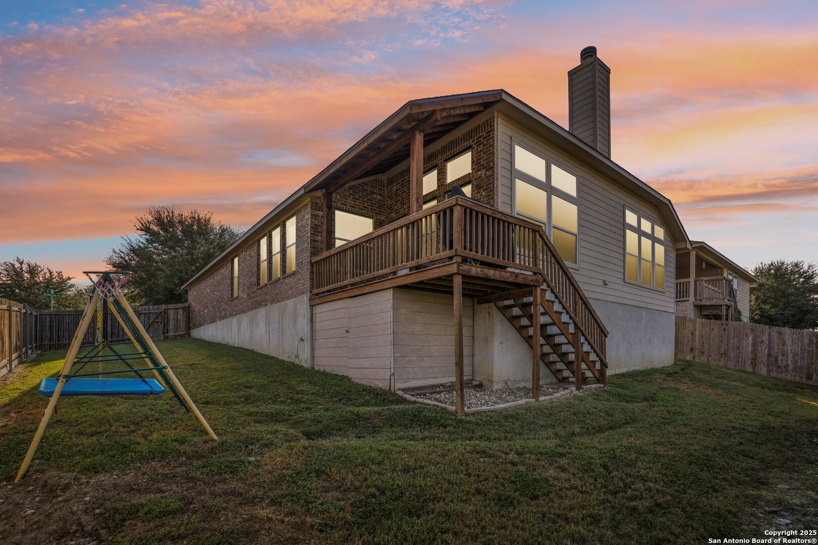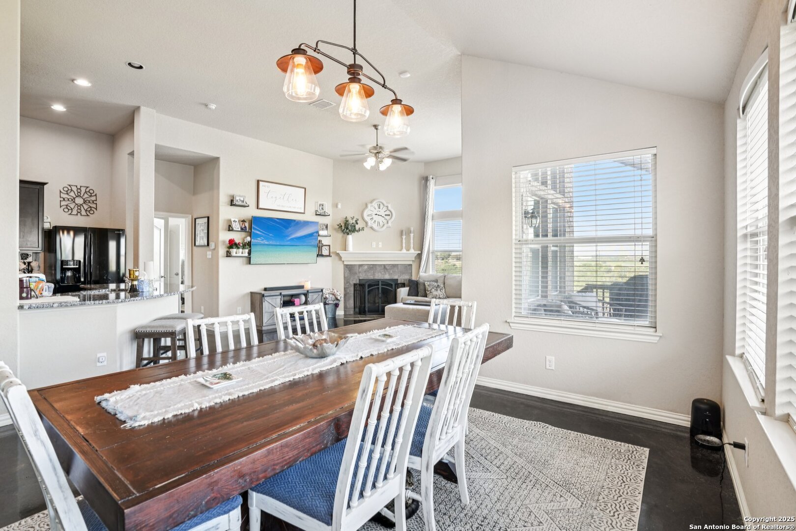 SUNSET VIEWS, CULDESAC PRIVACY, GENERATOR READY & BRAND NEW ROOF ARE JUST SOME OF THE LUXURIES WELCOMING YOU HOME TO YOUR NEW MAGNOLIA SPRINGS DREAM HOME! Beautifully updated 3 bed, 2 bath home tucked away in Magnolia Springs with stunning sunset views and modern upgrades. Featuring stained concrete floors throughout, an open kitchen with granite counters and large island, and a spacious living room with wood-burning fireplace. Primary suite offers dual vanities, separate tub/shower, and walk-in closet; secondary bedrooms include oversized walk-ins. Enjoy outdoor living on the covered deck with fenced yard and storage below. Peace of mind with new impact-resistant roof (2025), water heater (2023), and whole-home generator plug. Tucked in the back of the neighborhood with Comal ISD schools, low HOA, and close to New Braunfels favorites like Gruene River Grill and On the Grind Coffee. WE CANT WAIT TO MAKE THIS HOUSE YOUR HOME!
