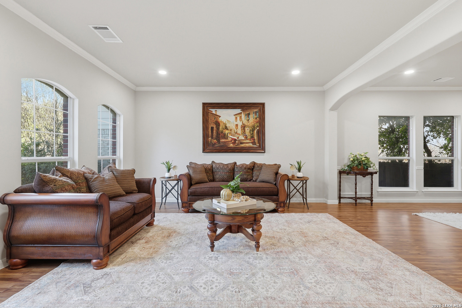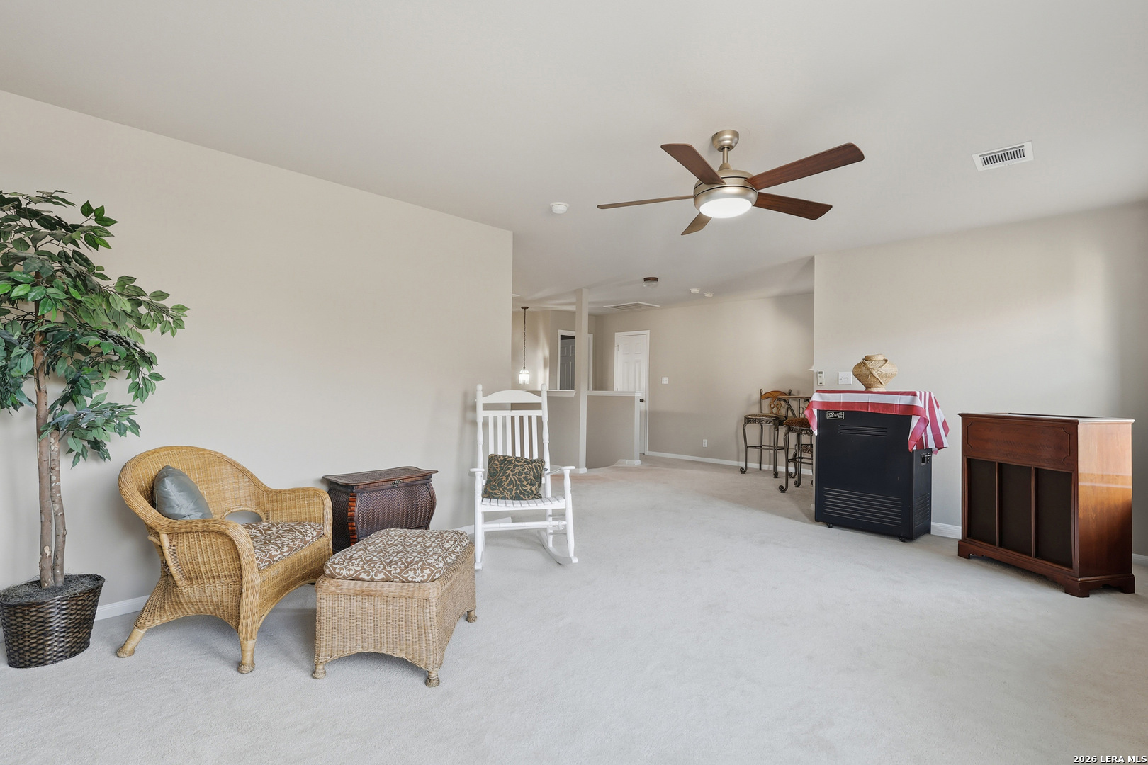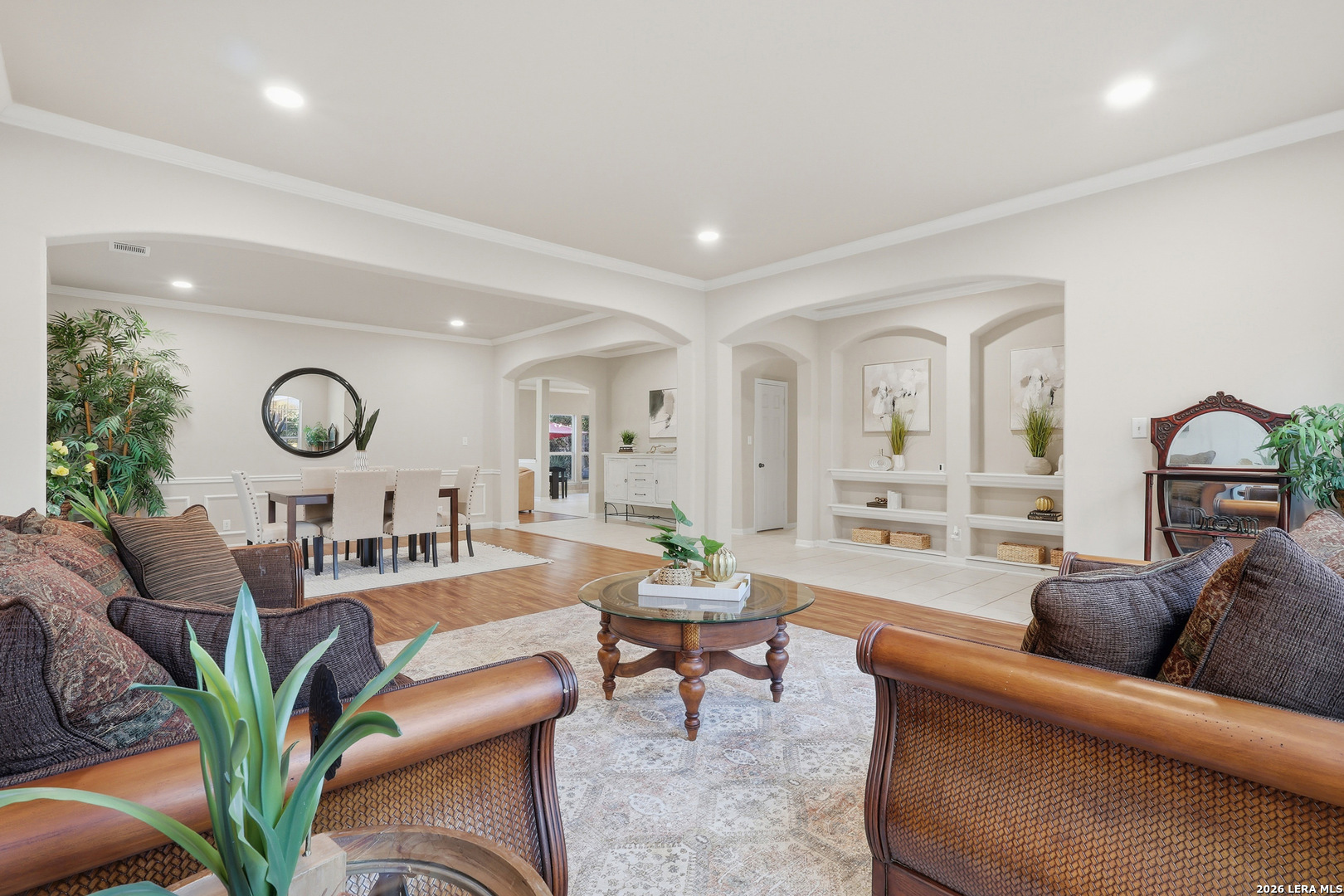 So Much Value Under One Roof in Finesilver! This spacious 3,850 sq ft, 5-bedroom, 3 full bath home offers an incredible amount of living space in the highly desirable Finesilver community. The open floor plan features two generous living areas and two dining spaces, making it ideal for both everyday living and entertaining. A guest bedroom with a full bath is conveniently located downstairs, along with the utility room. The main living area showcases a cozy fireplace framed by built-in shelving, creating both warmth and functionality. Recent updates include luxury vinyl plank flooring in the living and formal dining areas and fresh interior paint. Upstairs, you'll find a large primary suite with a spacious bathroom and separate his-and-her closets. A sizable game room and three additional bedrooms all with walk-in closets that provide plenty of space and storage for everyone. Major improvements include two HVAC systems replaced in 2023 and foundation repairs completed in 2021 with a transferable warranty for added peace of mind. Step outside to enjoy lush, tropical landscaping and a private backyard retreat. This home combines space, updates, and long-term value in one of the area's most sought-after neighborhoods.