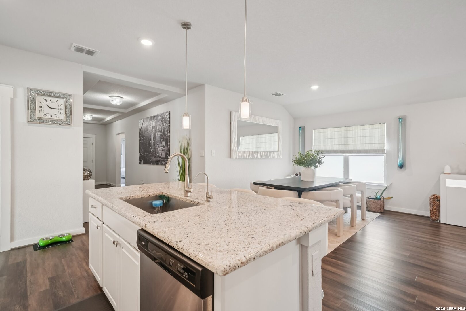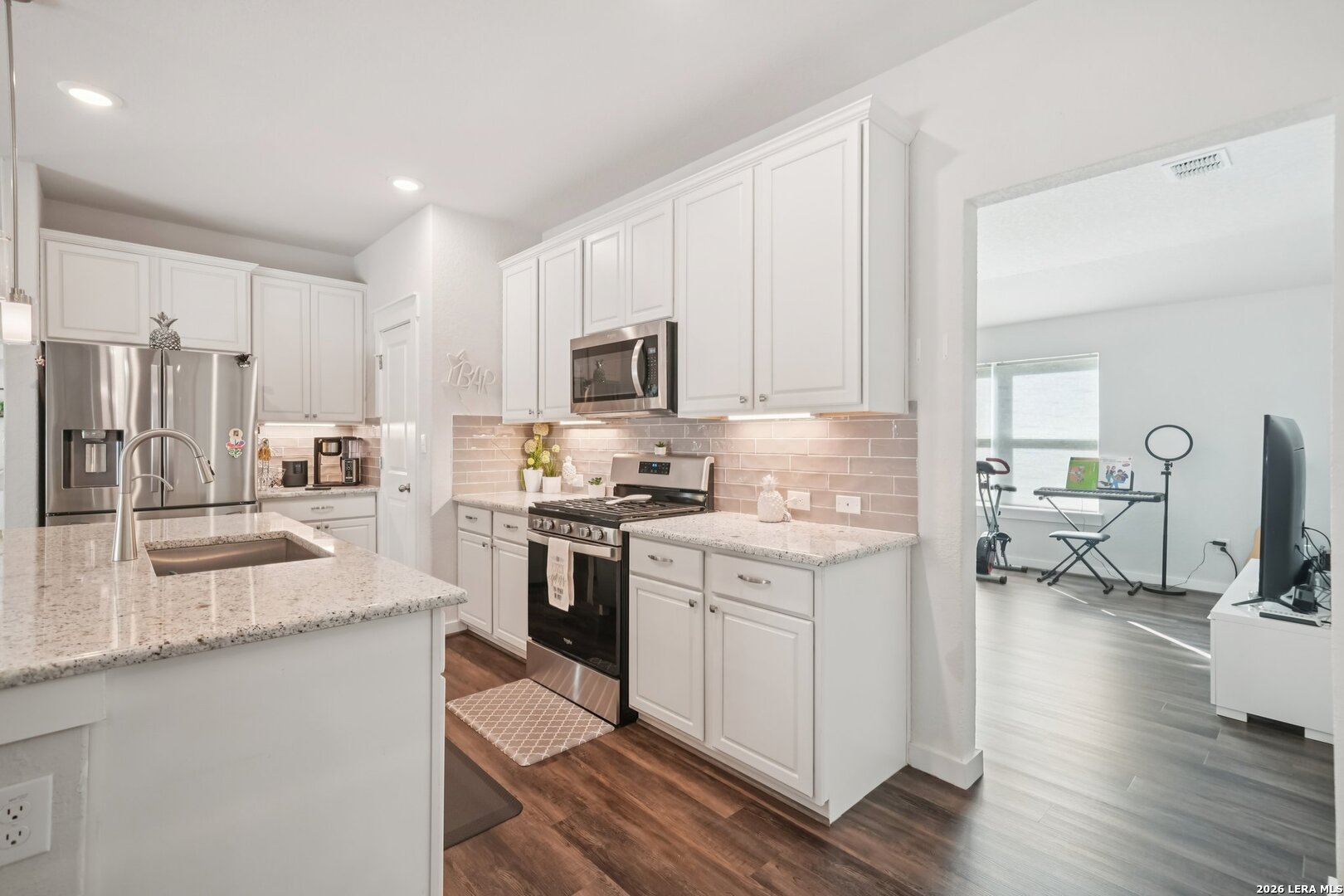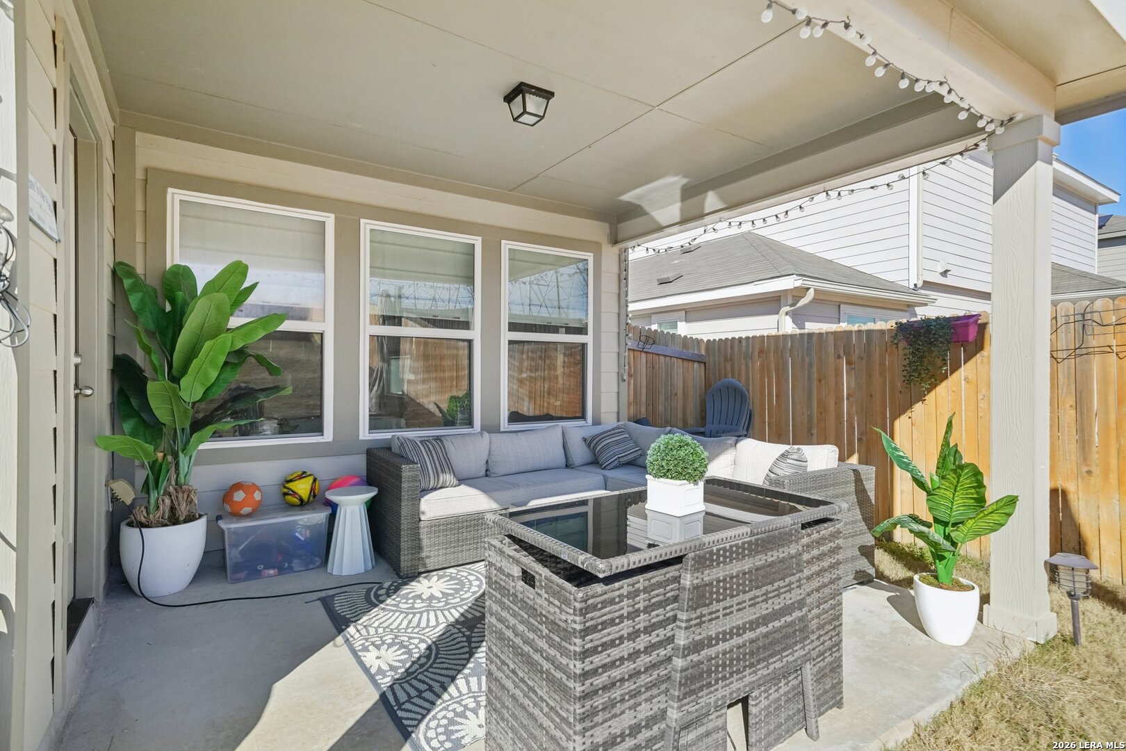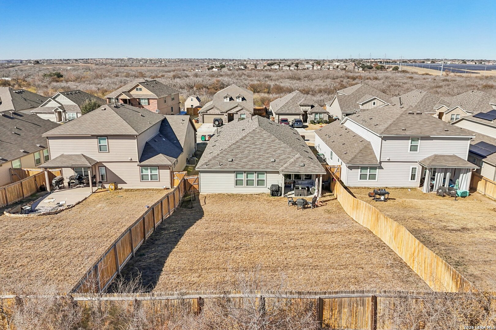 ** OPEN HOUSE on Sunday, 02/15/2026 from 11am-1pm** Beautifully maintained single story home featuring an inviting open floor plan designed for comfortable everyday living. This four-bedroom home includes additional space that can function as a game room, home office, or extra family area to suit a variety of needs. High ceilings and recessed lighting throughout enhance the bright and airy feel of the interior. The kitchen is a true focal point with stainless steel appliances, granite countertops, a spacious kitchen island, and a convenient breakfast bar, ideal for both daily use and entertaining. The primary living areas flow seamlessly to the backyard, where a covered patio and privacy fence create a relaxing outdoor retreat. With the property backing to greenspace, there are no back neighbors, offering added privacy and openness. Conveniently located with an easy commute to Randolph Air Force Base, Lackland Air Force Base, and Fort Sam Houston, along with easy access to I 10, this home combines comfort, functionality, and accessibility in one well-kept package.