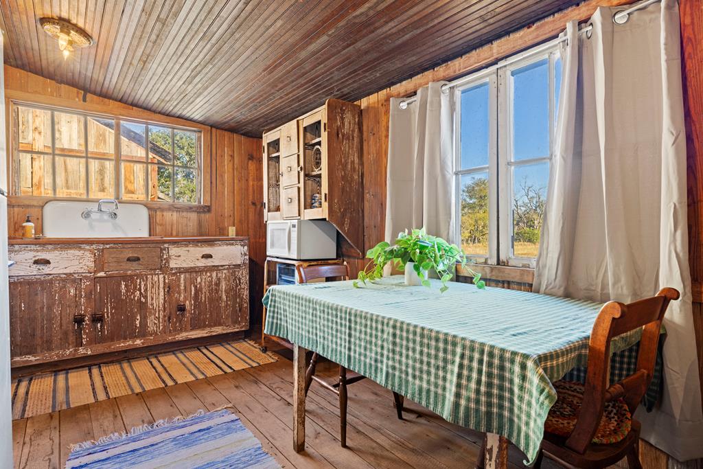 This property offers direct frontage along HWY 16 and additional easement access via Kneese Road. The topography is relatively level with some hardwood cover and field. Palo Alto creek flows through the property for 2,100'+ with both sides ownership. A small pond was constructed and will hold water year around in normal rainfall conditions. The rock home was originally built in the late 1800's and is a 3 bedroom 2 bath with 2 fireplaces and has been remodeled with wood and other antique appointments over the years. The outbuildings consist of a barn shipped from Sweden and reassembled on site, a small 2 bedroom guest cabin that was brought in from San Antonio and an additional wood barn that was brought in from La Grange, TX. There is an additional original feed & storage barn located behind the house