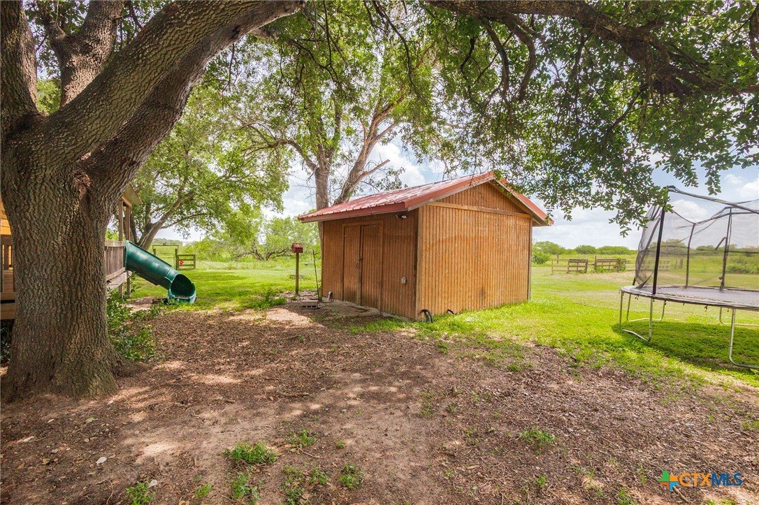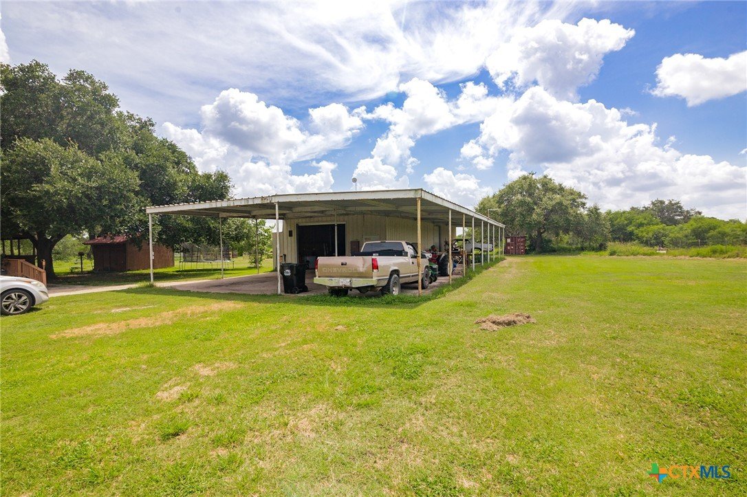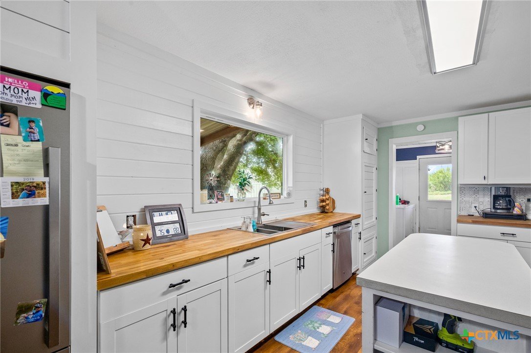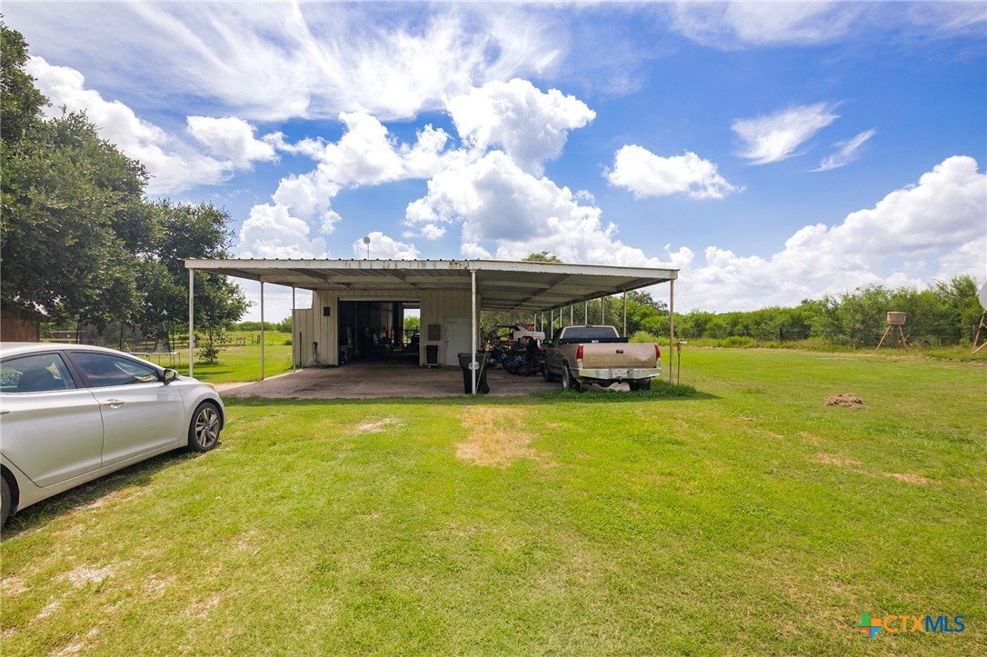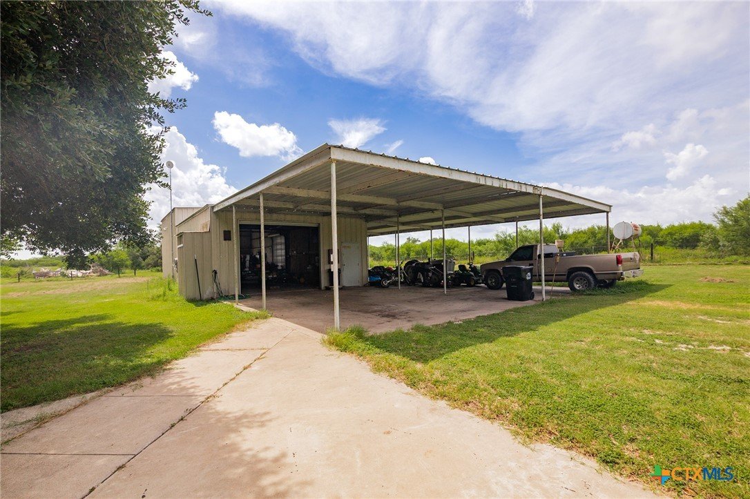 Beautiful 5 acres (with the option to purchase additional acreage) in Goliad County. Property boasts an updated 3-bedroom, 2-bathroom home. New flooring, a completely updated kitchen, and a window that overlooks the backyard make this a must-see. The house has a completely new modern look inside. The kitchen features a central island. The laundry holds a dog bath. The home is complete with a three-door shop on a concrete slab and even a car lift. Country living with a modernized feel.