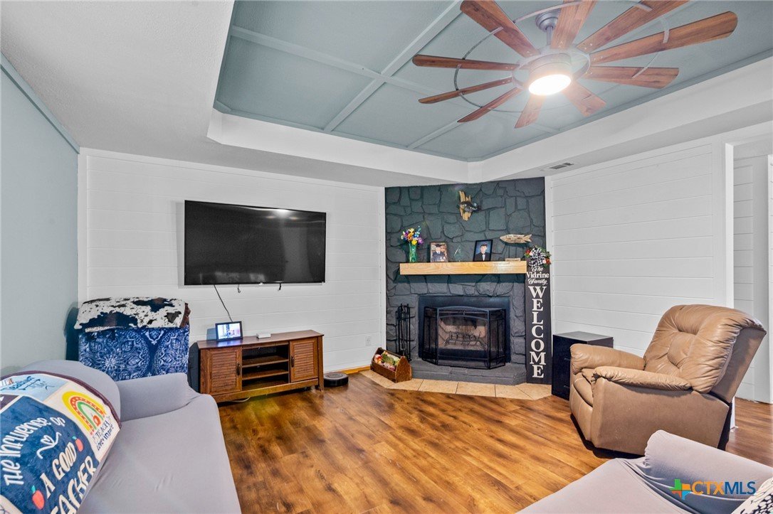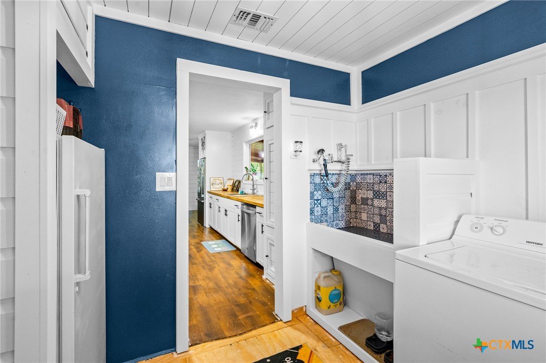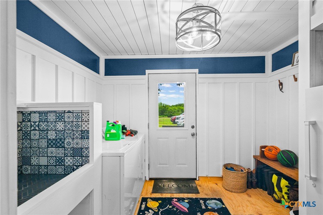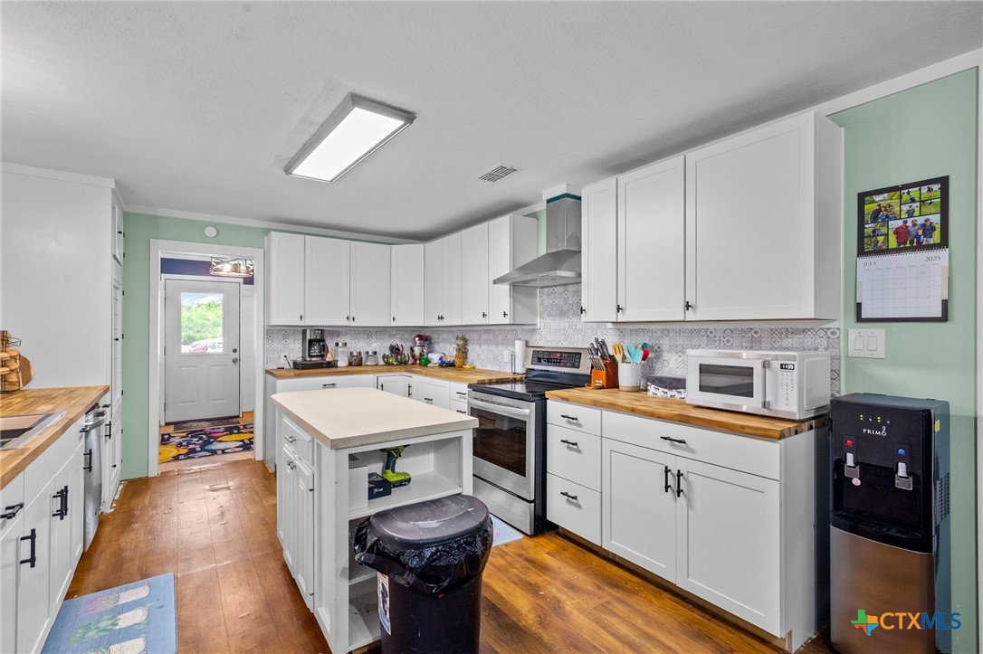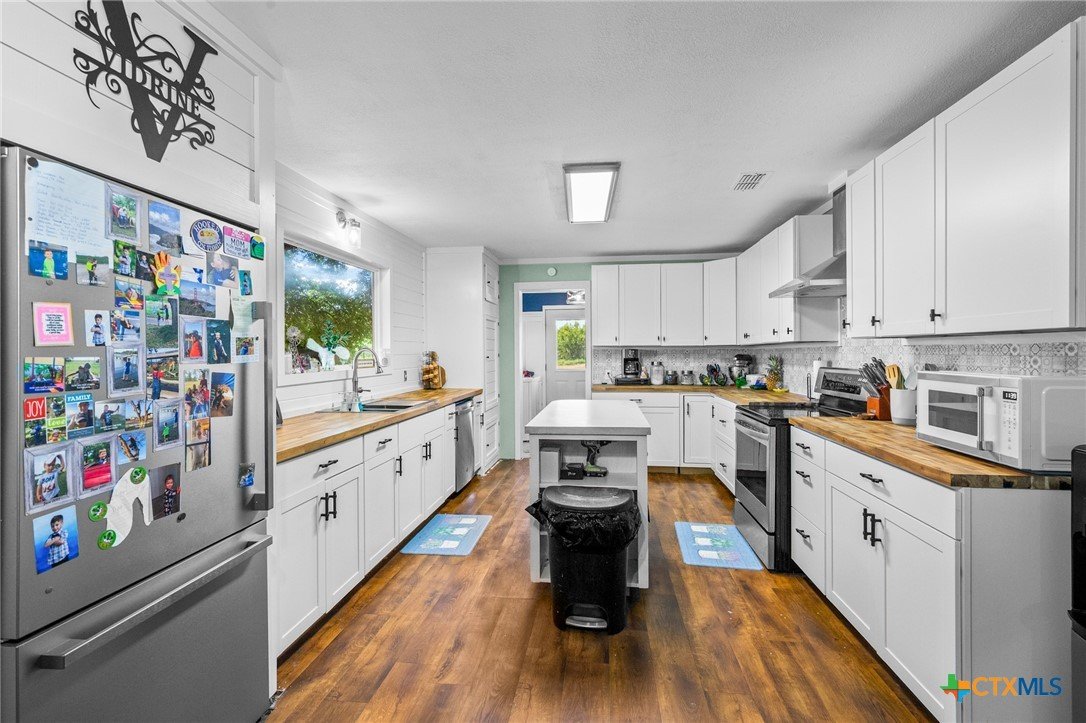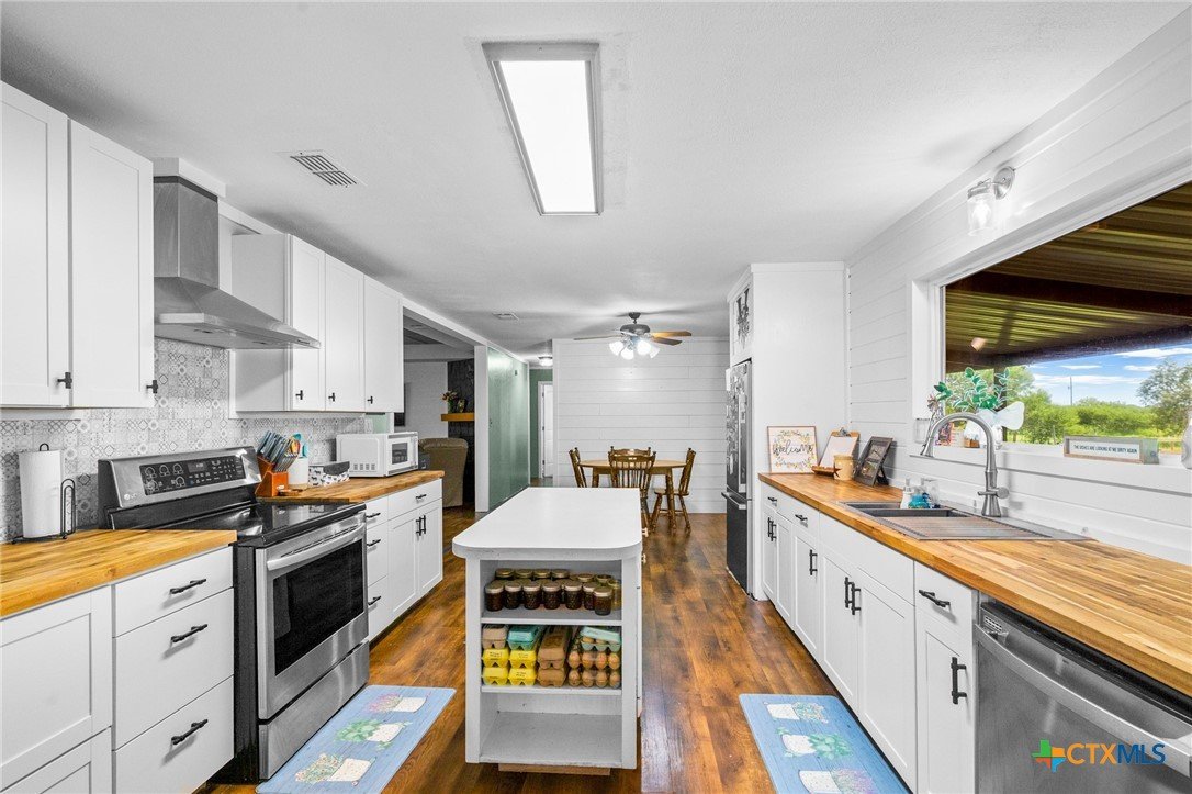 Beautiful 5 acres (with the option to purchase additional acreage) in Goliad County. Property boasts an updated 3-bedroom, 2-bathroom home. New flooring, a completely updated kitchen, and a window that overlooks the backyard make this a must-see. The house has a completely new modern look inside. The kitchen features a central island. The laundry holds a dog bath. The home is complete with a three-door shop on a concrete slab and even a car lift. Country living with a modernized feel.
