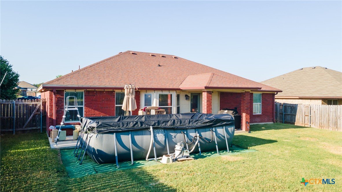 This lovely home offers 4 bedrooms, 2 baths and 2 car garage, also a refreshing above ground pool you can cool off in! Hang out near the firepit and relax, plenty of space in this Texas size backyard! No back neighbors. Storage shed for lawn equipment. Tile in the living room, only carpet is in the bedrooms. Lots of space to enjoy and also entertain! The primary bedroom is great size, Double vanities and 2 closets. Split floor plan with other bedrooms on the other side of the living room offer plenty of space. Located close to Fort Hood military installation, not too far from GRK regional airport, hospitals, near shopping & restaurants, with neighborhood schools and a walking trail. Come and see before it's gone!