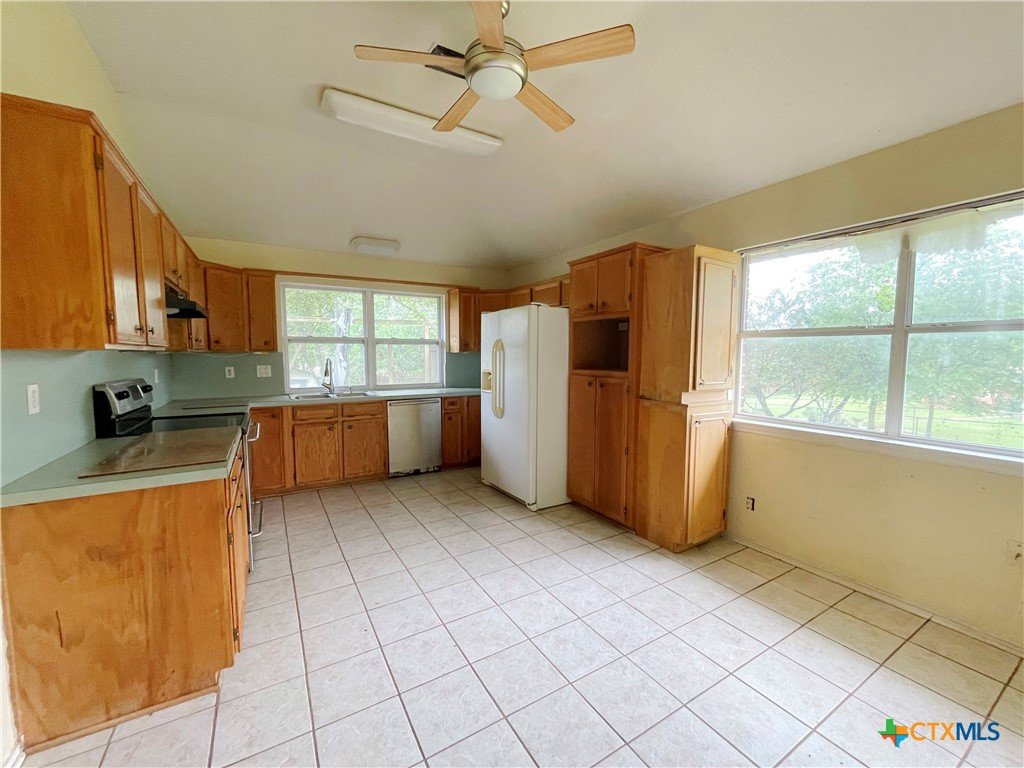 Location, location, location! This home is situated in a well-established area within a highly desired school district. Enjoy a country feel with the convenience of city amenities. The property features three bedrooms, two bathrooms, and a two-car garage. The spacious living room provides ample space for relaxation and entertaining. The kitchen offers plenty of cabinets and counter space, perfect for cooking and storage. The primary bedroom has a ceiling fan and a spacious closet. The primary bathroom includes a large bathtub. The property also boasts three storage sheds and a beautiful, tree-filled lot, providing both functionality and charm. This home has great potential with solid construction but does require some TLC—an effort well worth the investment. The Cubi Casa floor plan lists the total square footage as 1,462, while Bellcad lists it as 1,313 square feet. Recent updates include new water heater lines, a new kitchen faucet, and a replaced spout in the hall bathtub.
