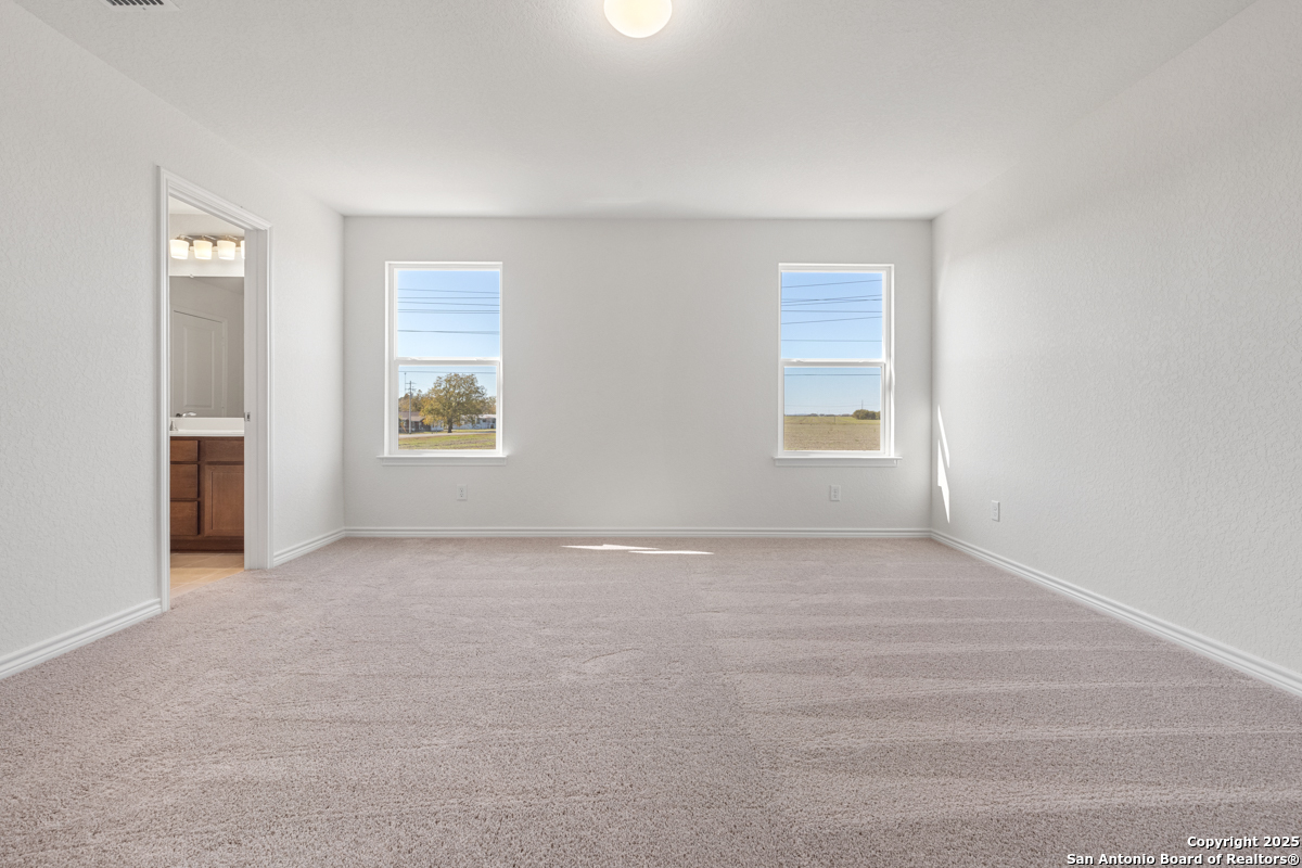 Step into comfort and style with 9-ft. first floor ceilings and designer touches throughout. The kitchen features Whirlpool stainless steel appliances, Woodmont Cody 42-in. upper cabinets, Silestone countertops in Linen Cream, and a Moen faucet. In the primary bath, enjoy upgraded cabinets and a 42-in. garden tub/shower with a Daltile tile surround. Decorative upgrades include a Carrara-style entry door, Kwikset Polo knob hardware, and CF Choice ceramic tile flooring in the kitchen, living room, and bathrooms. Additional perks include a wireless security system, soft water loop, automatic sprinkler system, and a fully sodded yard.