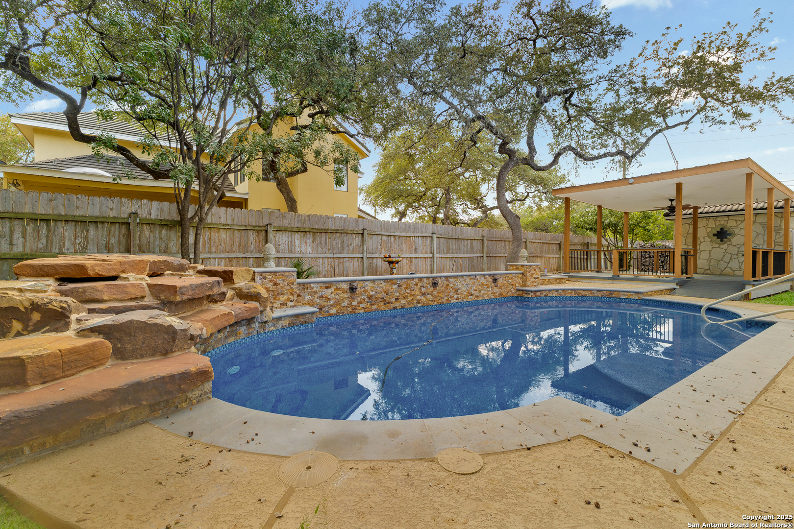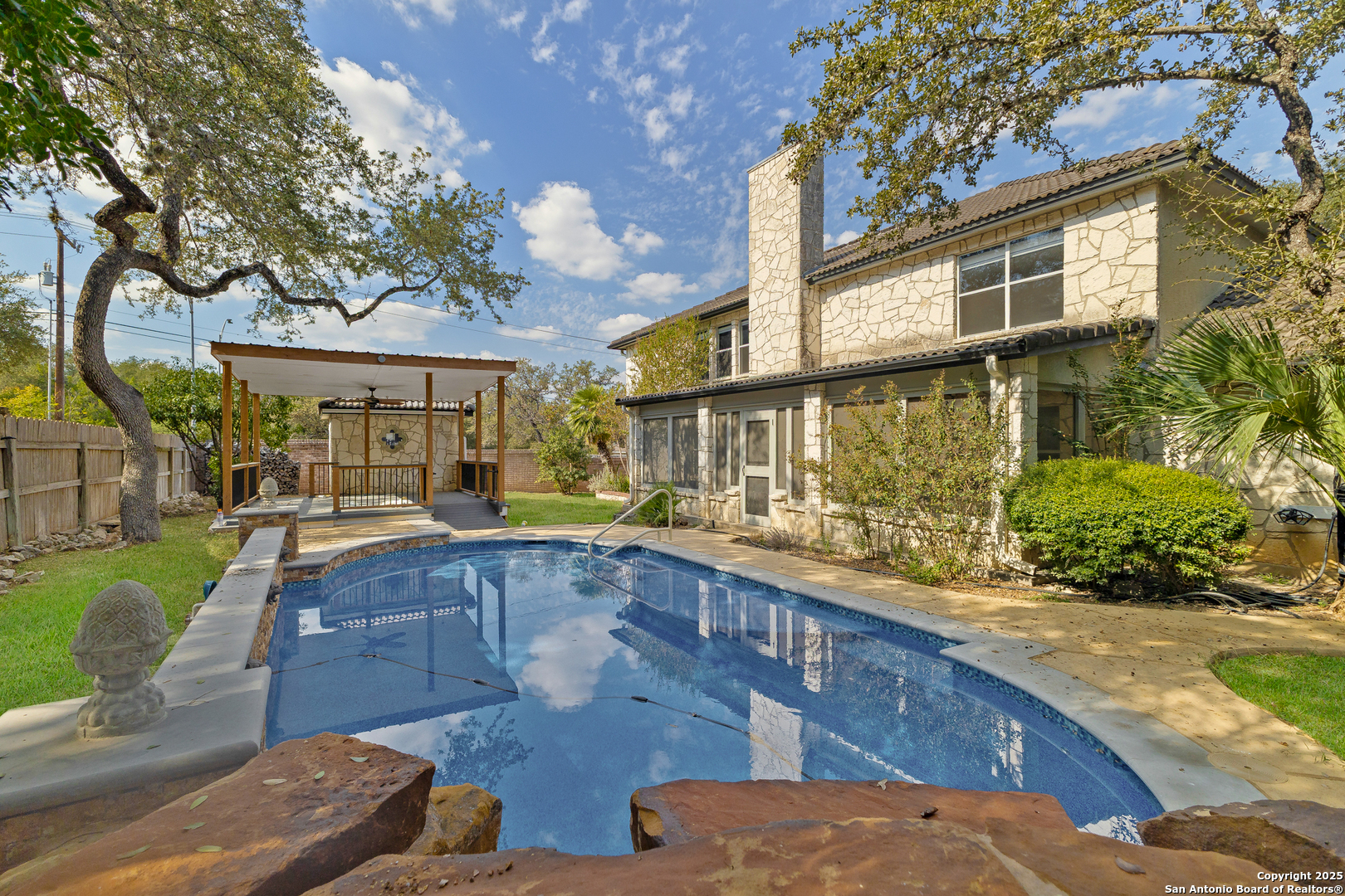 Welcome to 3914 Creek Rock Drive, a stunning residence in one of San Antonio's most established and desirable neighborhoods. This beautifully updated home blends classic design with modern comfort and offers a truly refined living experience. From the moment you arrive, the property makes a lasting impression. A manicured front yard and a graceful stone walkway lead you to a grand entry that opens into an interior filled with natural light, high ceilings, and a warm inviting energy. Every inch of this home reflects thoughtful care, timeless quality, and attention to detail. As you enter the main living area, you are greeted by an open layout that seamlessly connects the living room, dining room, and kitchen. Large picture windows allow sunlight to pour in, framing beautiful views of the outdoor retreat. The living room is anchored by an elegant fireplace surrounded by custom stonework that creates a sense of calm and comfort. Wide plank hardwood floors and soft neutral tones create the perfect backdrop for both relaxation and entertaining. The kitchen is a true centerpiece of the home. It features expansive granite countertops, a generous island with bar seating, stainless steel appliances, and custom cabinetry that provides exceptional storage and style. Whether you are preparing a quiet meal for two or hosting a large gathering, this kitchen delivers both beauty and functionality. The adjoining dining space flows naturally to the outdoor living area, making entertaining effortless and enjoyable. The primary suite is a private sanctuary designed for comfort and peace. It features large windows that overlook the backyard oasis and a layout that feels both spacious and intimate. The ensuite bathroom offers a spa-like experience with dual vanities, a soaking tub positioned perfectly beneath a window, and a glass-enclosed shower finished with sleek tile and high-end fixtures. The walk-in closet provides abundant space and thoughtful organization. The home also features several well-appointed guest bedrooms, each designed with comfort in mind. A dedicated home office, media room, or flex space provides endless possibilities for modern living, whether for work, study, or relaxation. Among the most impressive updates the current owner made are the installation of a custom elevator and a resort-style swimming pool. The elevator provides convenience and accessibility for every level of the home, offering ease of movement for residents and guests alike. The swimming pool transforms the backyard into a private paradise. Surrounded by mature landscaping, the pool features a sun shelf for lounging, soothing water features, and space for both play and serenity. This is the perfect setting for morning swims, weekend gatherings, or quiet evenings under the Texas stars. The outdoor area also includes a covered patio designed for year-round enjoyment. There is room for an outdoor kitchen, dining area, and lounge seating, creating a natural extension of the interior living space. Whether hosting family and friends or enjoying peaceful solitude, this outdoor retreat truly embodies luxury living. Additional features include a spacious utility room with extra storage, a two-car garage, and abundant closet space throughout the home. Every element was designed to create a balance of comfort, elegance, and practicality. Located in a prime area of San Antonio, this home offers easy access to premier shopping, dining, and entertainment while maintaining the tranquility of a well-established community. Top-rated schools, beautiful parks, and major highways are just minutes away, making it an ideal location for both convenience and lifestyle. 3914 Creek Rock Drive is more than just a home. It is a statement of sophistication, comfort, and thoughtful living. From the luxurious primary suite to the elevator that connects every level and the stunning backyard pool that defines outdoor living, this property represents the very best