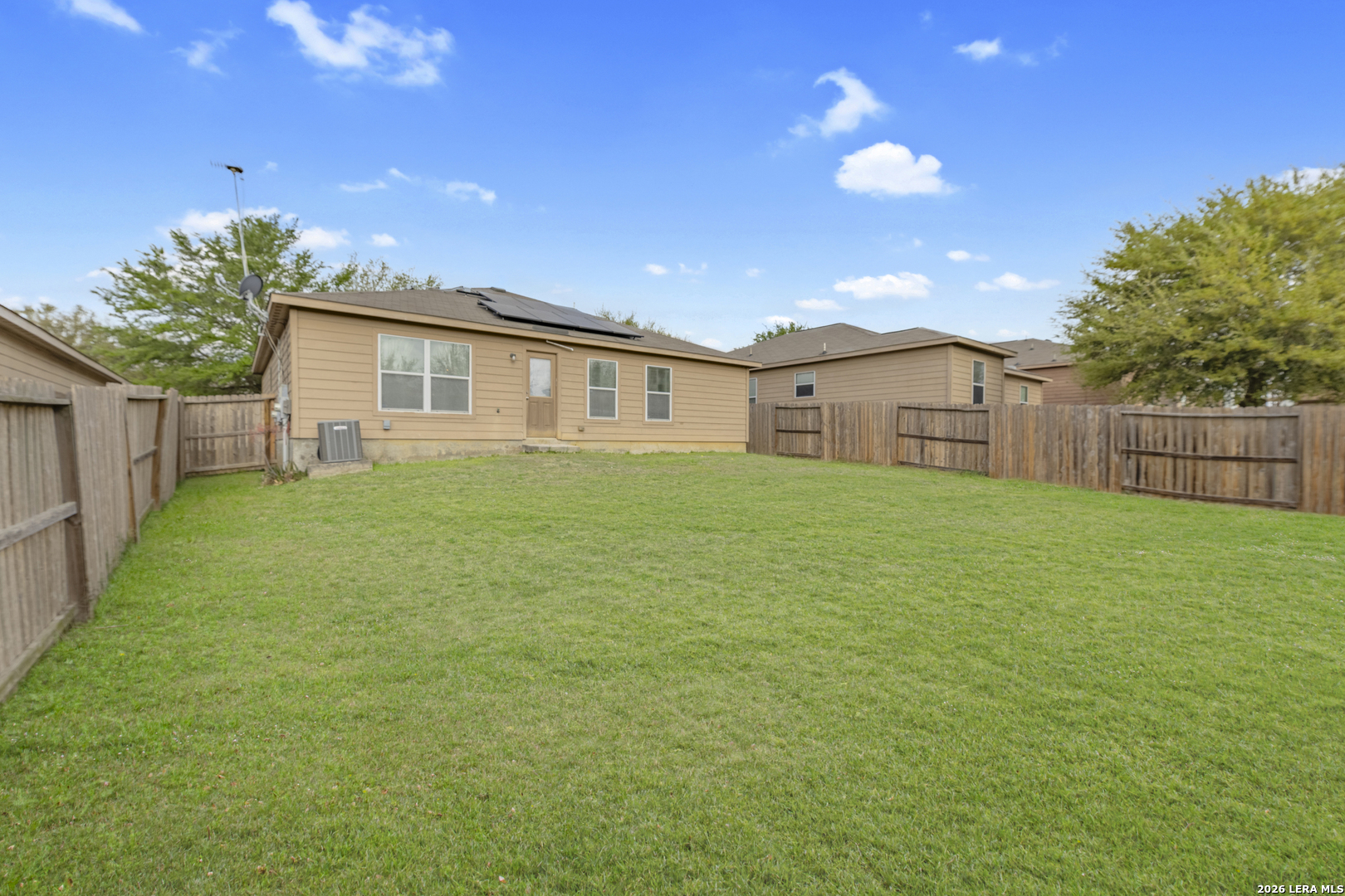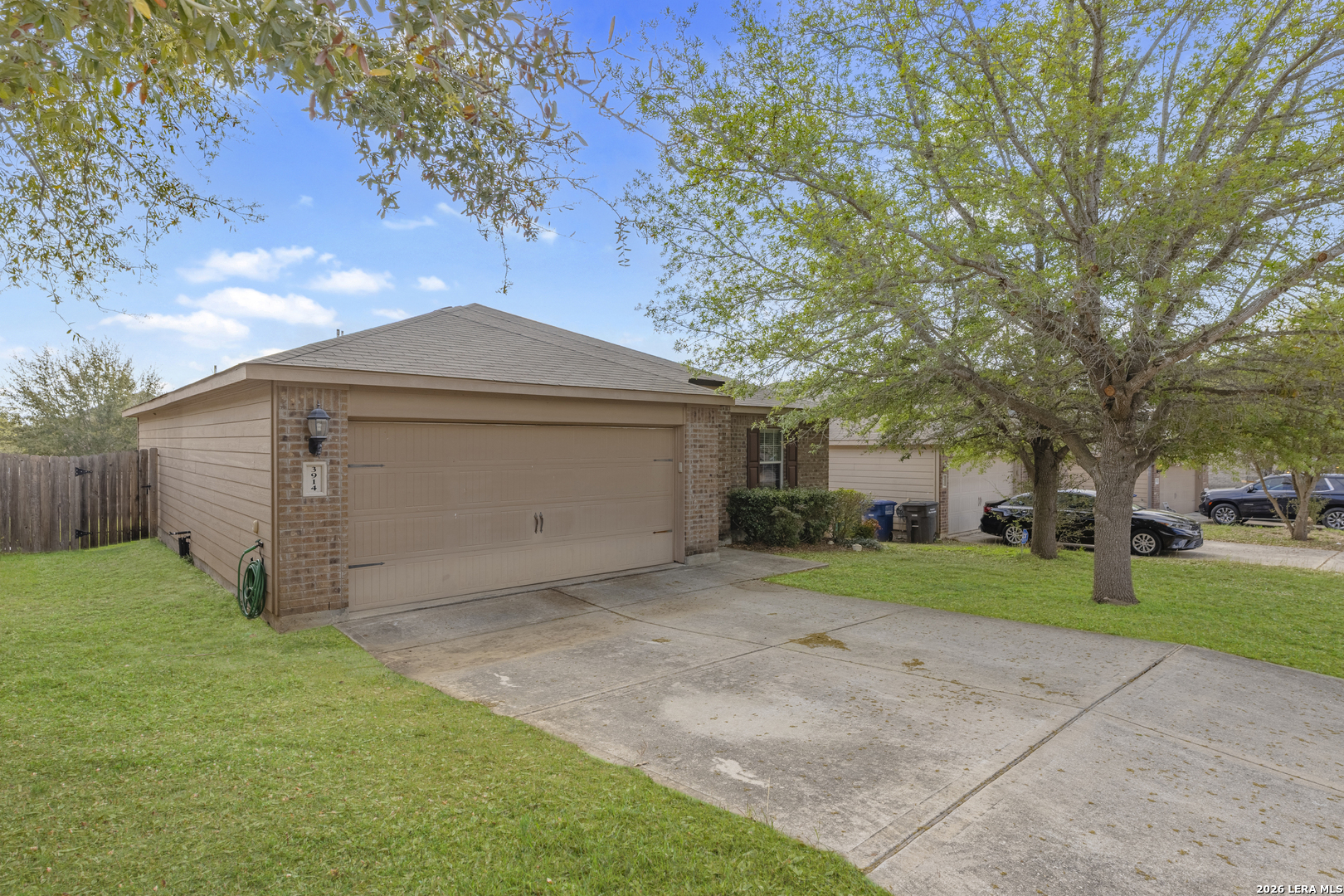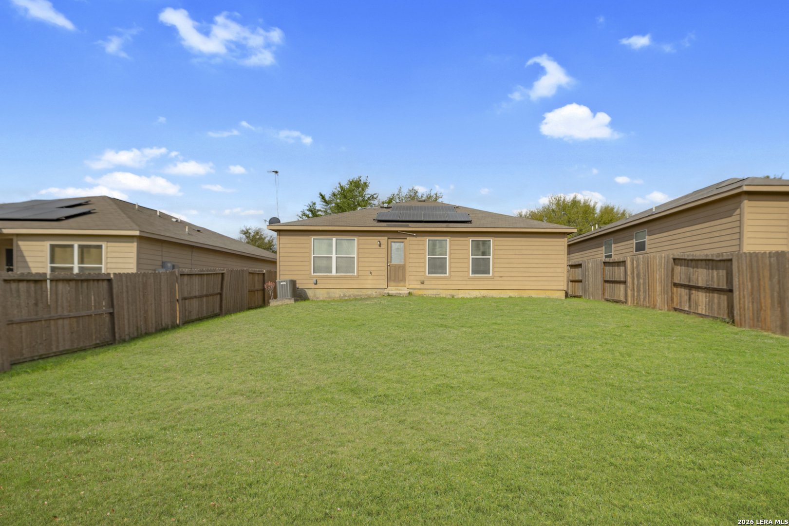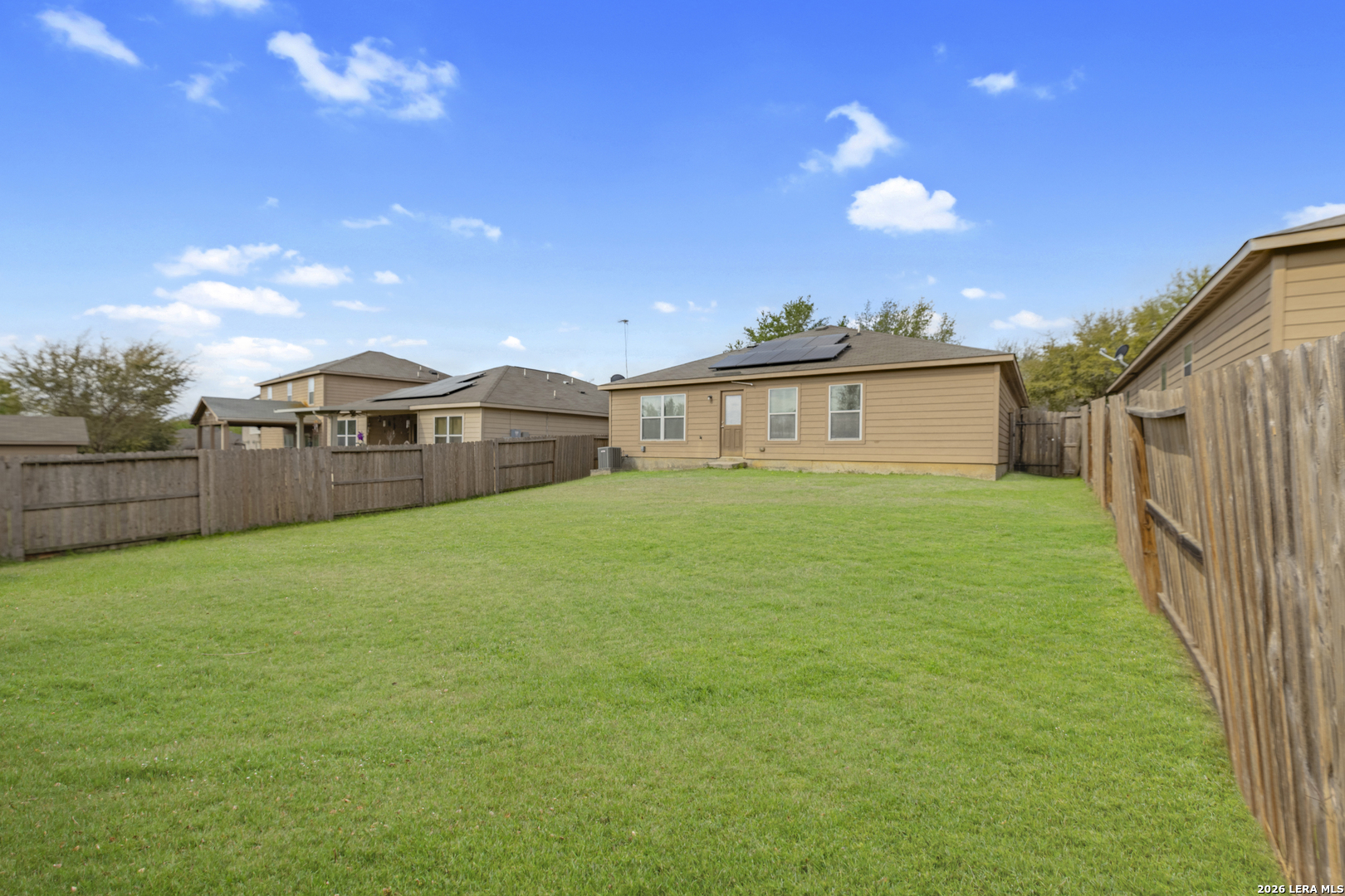 Gated community!! Welcome to your new charming, and inviting home nestled in a convenient Southeast San Antonio Lakeside neighborhood. Offering an open floor plan layout, comfortable living spaces that are bright and airy. This property is well-suited for everyday living and easy entertaining. Your kitchen features stunning custom cabinets, black whirlpool appliances, and is open for you to enjoy conversation with the family or friends while entertaining. Refrigerator conveys! Located in an established residential area, the home provides quick access to major highways, shopping, dining, and city conveniences while maintaining a peaceful neighborhood feel. Blending practicality, comfort, and potential, this home has been very well kept and ready for move in. Some of the highlights to this home are the Reverse Osmosis, Water Softener, the SOLAR PANELS are paid off, carpeting in the bedrooms and gorgeous vinyl flooring throughout the home. The back yard is ready for those family and friends BBQ's, and has more than enough space to entertain and enjoy the stars at night!