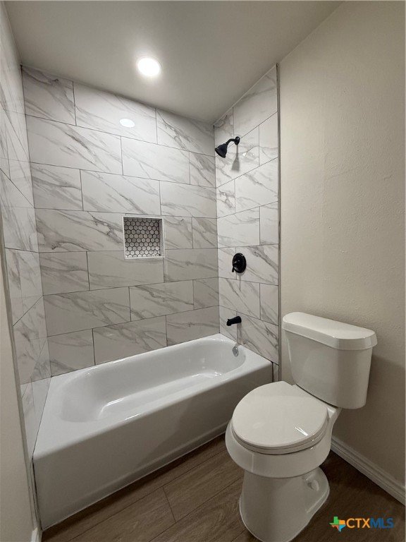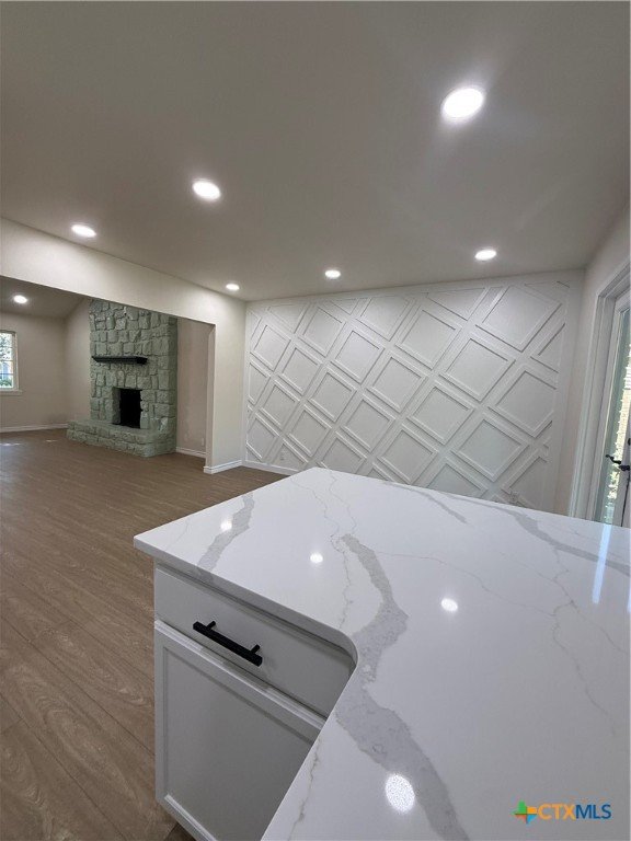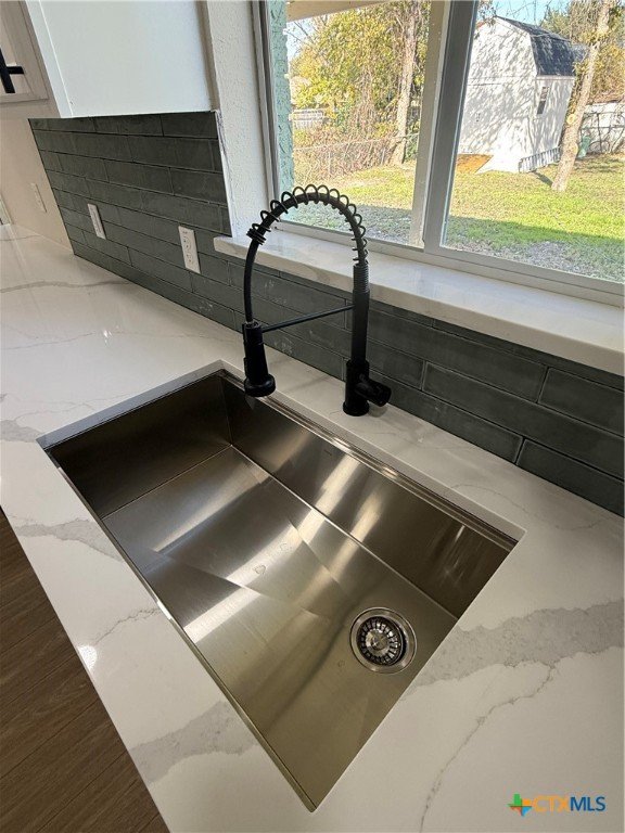 Welcome to this fully remodeled 4-bedroom, 2-bath home in Temple, Texas, offering over 2,100 sq ft of modern, move-in-ready living in a quiet, established neighborhood with no HOA. This stunning property features luxury vinyl plank flooring, recessed lighting, and fresh modern finishes throughout. The spacious living room showcases vaulted ceilings and a dramatic wood-burning fireplace, creating a warm and inviting centerpiece for the home. The main-level primary suite offers privacy and comfort with vaulted ceilings, walk-in closet and a spa-like en-suite bathroom. The updated kitchen includes Luxury Quartz counter-tops, tiled backsplash, peninsula island, ample cabinet storage, and opens to the dining area featuring a custom wood accent wall and French doors leading to a large covered patio—perfect for entertaining. Upstairs, two generously sized bedrooms include walk-in closets and a shared Jack-and-Jill bathroom. A fourth oversized bedroom on the main floor provides flexibility as a game room, home office, or guest suite. Additional highlights include a large utility/laundry room, abundant storage throughout, available RV parking, and a spacious backyard with an expansive covered patio and large workshop—ideal for hobbies, storage, or additional workspace. Conveniently located near Scoot and White & VA hospitals, shopping, parks, walking trails, and country club amenities, with easy access to major highways. Centrally positioned with estimated 45-minute commute to Round Rock or Waco. This remodeled Temple TX home for sale blends modern upgrades, functional layout, and prime location—an exceptional opportunity you won’t want to miss.