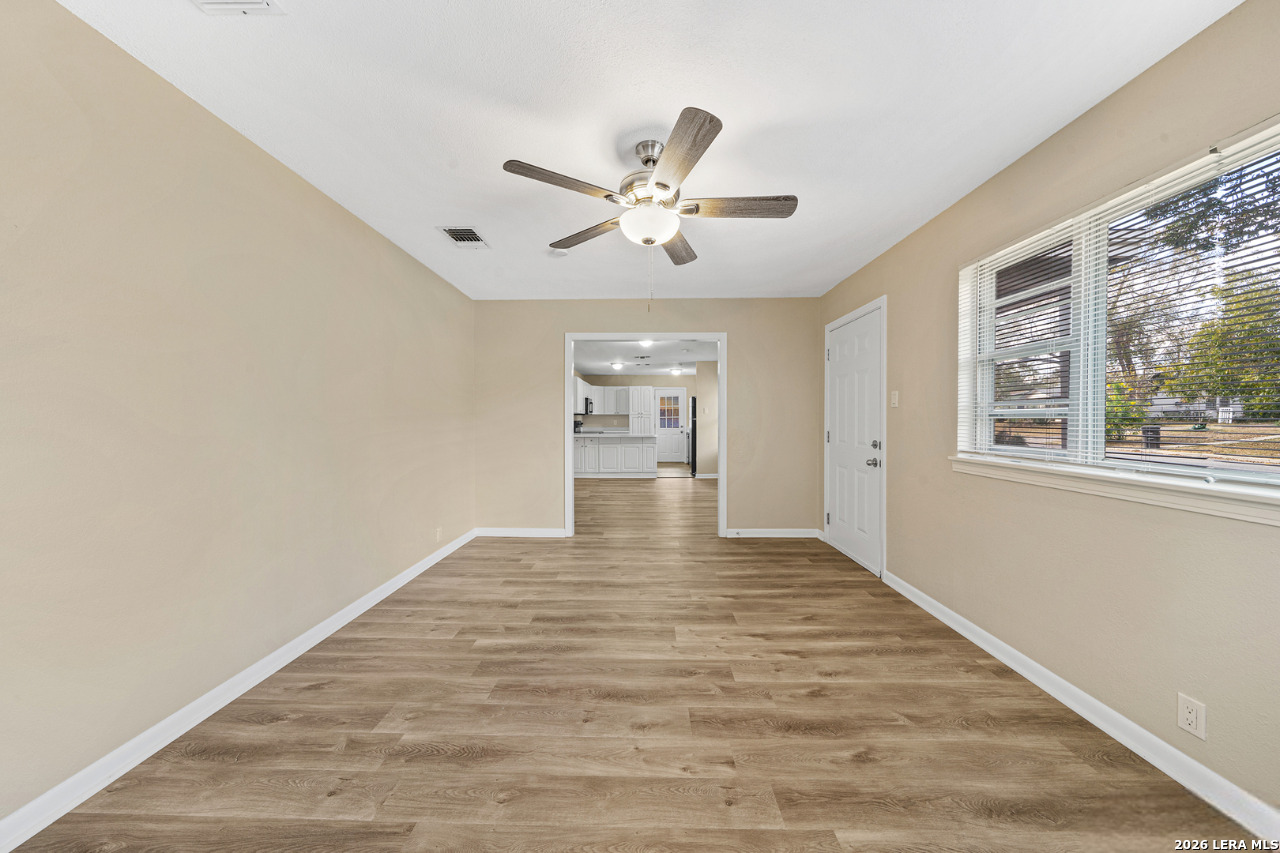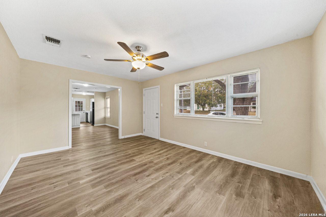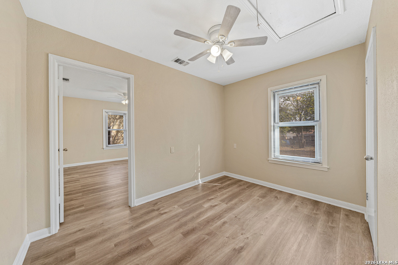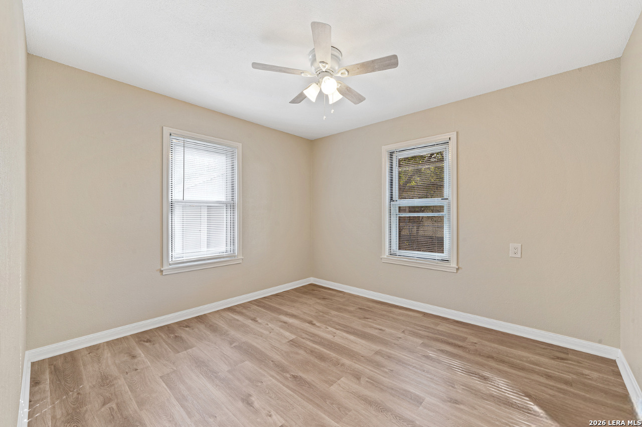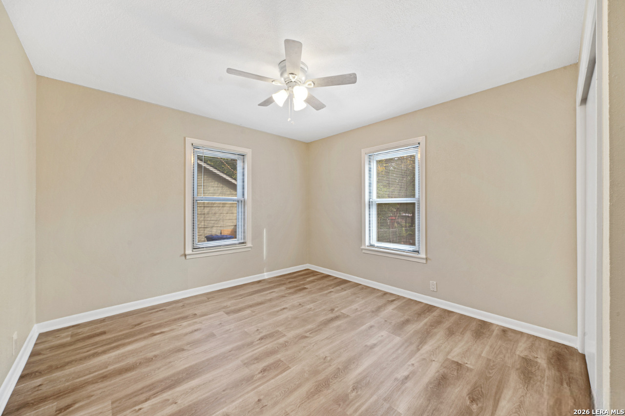 This home is a find! Renovated from top to bottom, contemporary meets historic! Walls of windows let sunlight in, creating a beautiful living space. Move-in ready with a large living area, separate dining that opens to a breakfast bar, and a modern kitchen with all appliances. The second bedroom off the primary bedroom could also be an office or nursery if needed. Beautiful wood laminate floors throughout are easy-care. Central air & heat, 3 ceiling fans, decorator paint colors inside and out! Even a detached garage and utility space. AVAILABLE NOW!