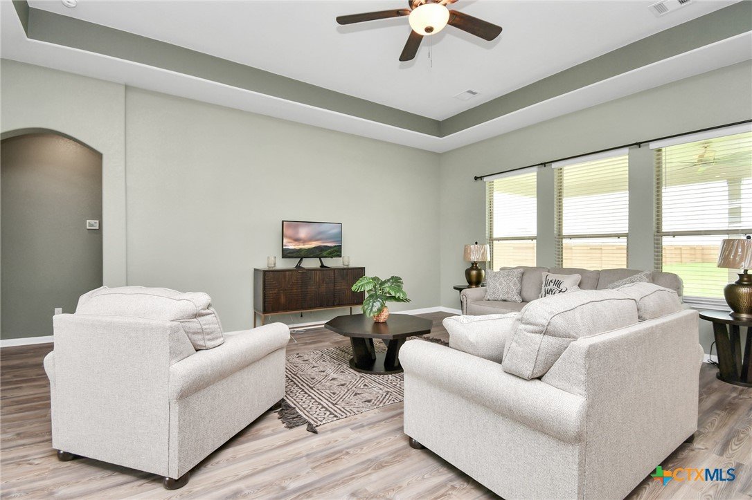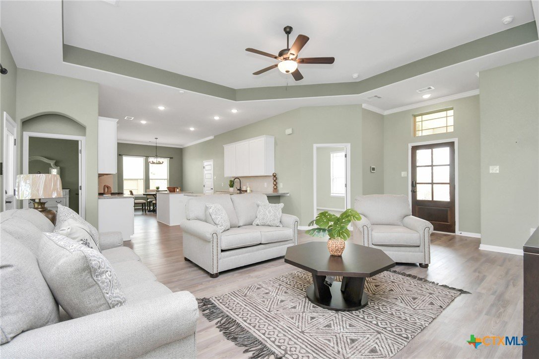 Rare opportunity to own a spacious single story ranch style home on a half acre lot in the desirable River Ranch community. Beautiful single story ranch style home located in River Ranch Estates Section 1 offering 4 bedrooms and 2 bathrooms on a spacious half acre lot. The open layout features vaulted ceilings and ceiling fans in the living room and primary bedroom creating a bright and comfortable living space. The primary suite includes a large garden tub and separate shower designed for relaxation. Faux wood blinds are installed throughout the home. The kitchen includes a new refrigerator that has never been used and will convey with the sale. The property also features a three car garage with garage door opener and a large armored safe that will remain with the home. Step outside to enjoy the covered patio with outdoor ceiling fan perfect for relaxing or entertaining. The home is pre wired for a security system and includes a large laundry room with washer and dryer hookups.