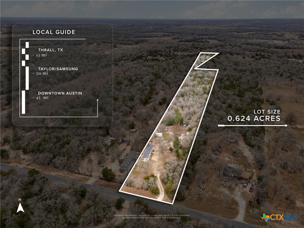 Situated on just over 6 acres of wooded Texas countryside, this property offers a rare opportunity for those seeking space, privacy, and flexibility. The land features a long, private drive, mature trees, and a peaceful rural setting—ideal for a homesite, weekend retreat, or future improvement. The existing single-wide manufactured home is in various stages of repair and will require work to bring to full livable condition. It presents a value-add opportunity for buyers with vision or those primarily focused on the land itself. Utilities are in place, providing a strong foundation for renovation, replacement, or expansion. With ample room for outdoor living, gardening, animals, or additional structures, this unrestricted property allows you to create your own slice of country living. Conveniently located within driving distance to Taylor, Thrall, and the Austin metro area, this is a solid option for investors, builders, or buyers looking to customize their rural escape. Property is being sold as-is.