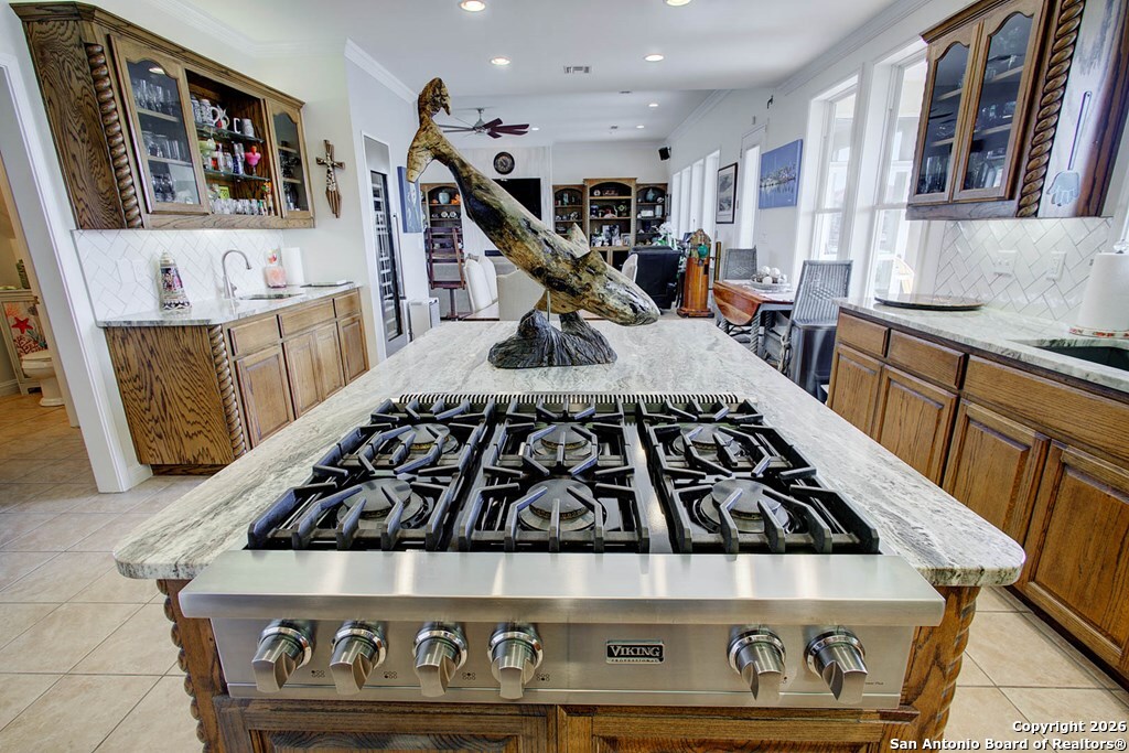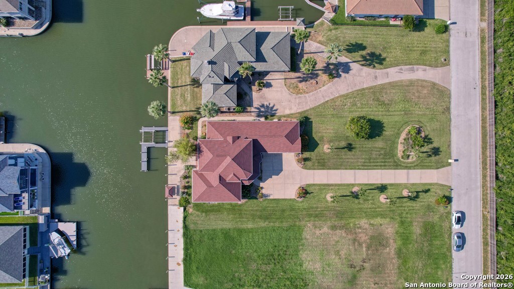 Discover this exquisite 4-bedroom, 2.5-bathroom home in the prestige community of Pelican Cove, Aransas Pass, TX. Built in 2004, this 3,097 sq. ft. residence sits on a wide canal, offering serene water views. Enjoy a large front yard with a palm tree-lined concrete driveway leading to a 3-car air-conditioned garage with a tackle room. The beautifully landscaped property features room for a pool and boasts two boat lifts for easy water access to Redfish Bay. Only 6 miles to Port A ferry landing and 10 miles to Rockport shopping and restaurants. Inside, the open kitchen is a chef's dream with high-end Viking appliances, a gas cooktop, a large island, a wine cooler, and a wet bar. The living area features a sandstone gas fireplace and opens to a screened-in back porch, perfect for relaxing. Hurricane shutters provide peace of mind. Experience coastal living at its finest-schedule your private showing today! "Live Your Beach Life"!