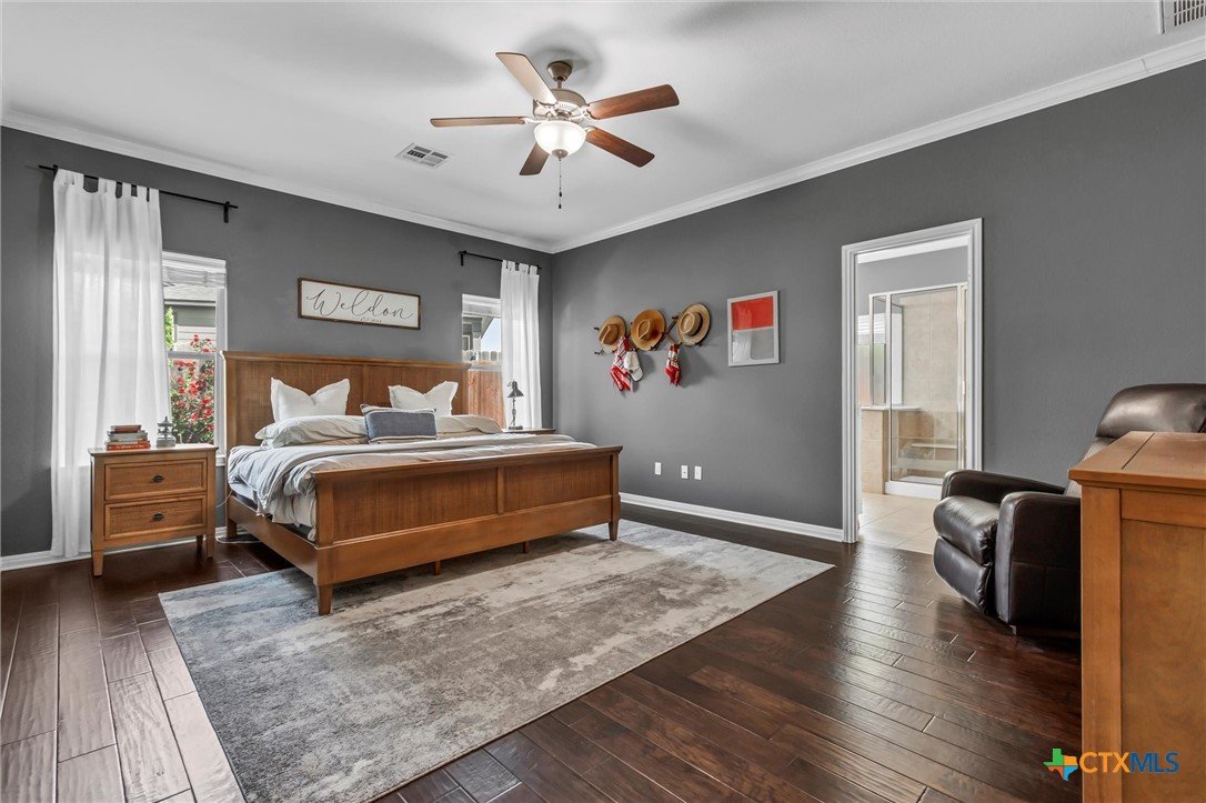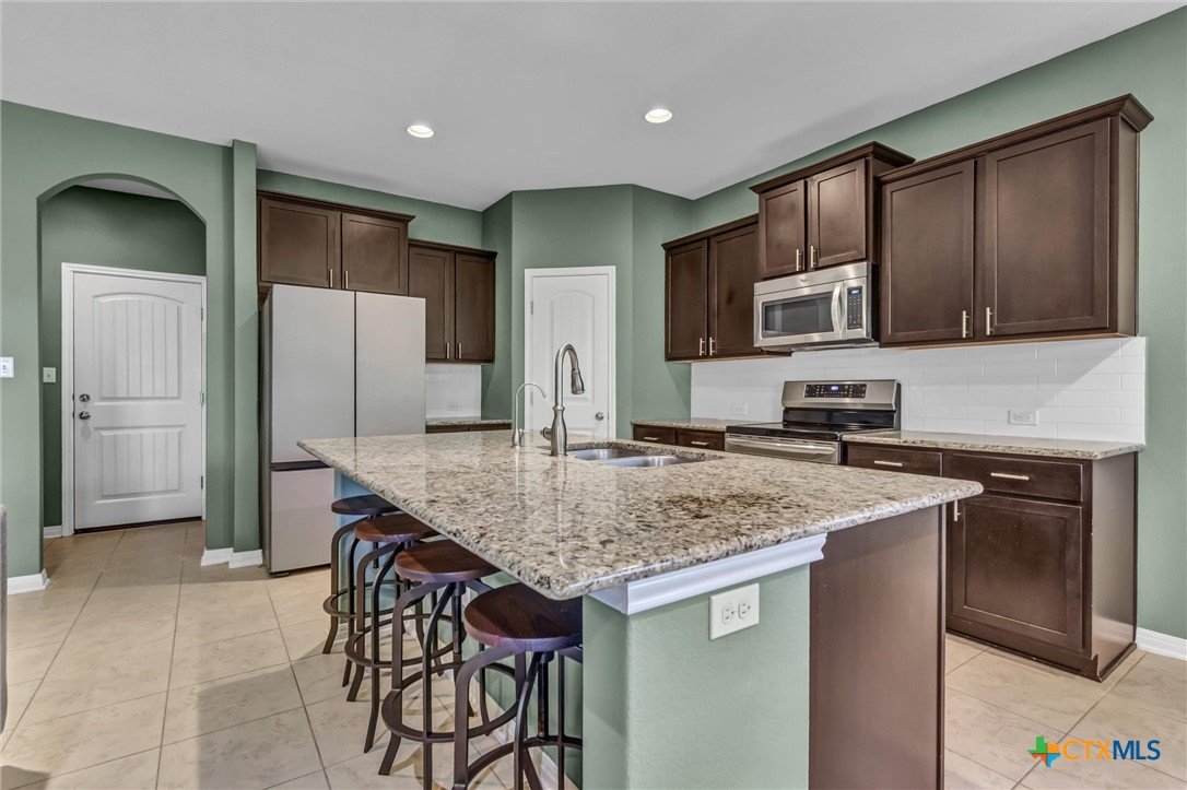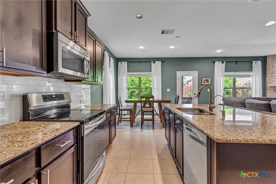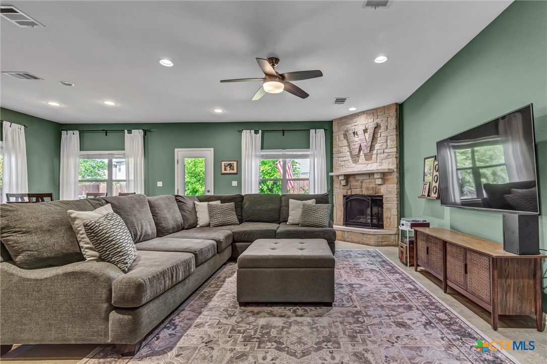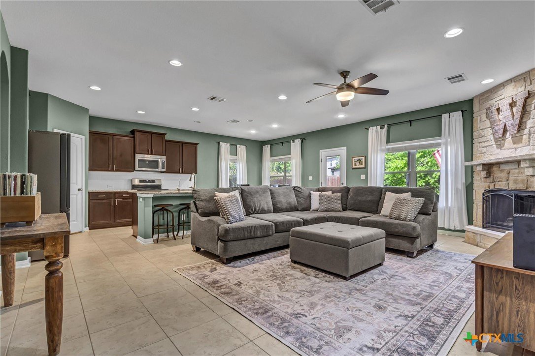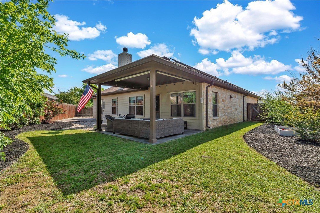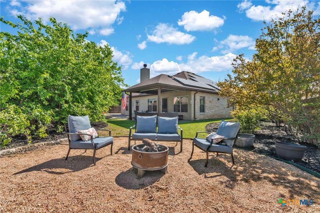 Don't miss this opportunity to own a home in the Pleasant Valley subdivision! Homes in this neighborhood rarely become available, as residents tend to stay for the long term. This one-story Oak Grove Custom Home, nestled in the middle of the loop street, sits on a larger lot and welcomes you with manicured landscaping and beautiful stone and stucco exterior. The open floorplan allows for a perfect gathering place; the spacious living room features a wood-burning fireplace and flows seamlessly into the eat-in kitchen complete with granite countertops, center island, and backsplash updated in 2023. Enjoy updated paint and NO carpet throughout the home! The back yard is a showstopper designed for relaxation, featuring a covered patio complete with pull-down sunshades. Partial rock landscaping reduces back lawn maintenance with a concrete pad offering the perfect space for a cowboy pool or jacuzzi! This home is just minutes away from vibrant downtown Georgetown, charmingly nicknamed the "Most Beautiful Town Square in Texas," and offers quick access to both I-35 and TX-130 toll. Schedule a private showing today! Solar panels are paid off, under warranty, and can save hundreds of dollars in energy per year! Bespoke 3-door refrigerator, under warranty, conveys with sale. Sellers are offering an assumable loan to VA-qualified buyers!