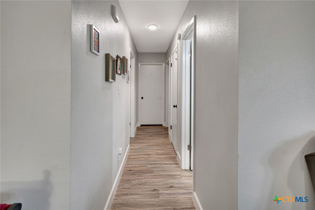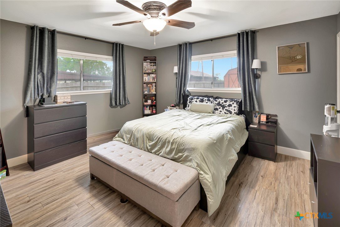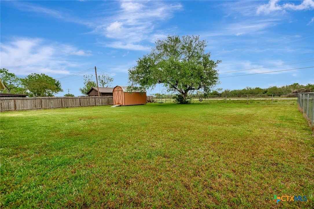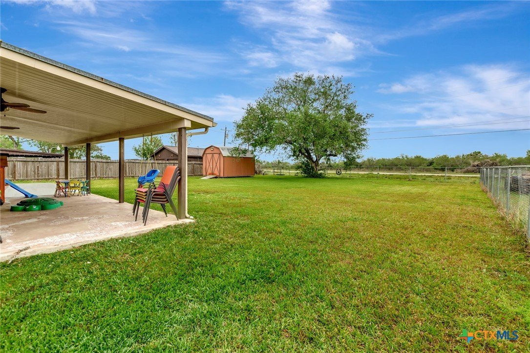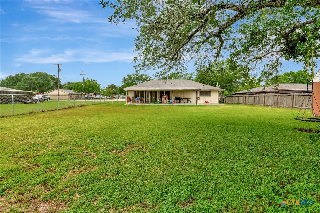 Located on an expansive 0.33-acre corner lot within the Brentwood Manor subdivision, this 3-bedroom, 2-bathroom home features a variety of interior and exterior functional spaces. The kitchen is equipped with grey cabinetry and a large, deep-basin sink, while the main living areas are finished with updated plank-style flooring. Both bathrooms have been refreshed with specific tile work; the primary bathroom includes a fully tiled walk-in shower and a dedicated vanity, while the secondary bathroom features a full-tile wall surround for the bathtub. The exterior of the property includes a covered deck and a large storage shed, offering additional space for outdoor activities and equipment organization. The backyard is fully fenced, encompassing the perimeter of the generous corner lot. Situated in an established Victoria neighborhood, the home is positioned near local sidewalks and provides convenient access to nearby community amenities and services.
