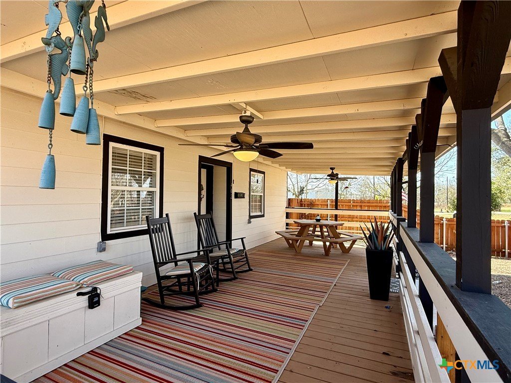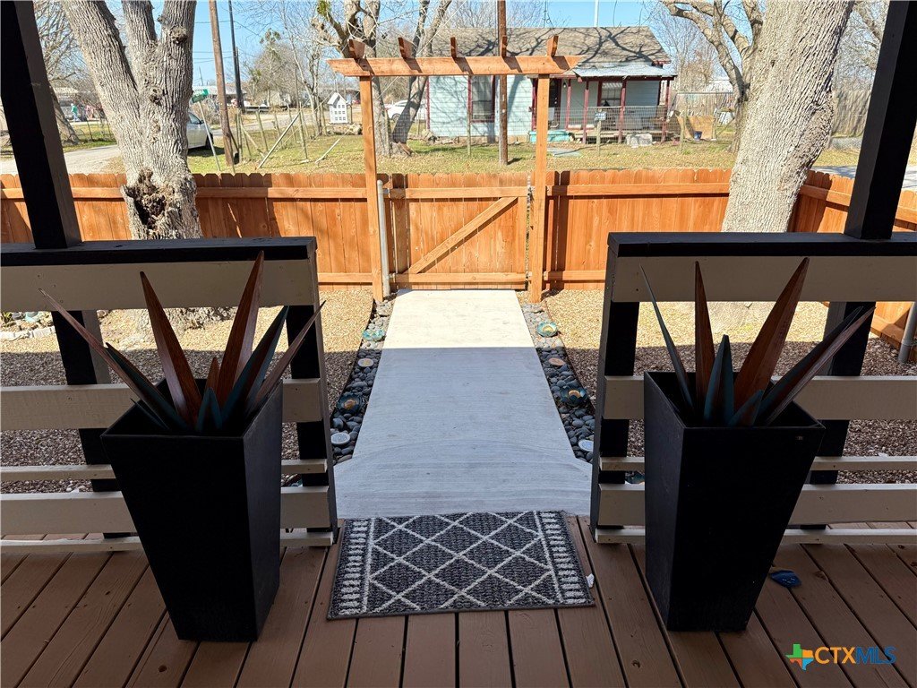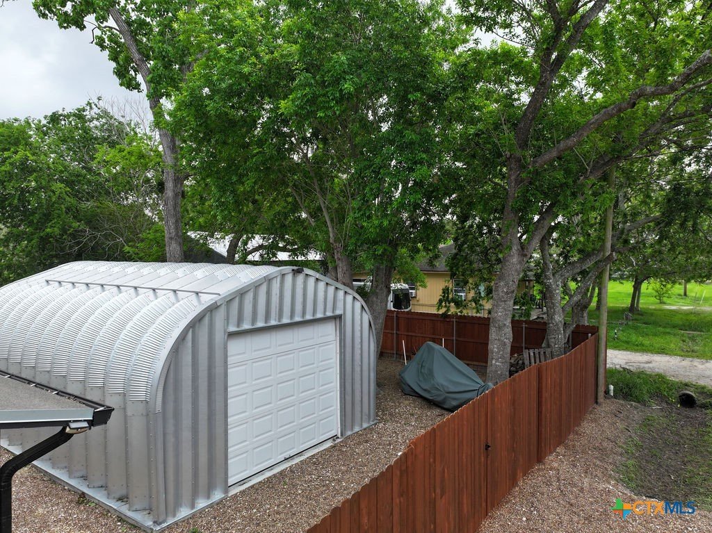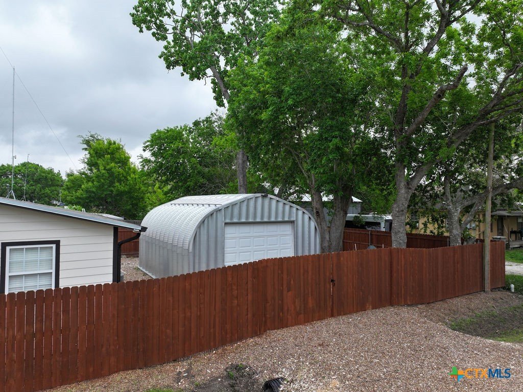 Looking for the perfect weekend retreat or a full-time coastal escape? Welcome to 402 E Virginia Ave, a beautifully furnished 2-bedroom, 1-bathroom home in the heart of Seadrift, TX—a charming fishing town known for its laid-back vibe, world-class fishing, and breathtaking bay views! This property offers plenty of shade and a welcoming atmosphere. Enjoy relaxing evenings on the large covered front porch, perfect for unwinding after a day on the water. The fully fenced backyard is complete with a dedicated grilling area, space for outdoor dining and has been graveled for ease of maintenance . Boaters will appreciate the new metal boat barn and double-gated access, making it easy to store and maneuver boats or extra vehicles. Step inside to find a cozy living area with a sleeper sofa, additional seating, and a TV—ready for movie nights or winding down after a day of exploring. The kitchen features granite countertops, a deep farmhouse sink, a fridge, an electric stove/oven, and a stackable washer & dryer for convenience. Both bedrooms are comfortably sized, and the central bathroom showcases tile work for a modern touch. Whether you're looking for a vacation getaway or a peaceful home by the coast, this property has everything you need to start enjoying the Seadrift lifestyle. Just minutes from San Antonio Bay, public boat ramps, and some of the best fishing and outdoor adventures on the Texas Gulf Coast! Don't miss your chance to own this coastal retreat, the sellers are motivated! Schedule your showing today!