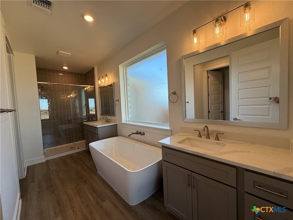 Step into the award-winning Kickapoo Creek floor plan, a beautifully designed, family-friendly home featuring 4 spacious bedrooms—including a private in-law suite—3 bathrooms, and 2,123 square feet of thoughtfully crafted living space. The open-concept kitchen, dining, and living area creates a welcoming atmosphere where everyone can gather together. Highlights of this Flintrock home include a 12-foot collapsible sliding door leading to the backyard, vaulted ceilings in the living room, a three-car garage, and upgraded finishes throughout that are sure to impress. Perfectly positioned on a desirable corner lot in Phase 12 of Bella Charca, this home also offers breathtaking views. End of the year savings start now! Now offering interest rates as low as 4.99% (5.775% APR) Fixed offer—a great deal to kick off your buyer's home search. Don’t miss this limited-time opportunity! Incentives are available only on select homes and may vary by community and homesite. Restrictions apply. Please contact our sales team for complete details.