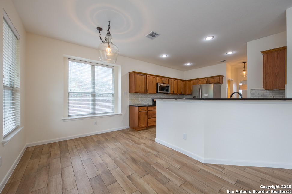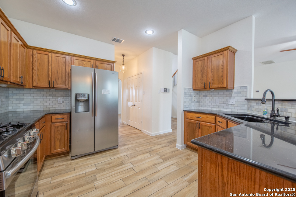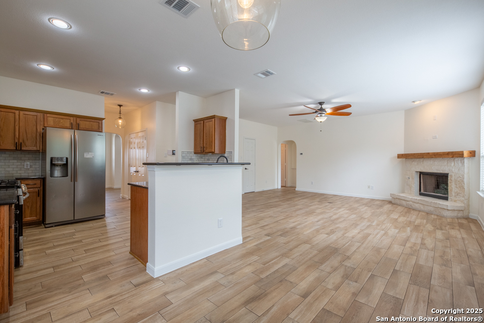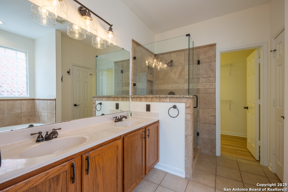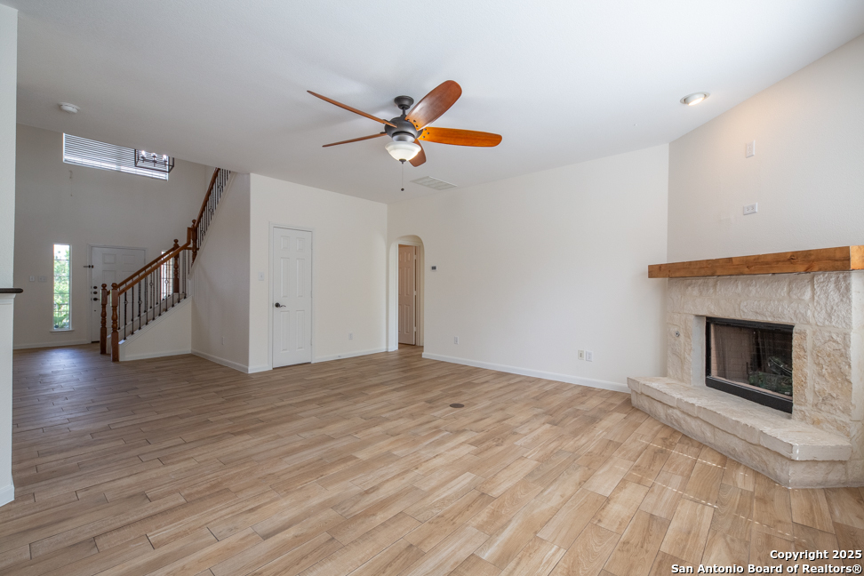 Located in the heart of Stone Oak, this spacious home features an open floor plan, high ceilings, and a cozy fireplace. The first-floor primary suite offers a garden tub, walk-in shower, and large closet. Enjoy a beautifully updated kitchen with gas cooking and custom touches throughout. Upstairs includes a game room, 3 bedrooms, and 2 full baths. The large backyard is perfect for entertaining with a covered patio, deck, gas grill, and shed. Solar panels help reduce energy costs. Walk to top-rated schools, dining, and shopping-no street crossing needed for the elementary! Additional $350 refundable pet deposit.