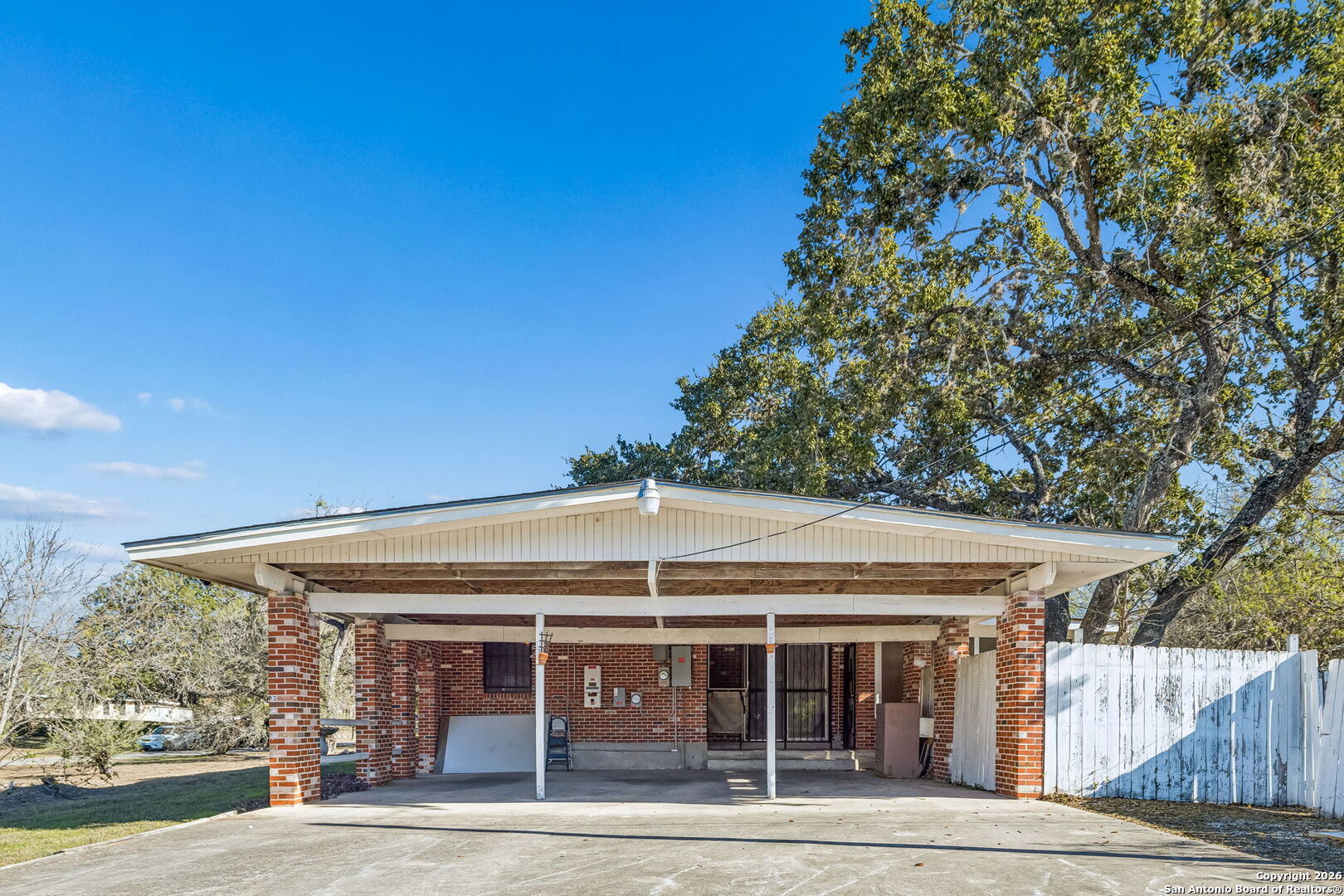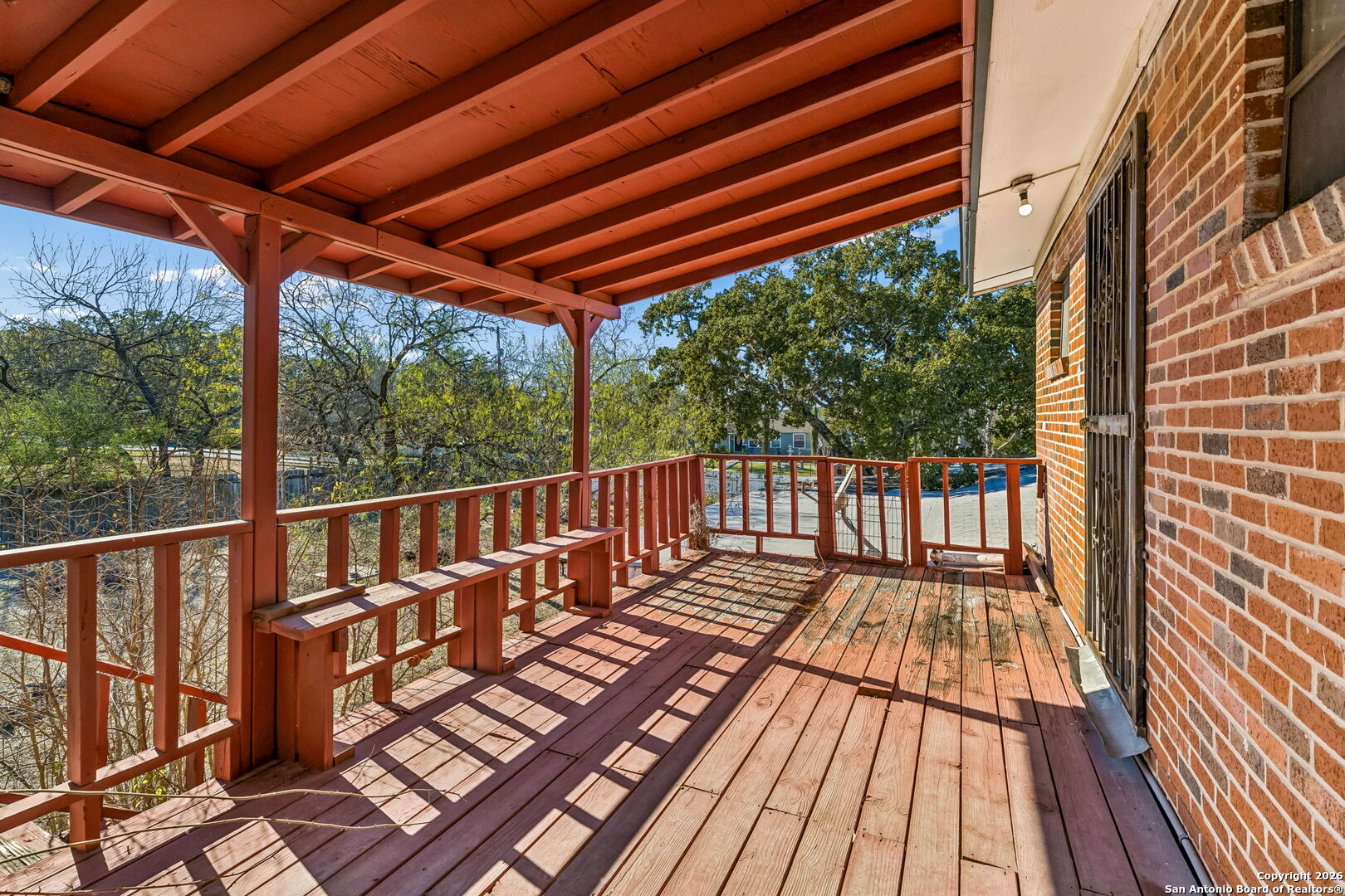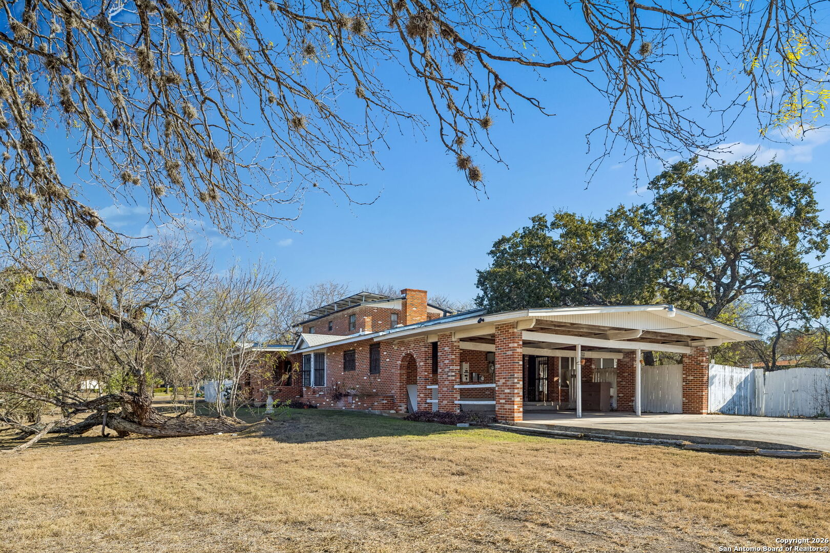Situated on an expansive .62-acre corner lot in a quiet, private neighborhood with no HOA, this property offers space, character, and endless potential. Built with solid bones and timeless brick-accented walls throughout, this home is ideal for buyers looking for room to grow, customize, or create their forever home. Inside, you'll find two fireplaces adding warmth and charm, while upstairs bedrooms open to a covered balcony, perfect for morning coffee or evening relaxation. The home features a utility room with a full bath, complete with counters and cabinets, offering exceptional functionality and flexibility. Outdoor living truly shines here with a massive covered back patio, a huge fenced-in backyard, and an oversized workshop-perfect for hobbies, storage, or business use. Solar panels add long-term energy efficiency and value. With its rare lot size, corner positioning, privacy, and versatile layout, this property presents a unique opportunity in an established area of San Antonio. Whether you're looking for space, functionality, or future upside-this one delivers.