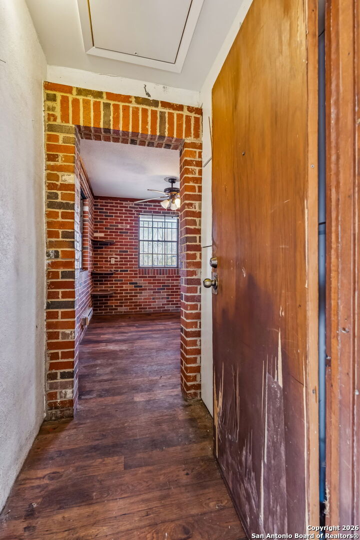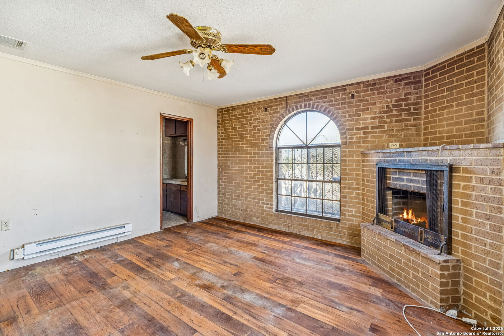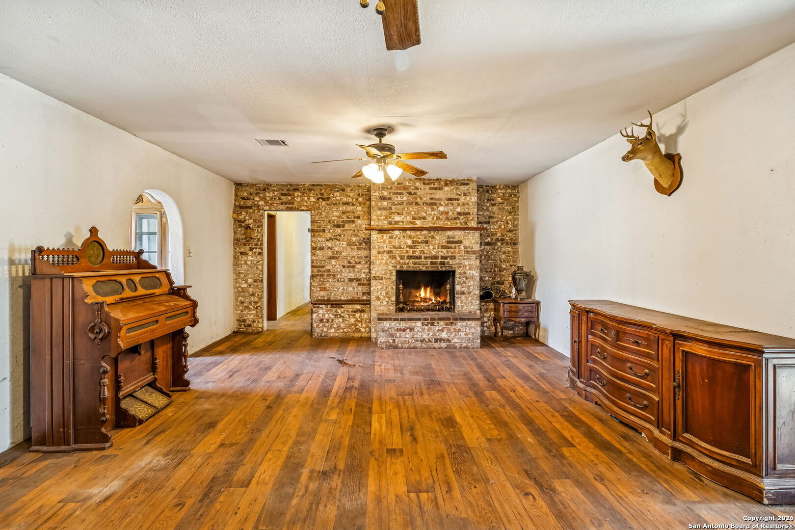 Situated on an expansive .62-acre corner lot in a quiet, private neighborhood with no HOA, this property offers space, character, and endless potential. Built with solid bones and timeless brick-accented walls throughout, this home is ideal for buyers looking for room to grow, customize, or create their forever home. Inside, you'll find two fireplaces adding warmth and charm, while upstairs bedrooms open to a covered balcony, perfect for morning coffee or evening relaxation. The home features a utility room with a full bath, complete with counters and cabinets, offering exceptional functionality and flexibility. Outdoor living truly shines here with a massive covered back patio, a huge fenced-in backyard, and an oversized workshop-perfect for hobbies, storage, or business use. Solar panels add long-term energy efficiency and value. With its rare lot size, corner positioning, privacy, and versatile layout, this property presents a unique opportunity in an established area of San Antonio. Whether you're looking for space, functionality, or future upside-this one delivers.