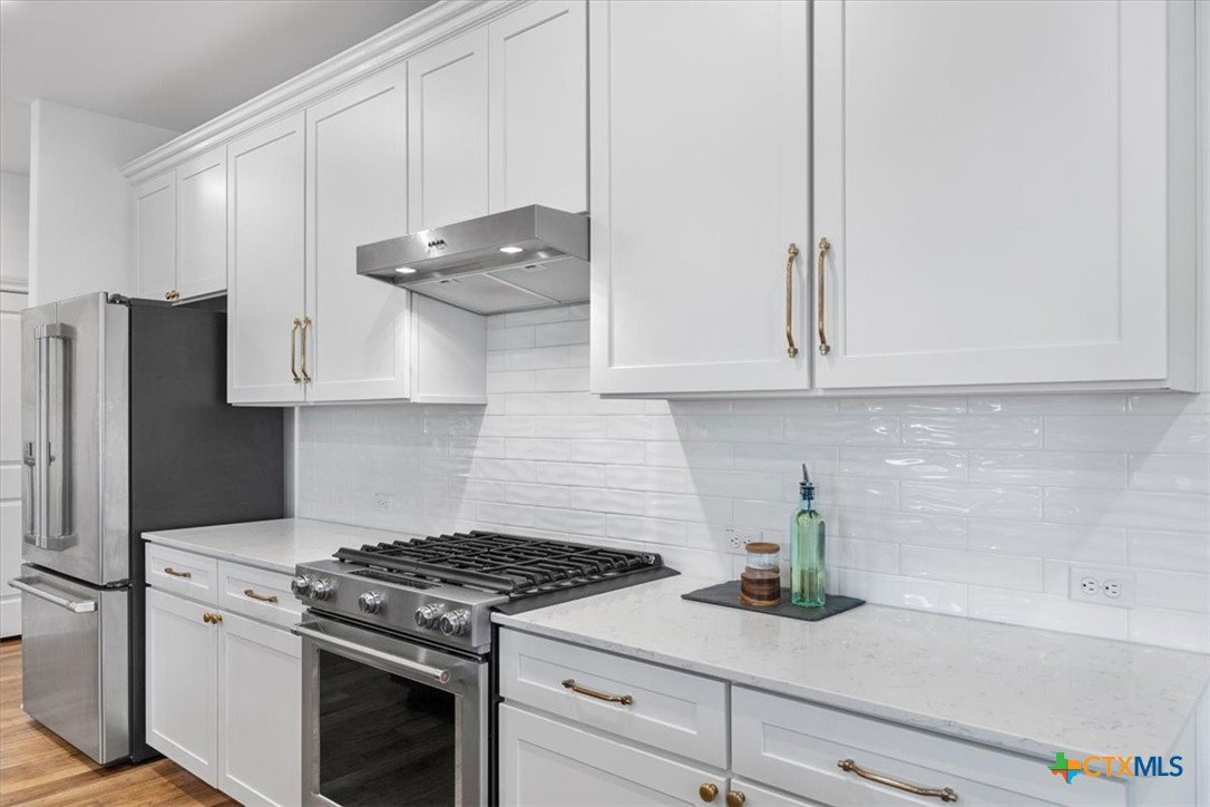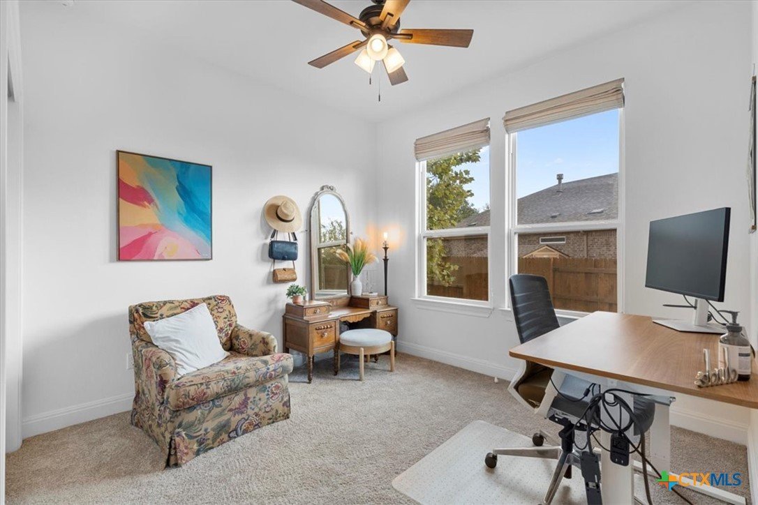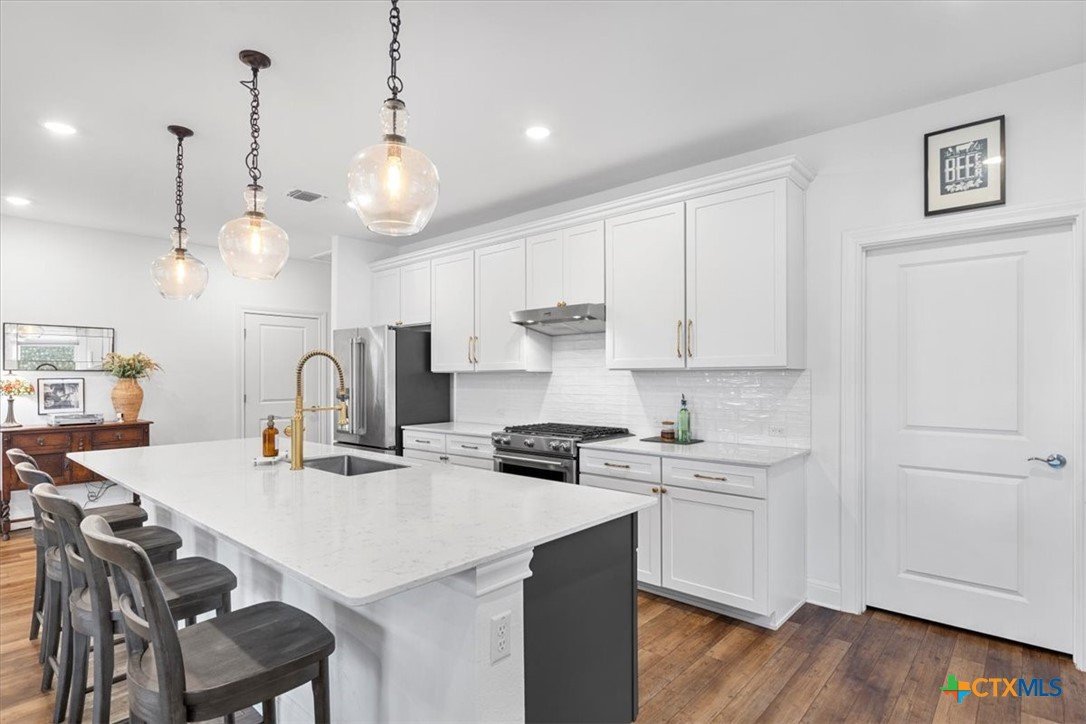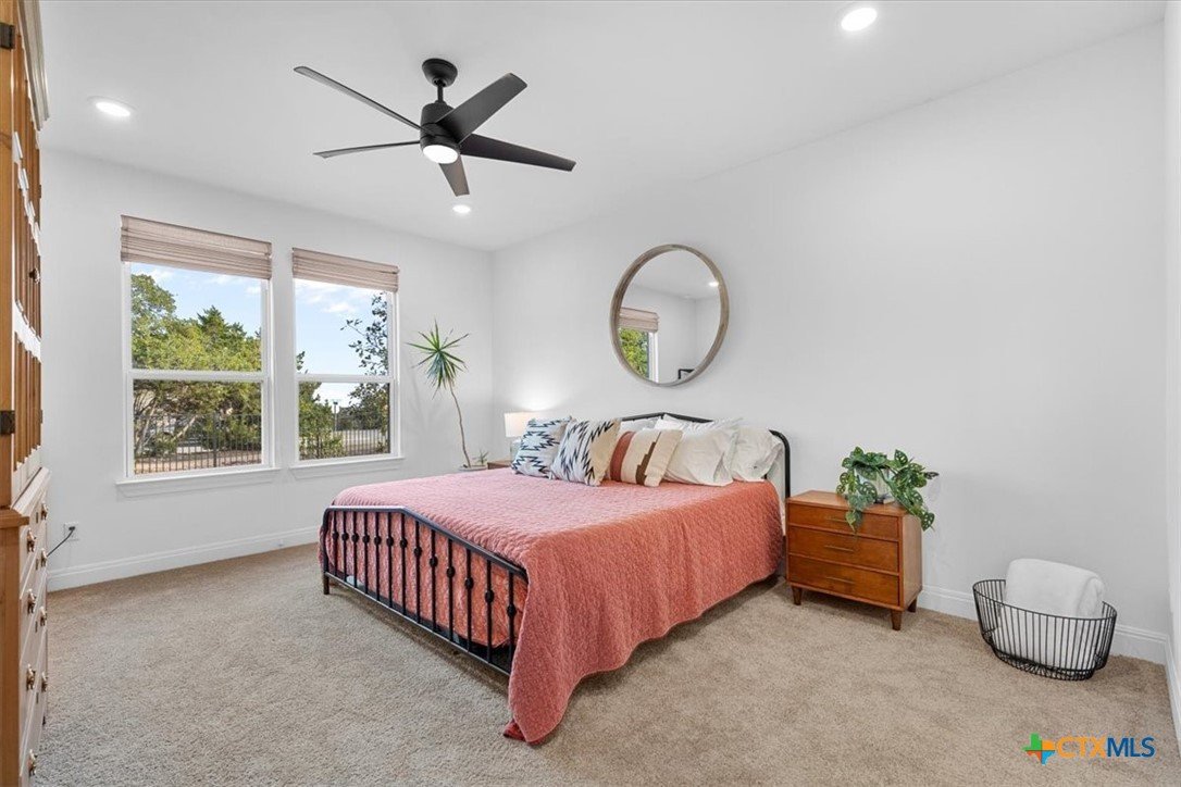 Welcome to 404 Climbing Rock, located in the top-rated Dripping Springs ISD and surrounded by the breathtaking amenities of the Caliterra community. This master-planned neighborhood is known for its stunning Hill Country landscape, offering miles of scenic trails along Onion Creek, a resort-style pool and splash pad, The Hall pavilion, a fishing dock, multiple playgrounds, and expansive green spaces designed to celebrate nature. Coming soon, Caliterra will debut The Ranch, an exciting new amenity expansion featuring a modern fitness center, lap pool, open-air event pavilion, and pickleball courts, bringing even more value and recreation to the community. Inside, this thoughtfully designed home offers an open floor plan that provides seamless flow between the living, dining, and kitchen areas. The living room is enhanced by a raised tray ceiling with crown molding, creating a bright and elevated atmosphere. Additional upgrades include new carpet, quartz countertops, solid brass kitchen hardware, upgraded Roman shades, and stylish Pottery Barn light fixtures. The primary suite includes a spa-inspired shower with a white cultured-marble seat, rain shower head, and hand-held shower. A convenient gas hookup on the back patio makes outdoor dining and entertaining effortless. The exterior is equally impressive, with full front-yard drip irrigation and a curated selection of native, drought-tolerant landscaping, making this yard both beautiful and low maintenance. Set on an elevated lot, the home captures beautiful sunrises and sunsets, offers incredible stargazing, benefits from refreshing Hill Country breezes, and provides excellent bird watching thanks to its location along a natural migration route. Move-in ready and offering exceptional access to Caliterra’s remarkable amenities, this home delivers a truly elevated Hill Country lifestyle.