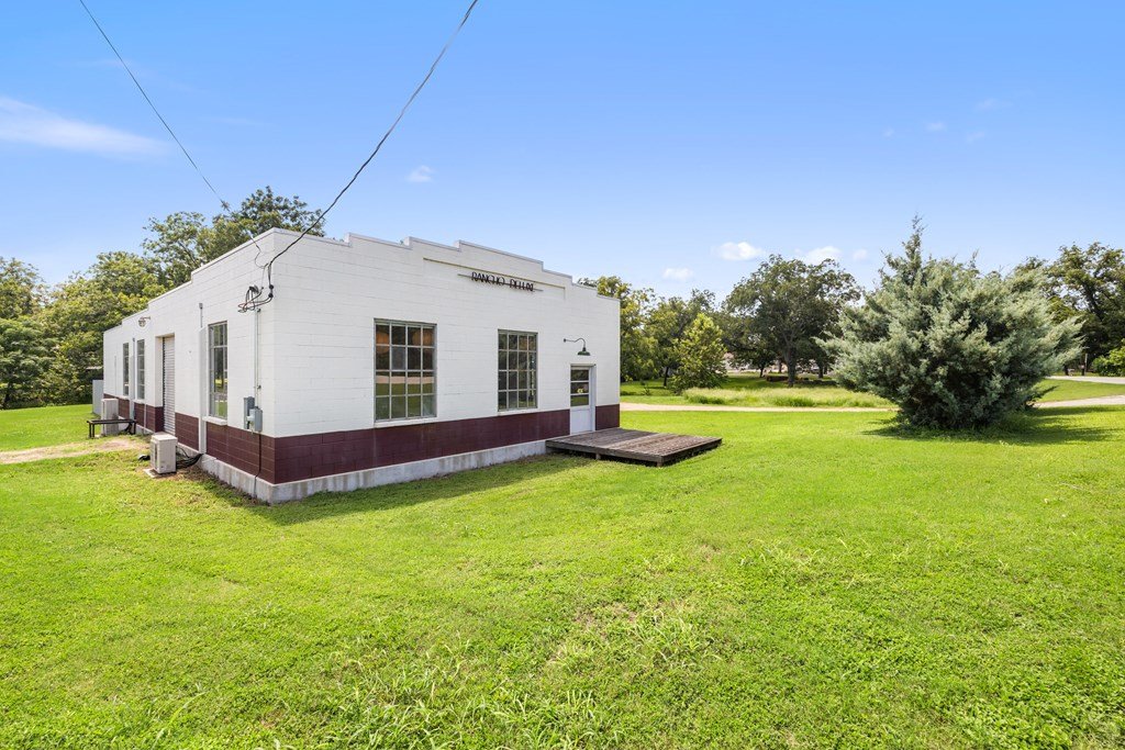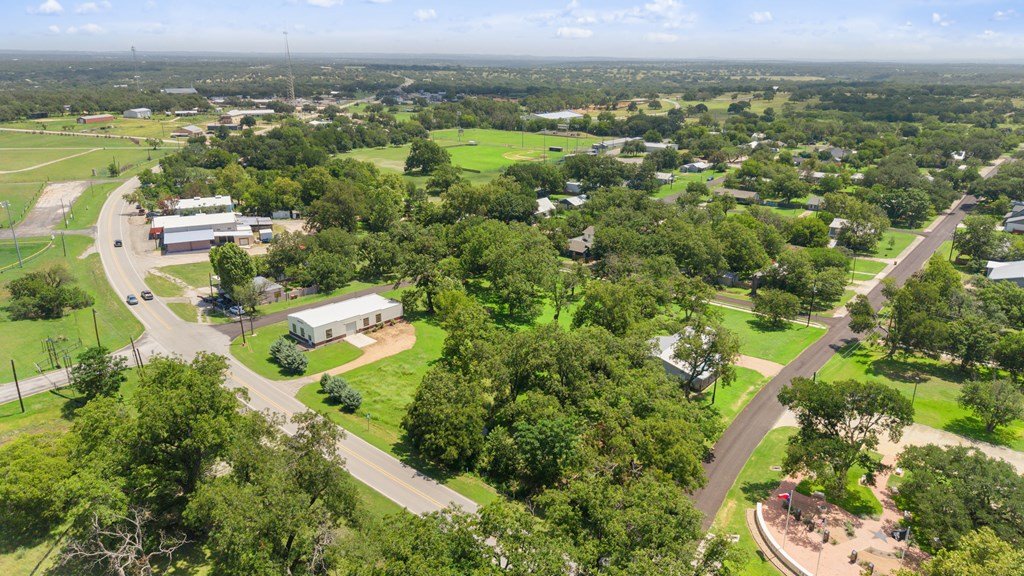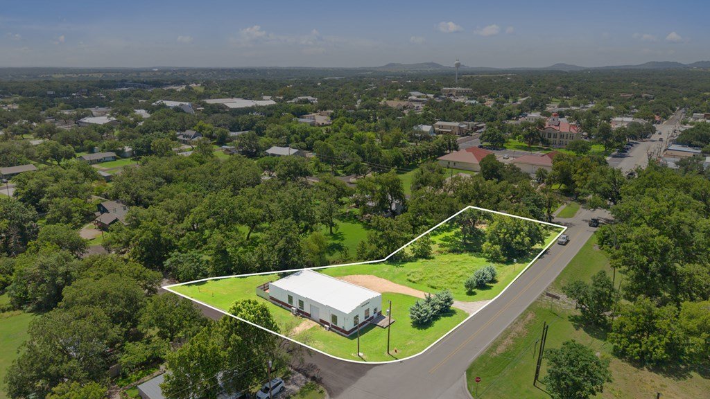 Exceptional 2,736 sq ft commercial property on a generous 0.80-acre lot, ideally located one block from downtown and directly off Hwy Spur for high visibility and easy access. Built for strength and efficiency and designed to appear that it has always stood in town, the structure features filled, steel-reinforced concrete block on a 6” slab, 14' ceilings, a tornado-resistant heavy-gauge R-panel roof, and custom 7'x5' steel double-glazed windows and doors. Inside, you'll find polished concrete floors, commercial-grade conduit wiring (110/220V), LED lighting, two Mitsubishi commercial split A/C units, industrial plumbing, and two ADA-size bathrooms. Two oversized 10'x10' roller doors and an insulated dividing wall create two versatile spaces (735 sq ft and 2,001 sq ft), perfect for flexible commercial use. Finishing touches include a cedar front deck and 190” birch plywood interior walls with shadow gap detailing. The property also includes an additional build site with its own water and sewer tap already established on Bluebonnet, offering excellent potential for expansion.