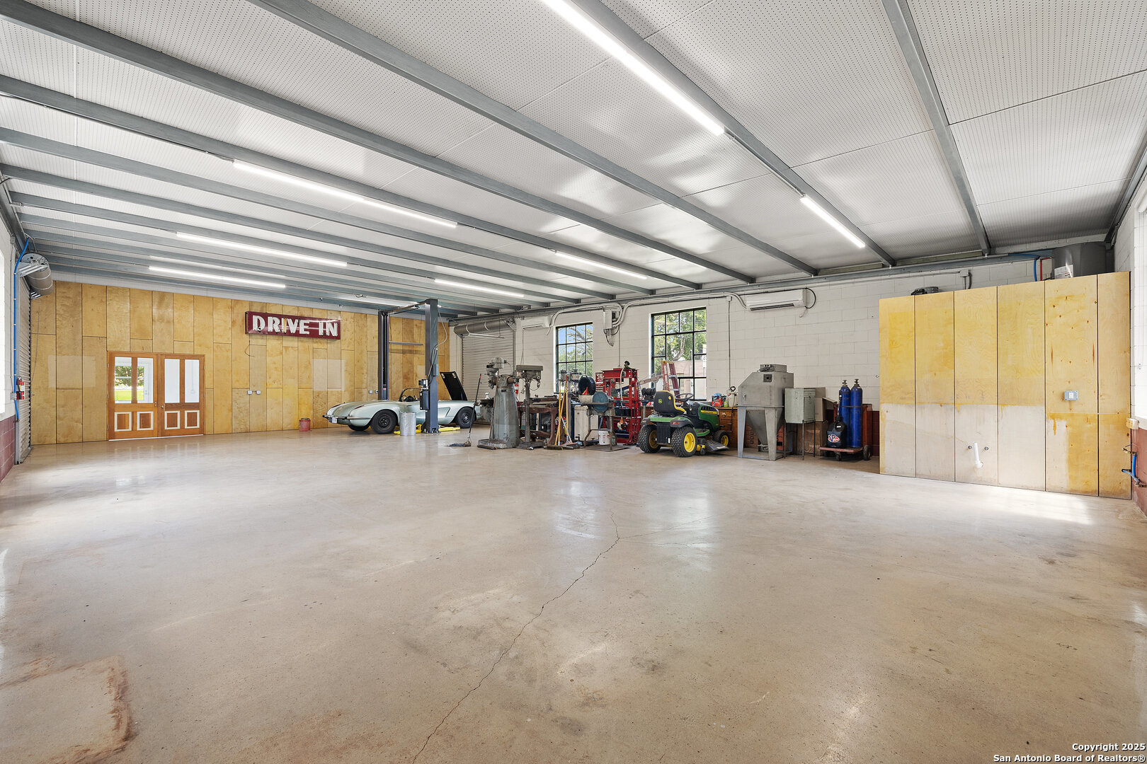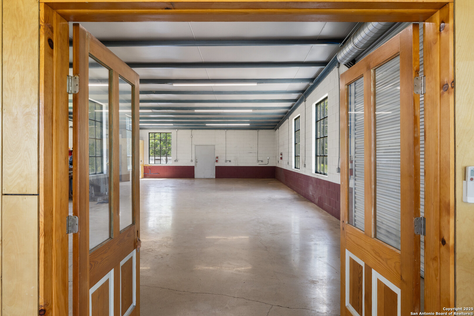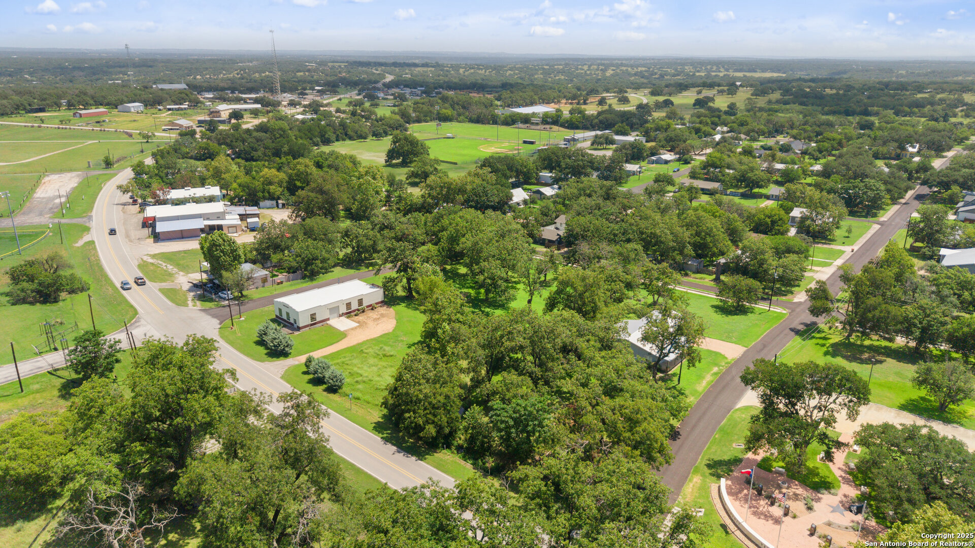 Exceptional 2,736 sq ft commercial property on a generous 0.80-acre lot, ideally located one block from downtown and directly off Hwy Spur for high visibility and easy access. Built for strength and efficiency and designed to appear that it has always stood in town, the structure features filled, steel-reinforced concrete block on a 6" slab, 14' ceilings, a tornado-resistant heavy-gauge R-panel roof, and custom 7'x5' steel double-glazed windows and doors. Inside, you'll find polished concrete floors, commercial-grade conduit wiring (110/220V), LED lighting, two Mitsubishi commercial split A/C units, industrial plumbing, and two ADA-size bathrooms. Two oversized 10'x10' roller doors and an insulated dividing wall create two versatile spaces (735 sq ft and 2,001 sq ft), perfect for flexible commercial use. Finishing touches include a cedar front deck and 190" birch plywood interior walls with shadow gap detailing. The property also includes an additional build site with its own water and sewer tap already established on Bluebonnet, offering excellent potential for expansion.