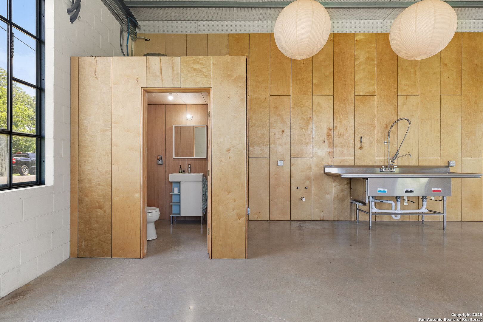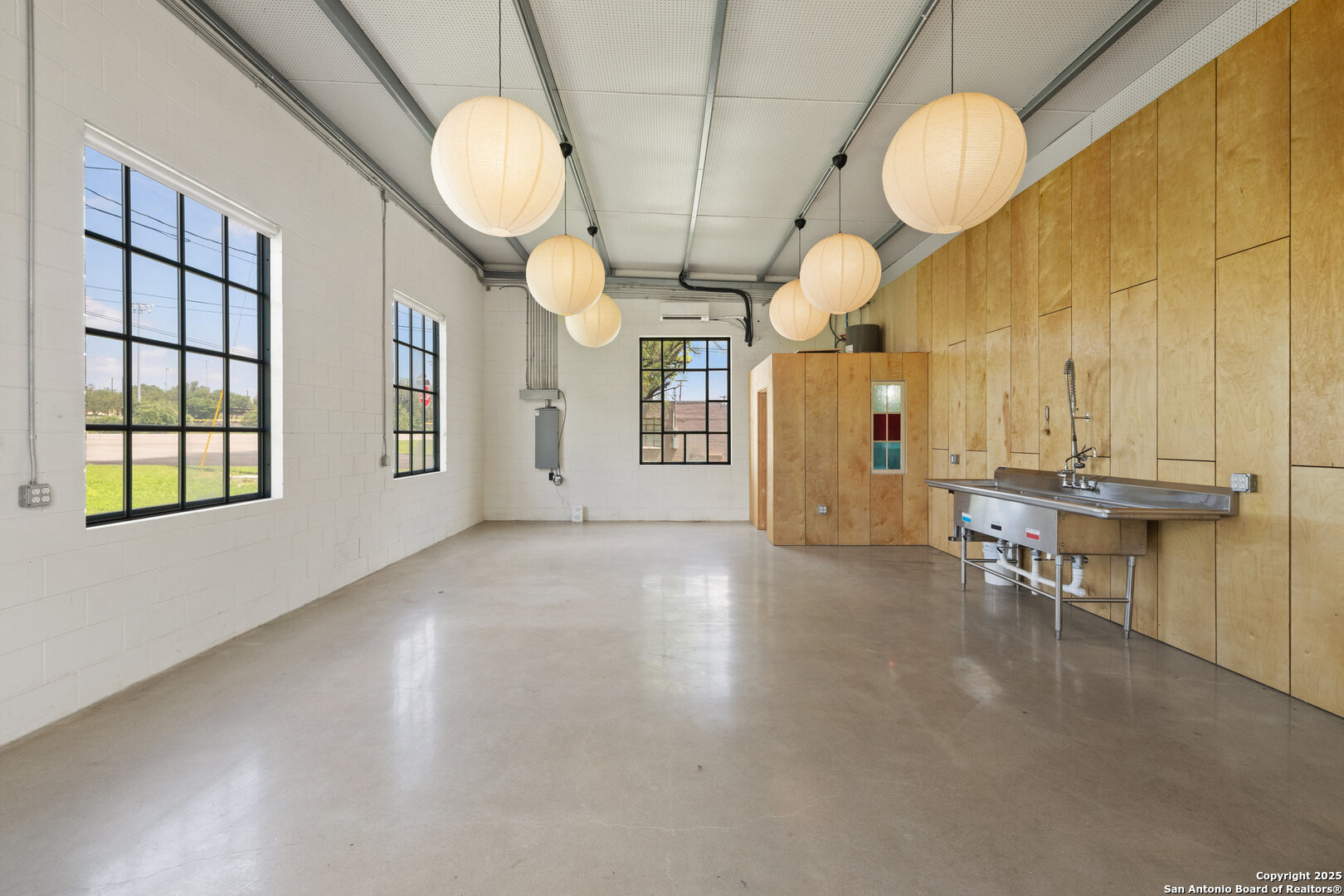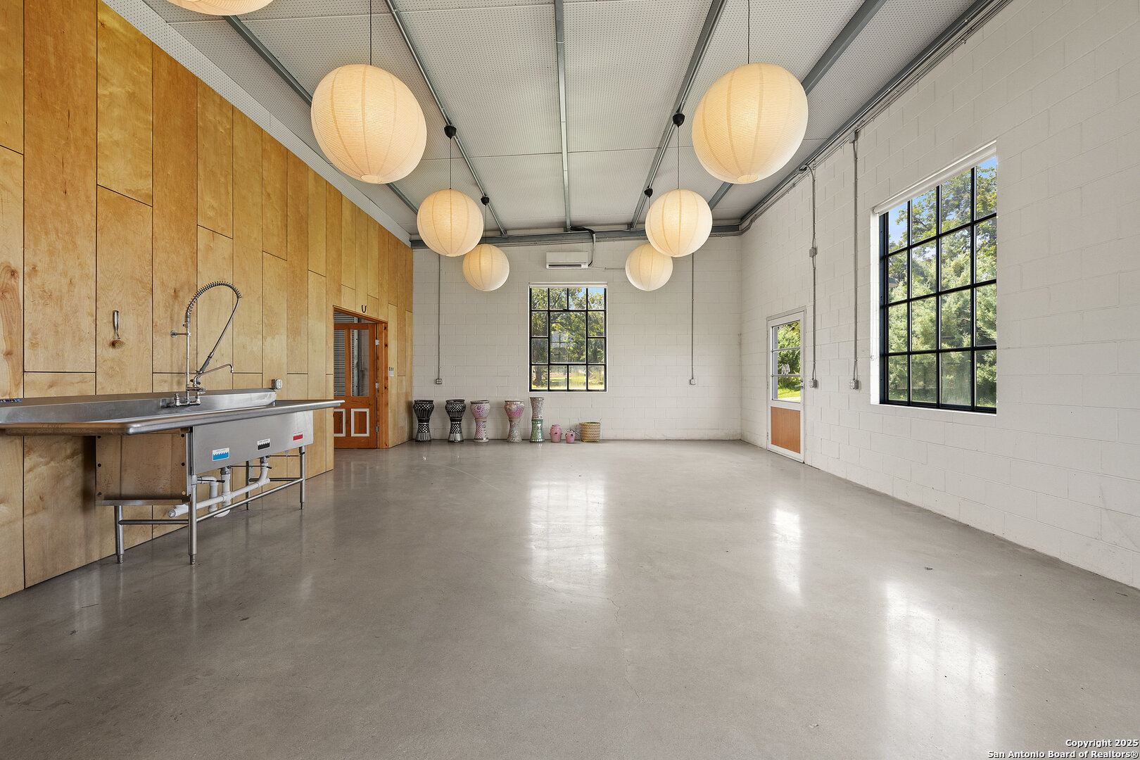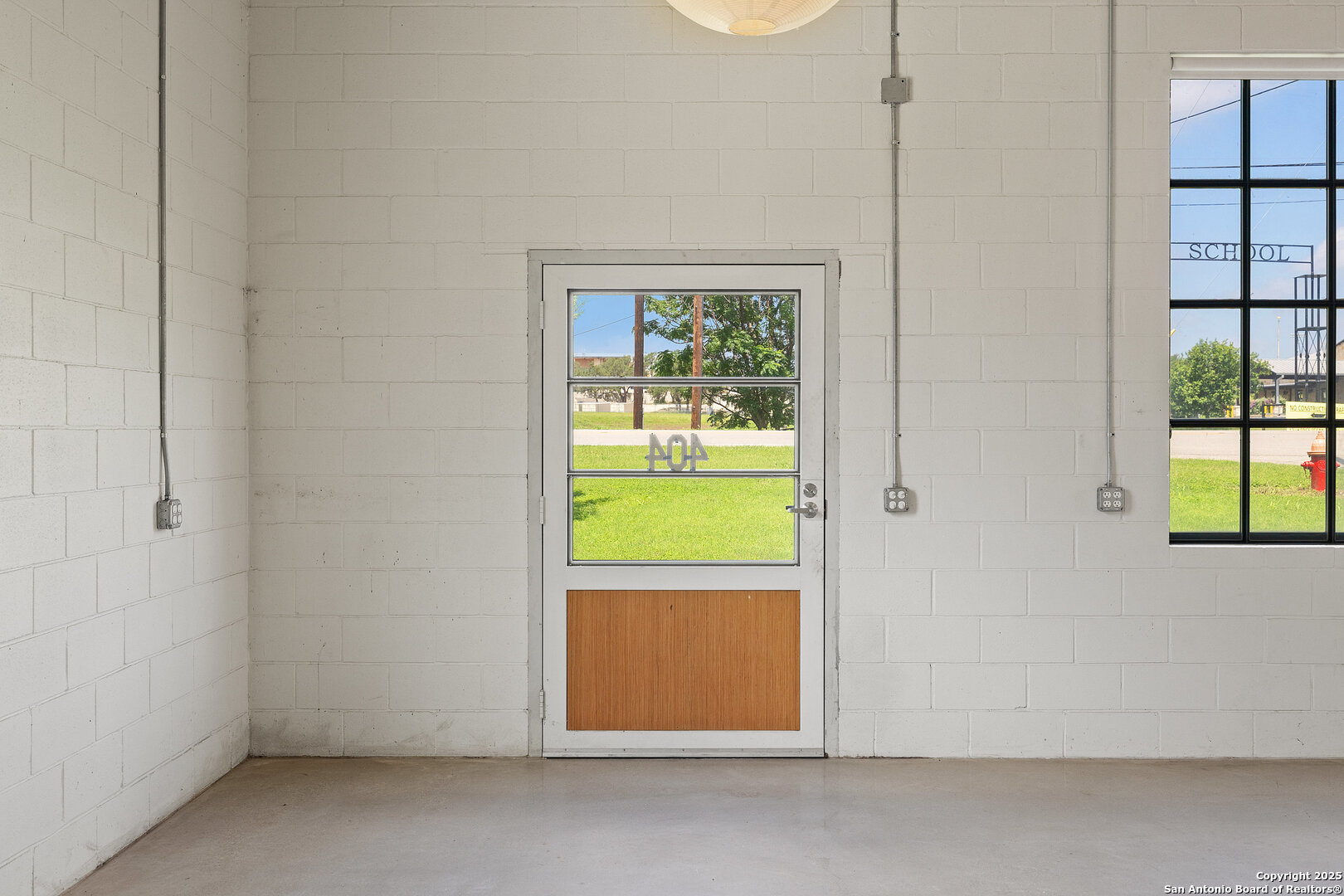 Exceptional 2,736 sq ft commercial property on a generous 0.80-acre lot, ideally located one block from downtown and directly off Hwy Spur for high visibility and easy access. Built for strength and efficiency and designed to appear that it has always stood in town, the structure features filled, steel-reinforced concrete block on a 6" slab, 14' ceilings, a tornado-resistant heavy-gauge R-panel roof, and custom 7'x5' steel double-glazed windows and doors. Inside, you'll find polished concrete floors, commercial-grade conduit wiring (110/220V), LED lighting, two Mitsubishi commercial split A/C units, industrial plumbing, and two ADA-size bathrooms. Two oversized 10'x10' roller doors and an insulated dividing wall create two versatile spaces (735 sq ft and 2,001 sq ft), perfect for flexible commercial use. Finishing touches include a cedar front deck and 190" birch plywood interior walls with shadow gap detailing. The property also includes an additional build site with its own water and sewer tap already established on Bluebonnet, offering excellent potential for expansion.