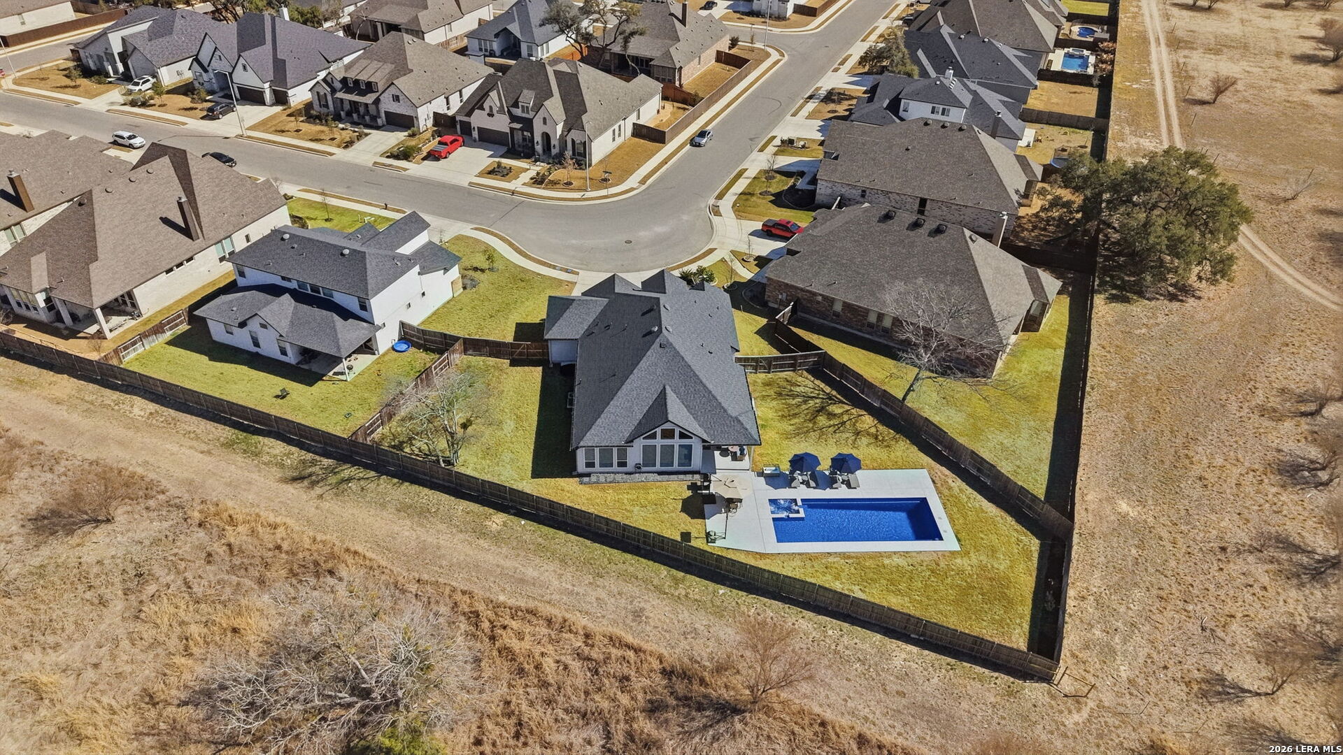 **GRAB A MARGARITA AT THIS FIESTA OPEN HOUSE 4/11 FROM 1-4** Experience refined living in this stunning 2023 Chesmar home Mackenzie floor plan, perfectly positioned on an oversized quarter acre lot backing to a private greenbelt. Located in Cibolo ,this exceptional property offers privacy, space, and convenience in one of the area's most desirable communities. With 4 bedrooms, 3 bathrooms, and a dedicated study, this home blends thoughtful design with upscale comfort. Soaring ceilings and a dramatic vaulted living room create an impressive first impression, while the open concept layout is ideal for both everyday living and entertaining. The chef's kitchen features abundant cabinetry, expansive counter space, and double ovens which seamlessly connect to the main living and dining areas. Custom accent walls that add a sophisticated designer touch. Step outside to a true resort style retreat. The 40 foot saltwater pool and spa anchor the expansive backyard, complete with generous space for pool loungers and entertaining. With plenty of yard remaining, there is room to add a sport court, firepit, outdoor kitchen, or create the ultimate custom outdoor oasis. Located just minutes form Randolph Air Force Base and The Forum at Olympia Parkway for premier shopping & dinning. Luxury, lifestyle, and location come together seamlessly in this nearly new home.