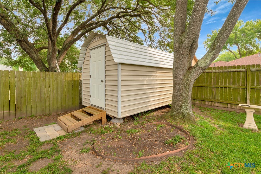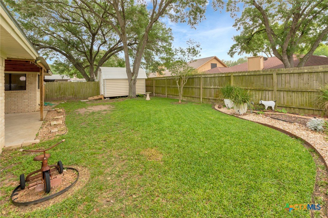 Welcome to 405 Roanoke Drive in Victoria, Texas. A charming and well-maintained home that offers comfort, character, and a great outdoor space. This 3-bedroom, 2-bathroom home features 1,422 square feet of thoughtfully designed living space. The inviting living room boasts a vaulted ceiling that creates an open, airy feel, along with a cozy fireplace that serves as the perfect focal point for relaxing evenings or gathering with family and friends. Step outside to enjoy the covered patio—ideal for entertaining or unwinding after a long day. The beautifully landscaped backyard is a true highlight, complete with a mature shade tree that provides both beauty and comfort, as well as a convenient storage shed for tools or hobbies.