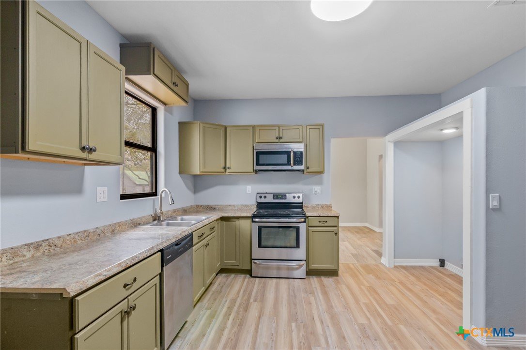 Welcome to this adorable, fully remodeled home in the heart of Yoakum—an inviting small town known for its charm, friendliness, and easy living. This move-in-ready home blends fresh modern touches with classic style, offering a crisp, updated interior that feels brand new. The range is included, and the home sits on a corner-style setting with city streets on two sides, giving you great access and a roomy feel. The lot is shaded by beautiful mature trees, including pecans, adding the perfect touch of South Texas character. The location couldn’t be more convenient—just minutes from town and within 30 minutes or less of Victoria, Gonzales, Edna, Cuero, Hallettsville, or Shiner, and under two hours from San Antonio, Austin, Houston, and Corpus Christi. Whether you’re looking for your first home or simply want a completely renovated, move-in-ready space in a peaceful community, this one is ready to welcome you home. More pictures will be available next week.