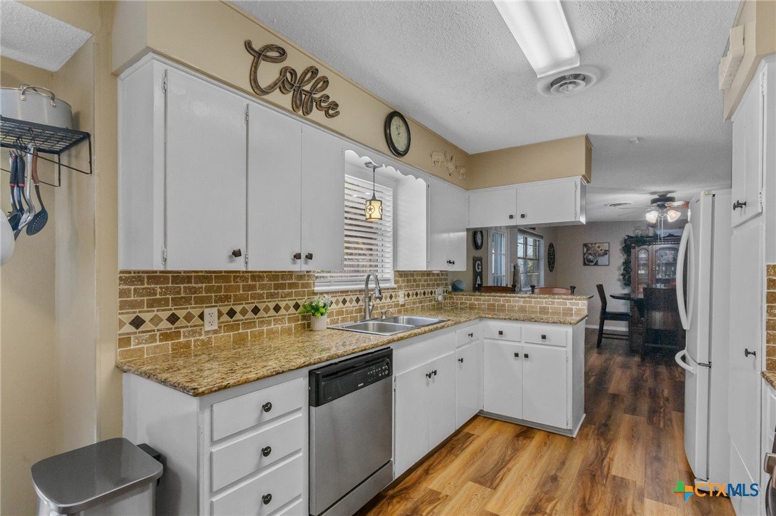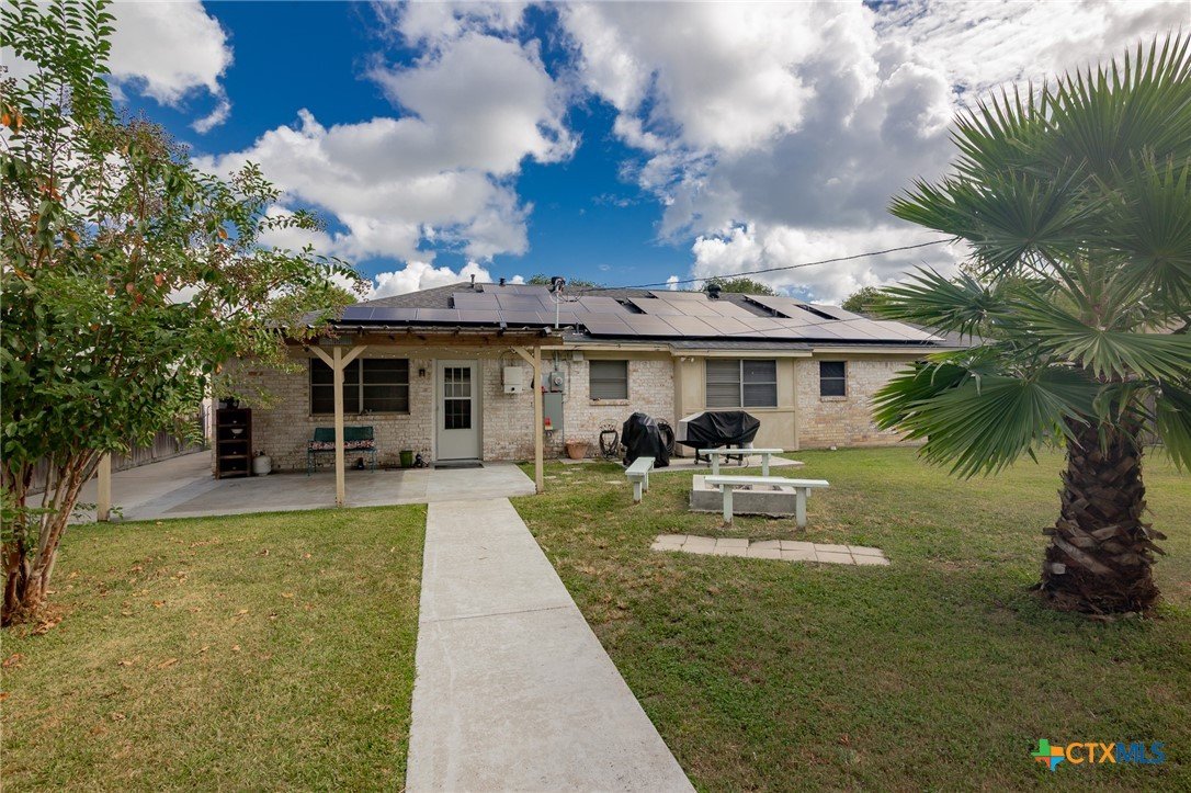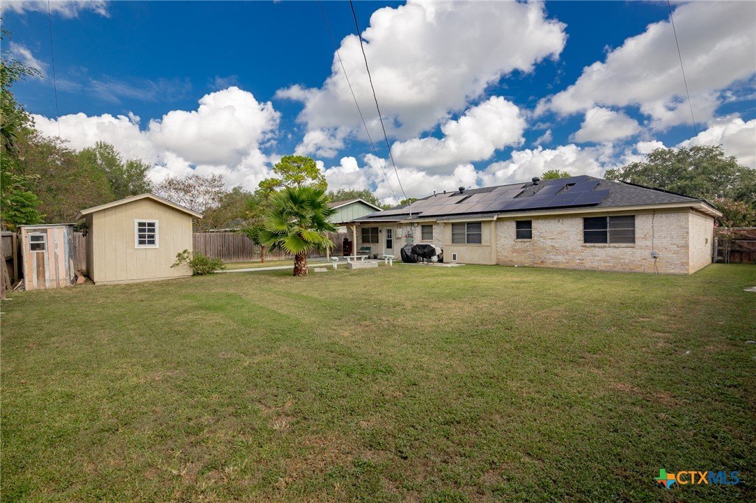 Charming curb appeal welcomes you home with classic shutters, a cozy covered front porch, and all the character you’ve been searching for. Inside, you’ll find brand-new wood vinyl flooring, a bright breakfast area, and a formal dining room ready for family gatherings or dinner parties. The kitchen shines with granite countertops and plenty of space to cook and connect. But the real magic happens when you step outside -- enjoy evenings on the covered back porch under glowing party lights, gather friends around the fire pit, or transform the versatile storage building into your dream man cave, she shed, or hobby space. Practical perks make this home even sweeter: solar panels to save on utilities and a brand-new AC for peace of mind. Whether you’re hosting friends around the fire pit or running errands just minutes away, this home makes everyday living easy and enjoyable!