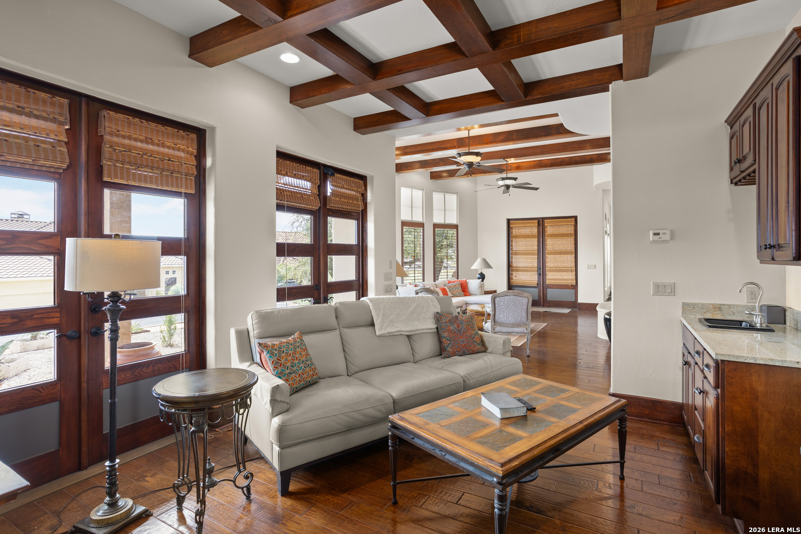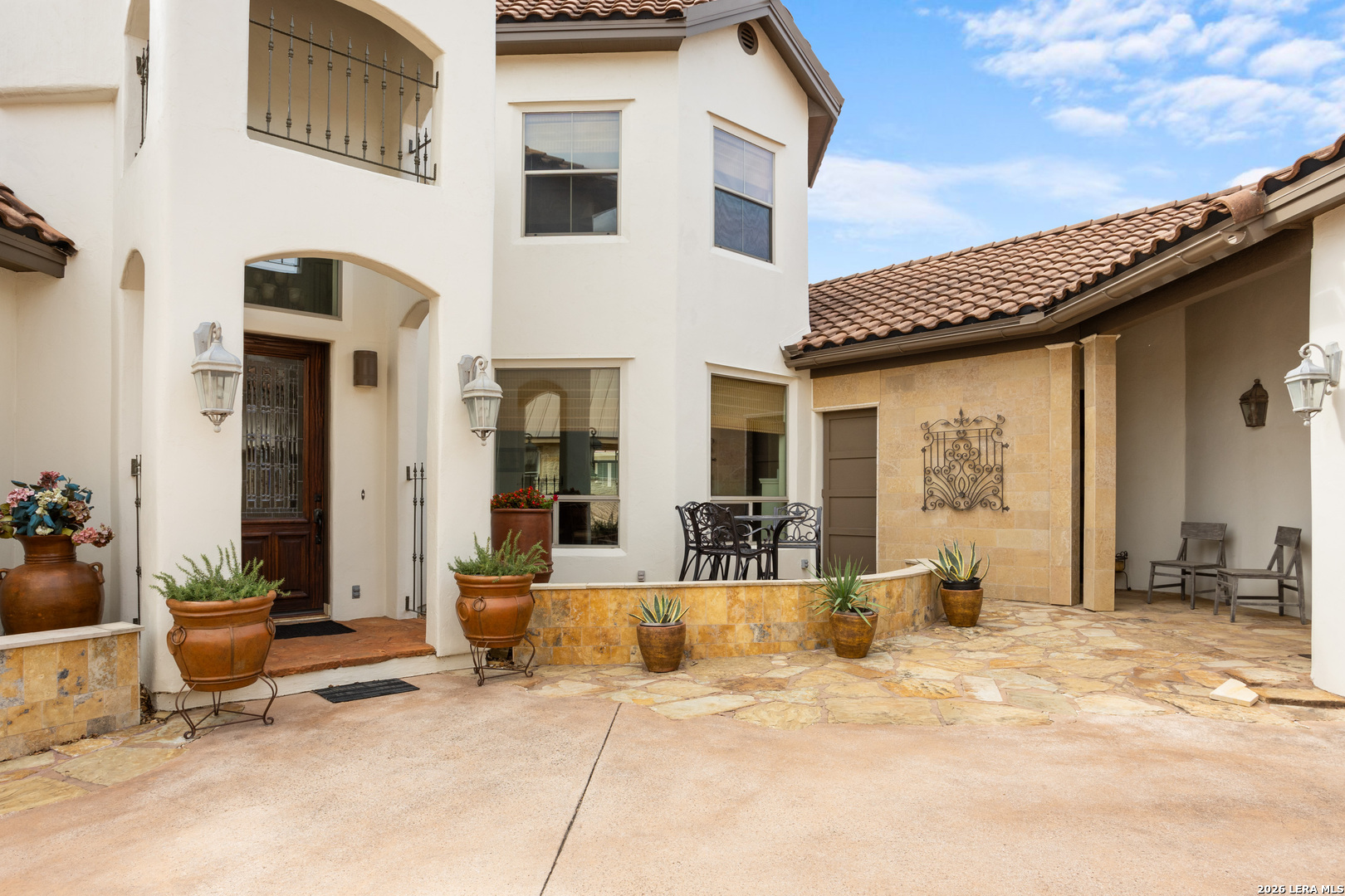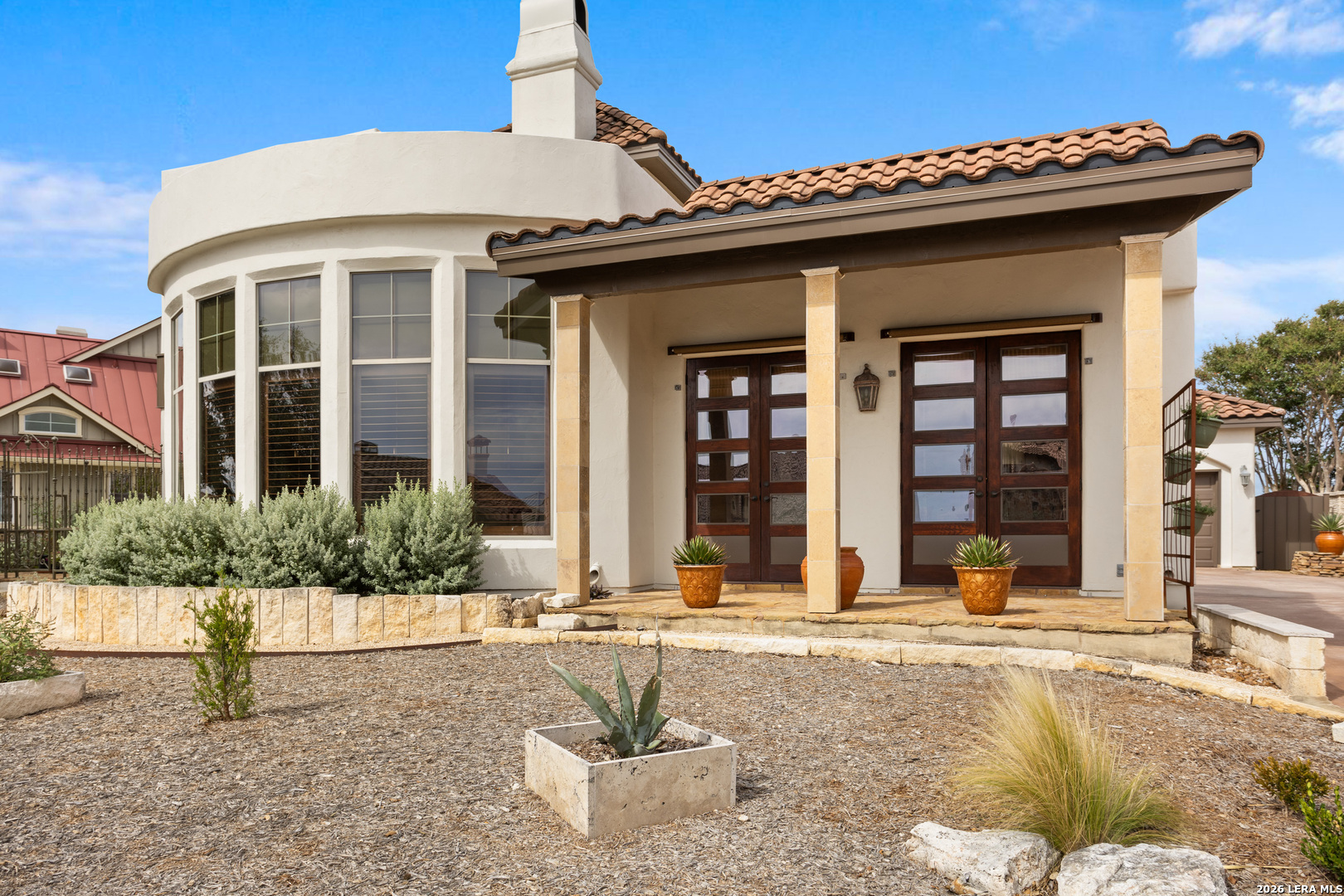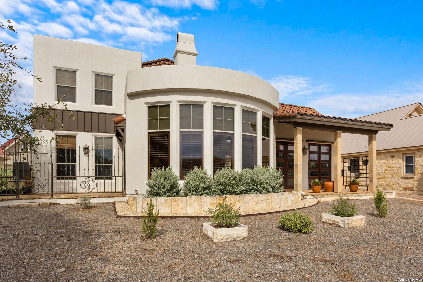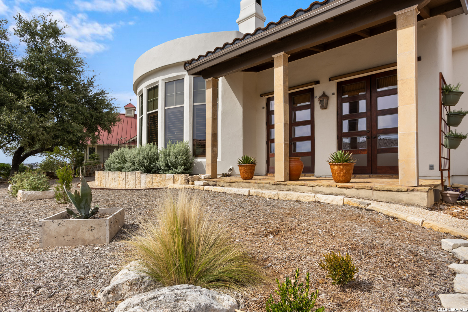 Elegant Hill Country style home offering 3 Bedrooms, 2.5 baths and approx 2,888 sq. ft. of thoughtfully designed living space. Enjoy multiple indoor and outdoor living areas including a courtyard entry, a covered patio, a fenced open patio and large oak trees for shade. The home features a spacious primary suite, a dedicated loft study, and beautiful kitchen with adjacent dining. Quality finishes throughout-hand scraped wood floors, imported Italian tiles, granite countertops, custom cabinetry, rod-iron elements and a unique wine grotto add warmth and character throughout. An oversized-2.5 car garage completes this beautifully detailed property. Located just 4 miles from downtown Boerne and 1 mile from Tapatio Springs Resort, you'll enjoy convenient access to golf, pools, dining, and resort amenities while savoring the privacy and tranquility of this property.