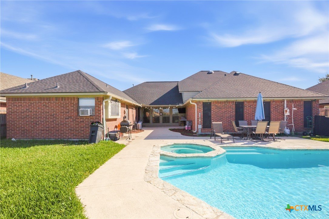 Nestled in the heart of Victoria, TX, this stunning two-story home effortlessly combines comfort with style. With 4 spacious bedrooms and 2 full baths, there's ample space for both family living and hosting guests. The well-designed loft upstairs makes an ideal spot for a home office, a theatre room or a play area. The heart of the home is beautifully complemented by generously sized windows that invite natural light throughout. Outside, enjoy your private oasis featuring a gleaming pool and relaxing hot tub—perfect for weekend gatherings or unwinding after a long day. Whether you're relaxing by the pool or enjoying nearby amenities, this exceptional property is ready to welcome you home! Don’t miss your chance to experience all this splendid dwelling has to offer; it’s more than just a house—it’s your future!