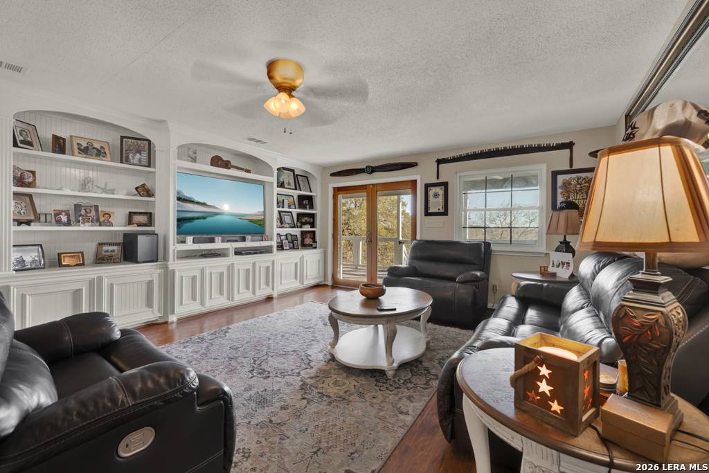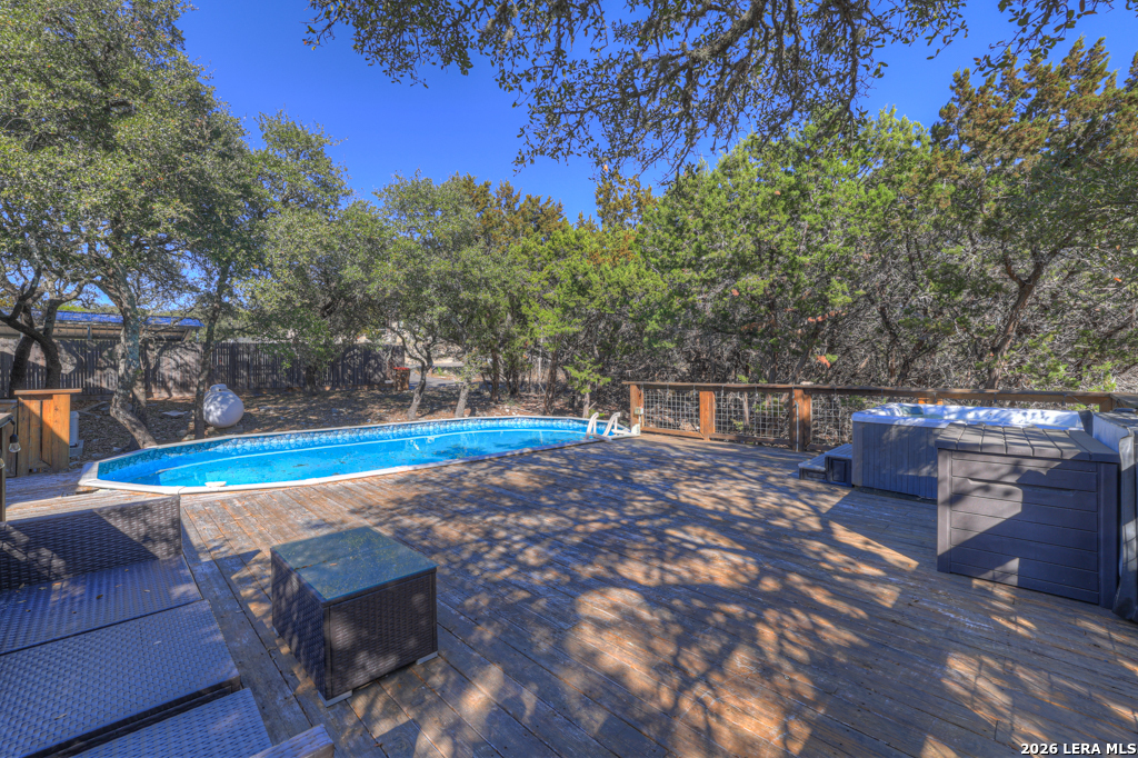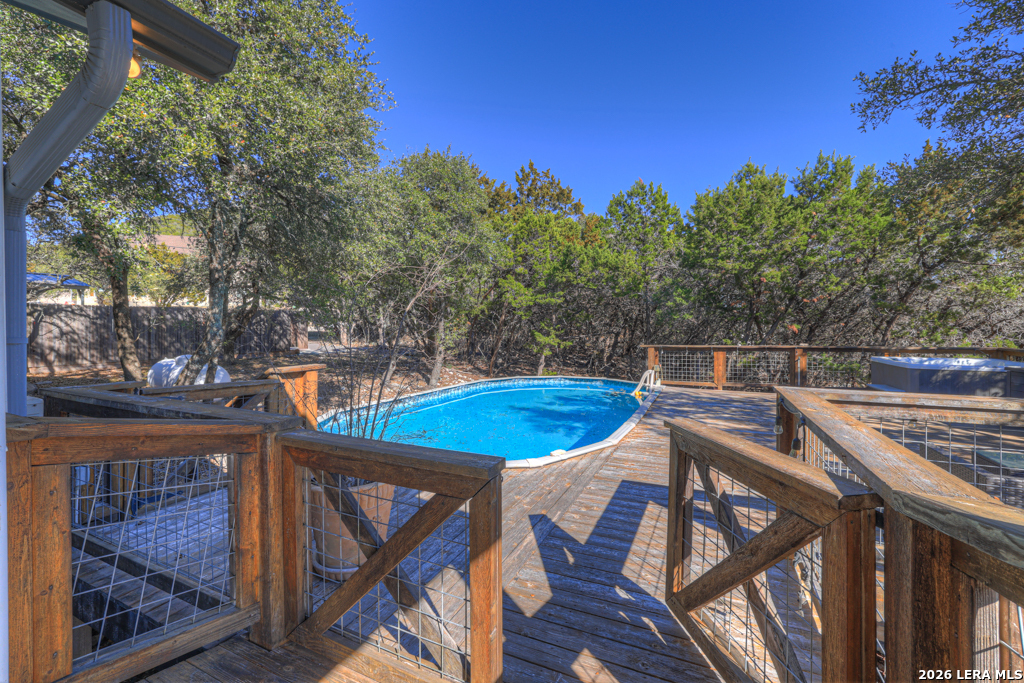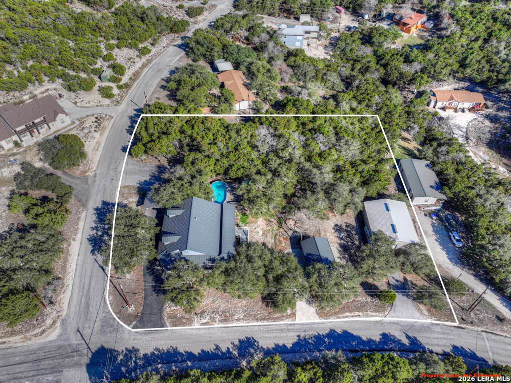 Situated on approximately 1.4 unrestricted acres with panoramic Hill Country views, this 3-bedroom, 2-bath home offers the perfect blend of comfort and flexibility. The open concept floor plan includes a flex room, functional kitchen with quartz countertops and a spacious breakfast area filled with natural light. Interior highlights include reverse osmosis system, tankless water heater, primary bath with a clawfoot soaking tub and dual-head shower. A whole-house generator provides added peace of mind. A newer standing seam metal roof designed for longevity and minimal maintenance, provides superior protection while enhancing the property's overall architectural appeal. Outdoor living shines with a wrap-around porch, above-ground heated pool with expansive deck, and hot tub-ideal for entertaining or relaxing while enjoying the views. The impressive 40x50 shop includes separate area plumbed for water, offering excellent potential for guests or workspace. Additional features include a 3-car garage with epoxy floors and RV hookup with 50-amp breaker. Seller is including 430 Jaylee (lot 70D) in the sale of the home. Space, views, and versatility - this property truly has it all.