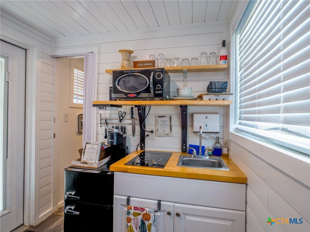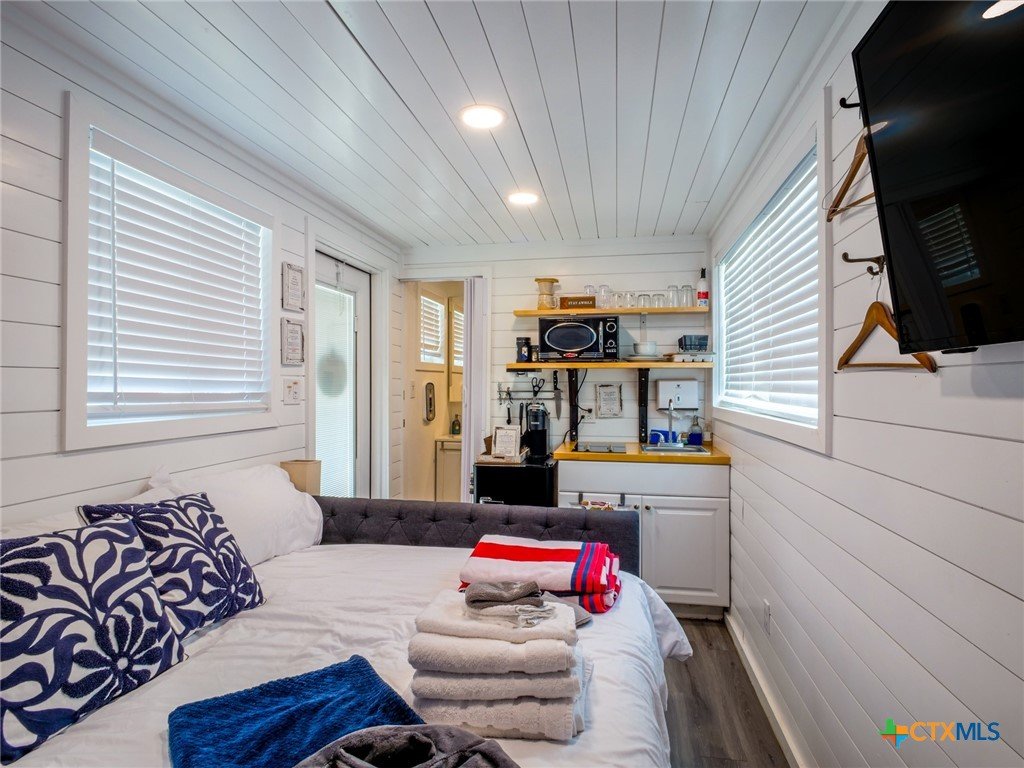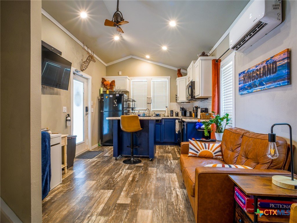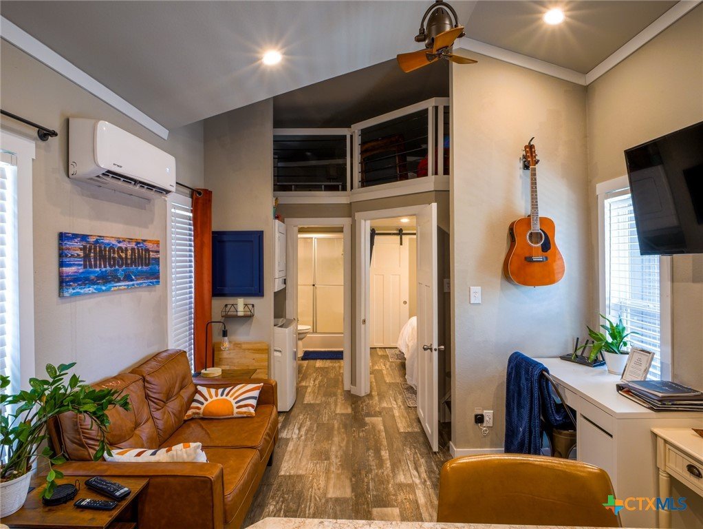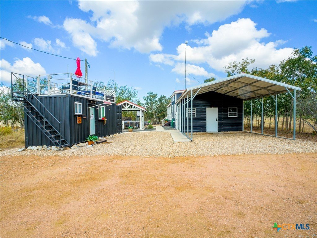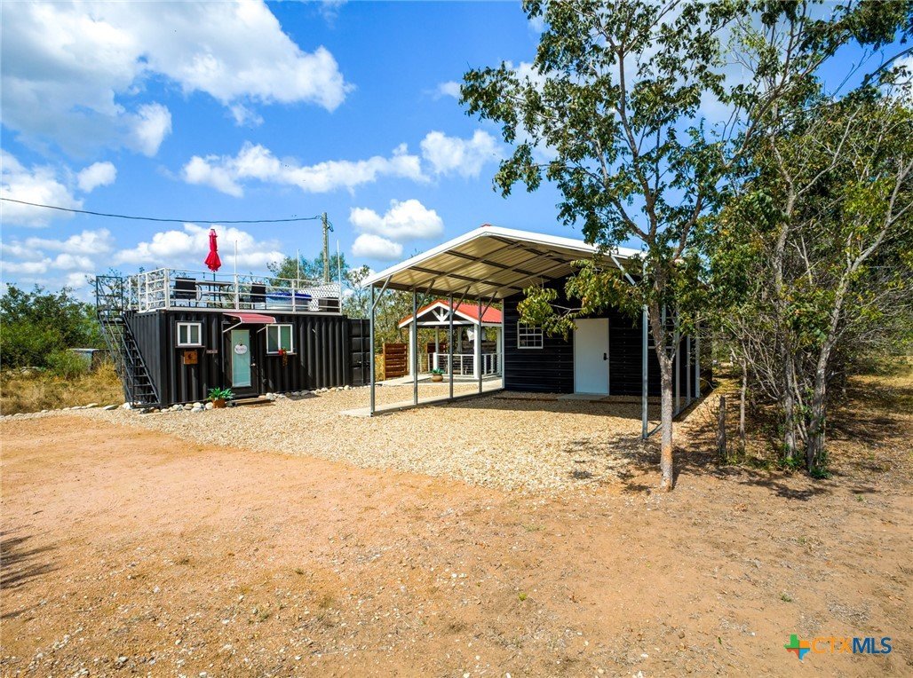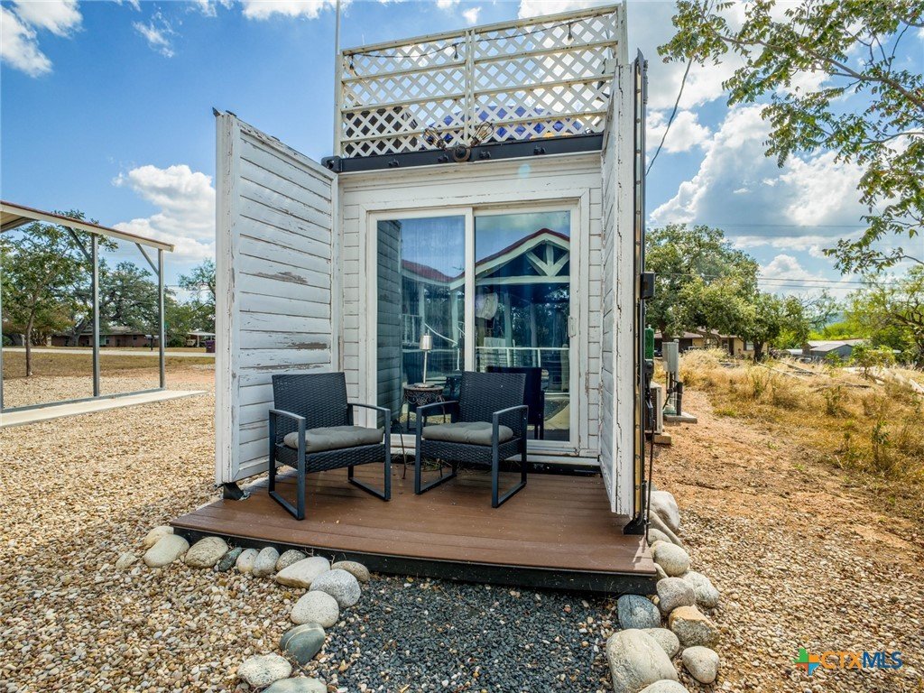 Turnkey STR Investment in Kingsland – Two Stylish Homes ( 1/1 container home & 2/1 tiny home) with Stunning Packsaddle Views.Discover a rare and versatile short-term rental gem in the heart of Kingsland, just minutes from the sparkling shores of Lake LBJ. This beautifully maintained, low-maintenance property features two fully outfitted rental units—a modern Park Model tiny home and a cleverly designed container home—each with their own private cowboy pool, Trex decking, and thoughtfully curated interiors. The Park Model offers a spacious one-bedroom, one-bath layout with a queen bed, plus a cozy loft with an additional queen. Enjoy a full kitchen with new appliances, marble breakfast bar, and a stackable washer/dryer. Outdoor amenities include a private spa, covered seating with an electric fireplace, and LP grill. The Container Home brings a playful twist with a rooftop deck, queen day bed, stylish kitchenette, full-size shower, and on-demand hot water. Shared spaces include a built-on-site pavilion with TV, farm table, and grill—perfect for entertaining or guest mingling. A common fire feature sits between the units, surrounded by seating, and a dedicated posh dog run makes it a hit with pet lovers. The property also includes covered parking for two vehicles, an attached garage/maid’s area with a separate washer/dryer, maid’s station, supplies, and extra linens—everything needed to continue a thriving STR operation. Great STR, lake retreat or live in oneand rent the other! Unlimited options!!