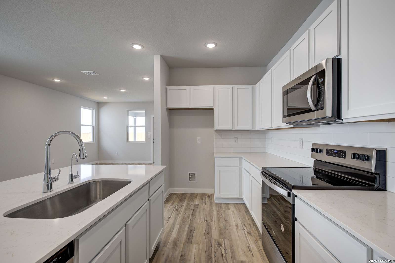 Introducing the Frederick at Millican Grove: a 2,260-square-foot haven that blends functionality with modern living. This two-story home invites gatherings in its first-floor, open-concept great room, home to a living room, dining area, and a well-equipped kitchen complete with a walk-in pantry and a center island. The owner's suite is nearby, offering a large walk-in closet and a private bath with dual vanities. Upstairs, an open loft adds to the home's spacious feel. Three additional bedrooms and a full bathroom round out the plan. Additional home highlights and upgrades: 36" white kitchen cabinets, quartz countertops and backsplash Stainless-steel appliances Luxury "wood-look" vinyl plank flooring in common areas Recessed lighting throughout home Cultured marble countertops and modern rectangular sinks in bathrooms Full irrigation system with landscape package Soft water loop 240V Electric car charger Covered patio Exceptional included features, such as our Century Home Connect smart home package and more!
