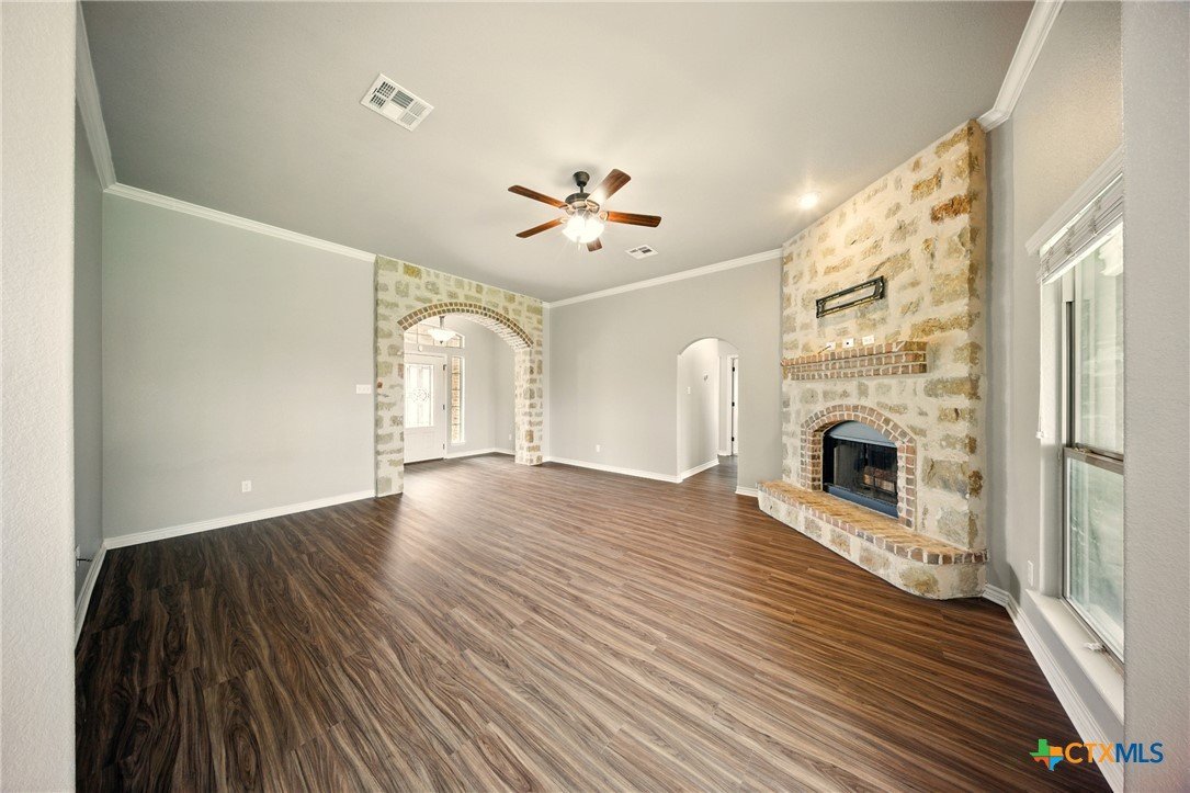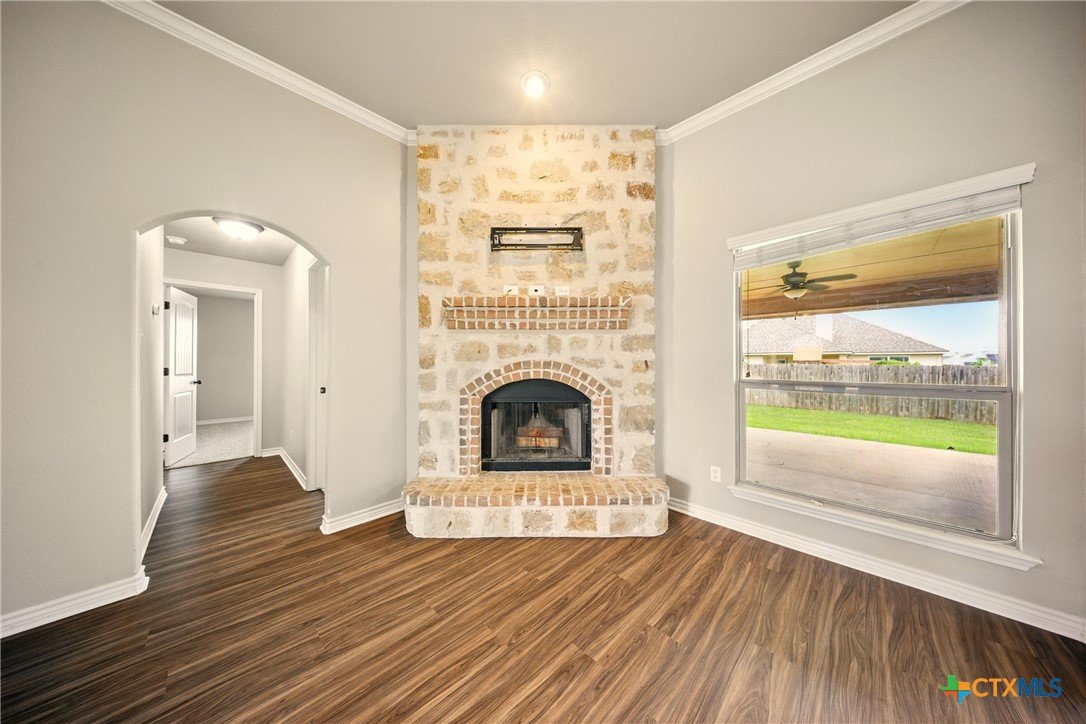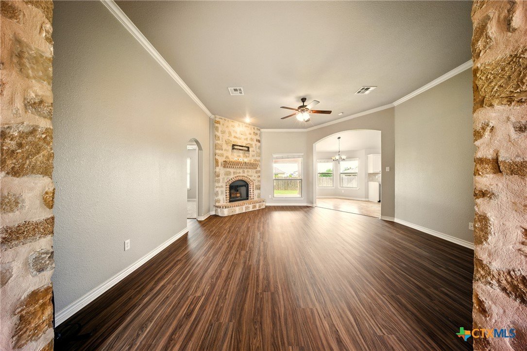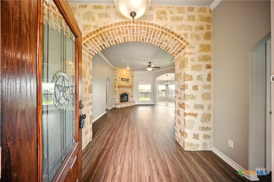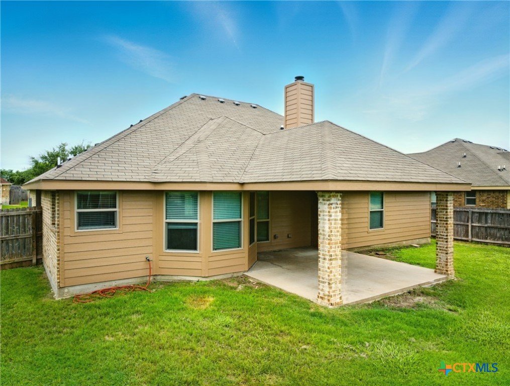 Welcome home to this beautifully updated 4-bedroom, 2-bathroom gem in the desirable Wyndham Hill neighborhood, where community living meets everyday comfort. Enjoy neighborhood amenities like a community pool, playgrounds, and walking trails. This thoughtfully designed split floor plan features crown molding in the living room and striking interior stone accents, including a stunning stone and brick wood-burning fireplace. The home boasts brand new luxury vinyl plank flooring in the living room and hallway, along with brand new carpet in the secondary rooms. Both the interior and exterior have been freshly painted, giving the home a clean, modern feel. The kitchen is equipped with granite countertops, a center island, pantry, and plenty of cabinet space perfect for everyday living and entertaining. The spacious master suite includes tile flooring, dual vanities, a garden tub, separate walk-in shower, and his and hers closets. Enjoy outdoor living on the large covered back patio overlooking a private backyard ideal for relaxing or entertaining. Conveniently located just minutes from the Temple VA, Baylor Scott & White Hospital, shopping, restaurants, and I-35 for an easy commute to Austin or Waco. This home is also zoned for highly regarded Academy ISD. Don't miss your chance to call this place home!