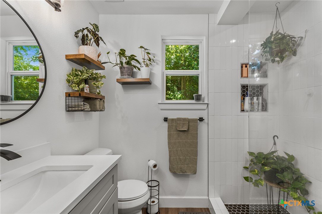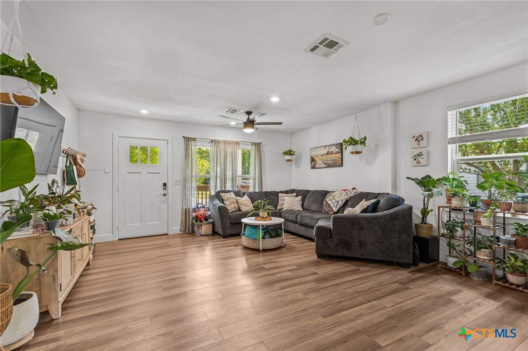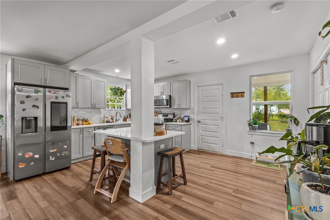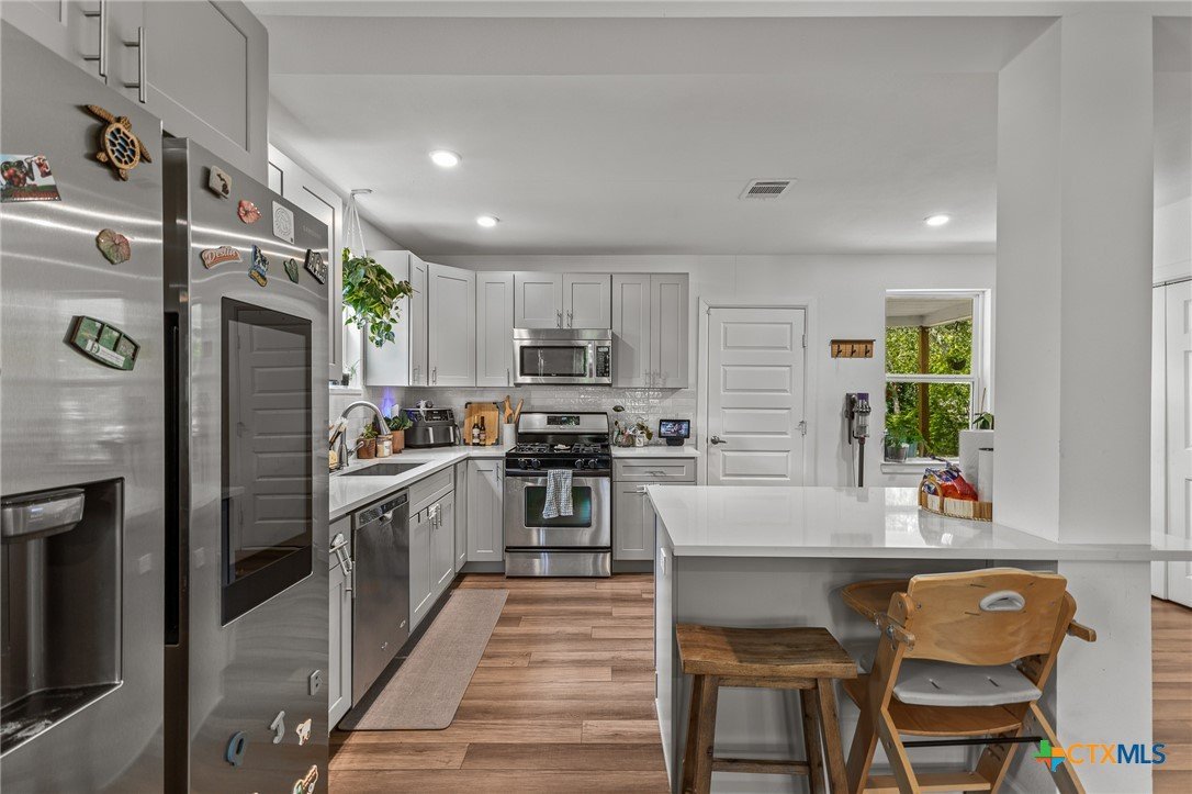 Seller is offering $3,200 toward buyer’s closing costs and will pay for the title policy, making this a rare turnkey opportunity with major savings! This fully renovated bungalow is the perfect blend of charm, style, and smart functionality—complete with a Samsung smart fridge with screen, washer and dryer, and a gas range for those who love to cook. The open-concept layout features luxury vinyl plank flooring throughout (no carpet!), recessed lighting, and a bright, modern kitchen with shaker cabinets, quartz countertops, and subway tile backsplash. The spacious primary suite includes two walk-in closets and a beautifully updated ensuite with frameless glass shower, while two additional bedrooms (one currently used as an office) provide flexible living options. Enjoy covered porches in both the front and back, and a huge fenced backyard with mature trees, perfect for entertaining or relaxing. This home also includes smart home features such as a smart thermostat and doorbell, plus a full security system that conveys. Don’t miss your chance to own this thoughtfully updated home on a spacious lot with room to breathe! VETERAN? ASSUMABLE VA LOAN WITH A LOW MONTHLY PAYMENT: $1,596. Reach out for more details.