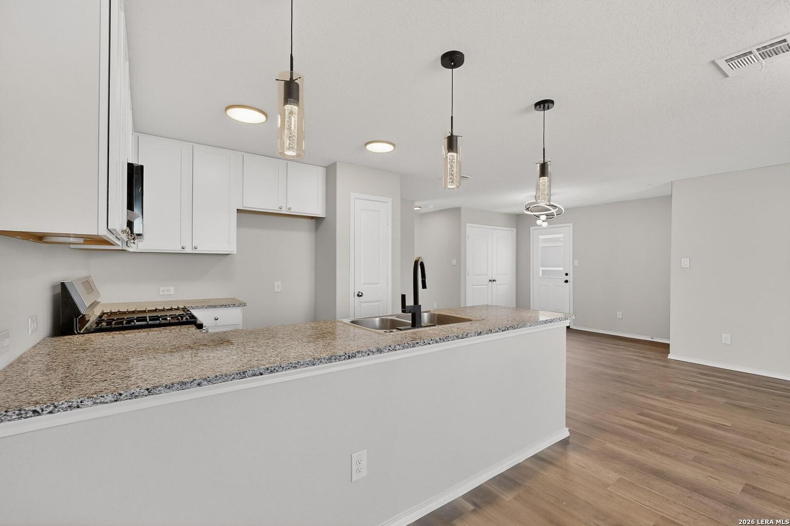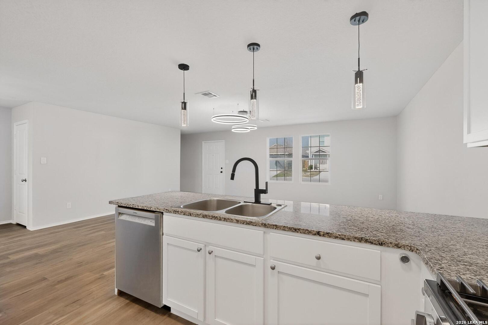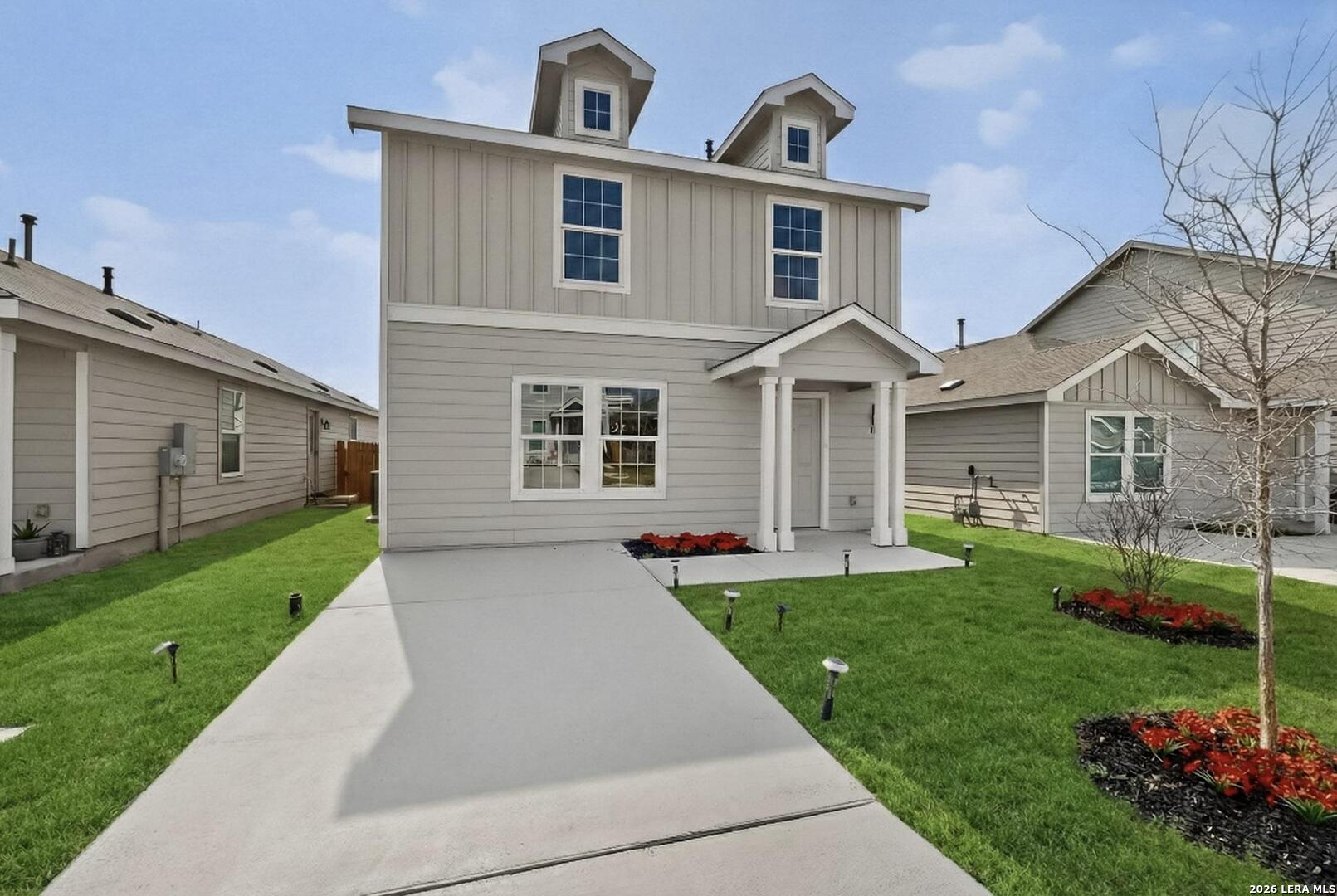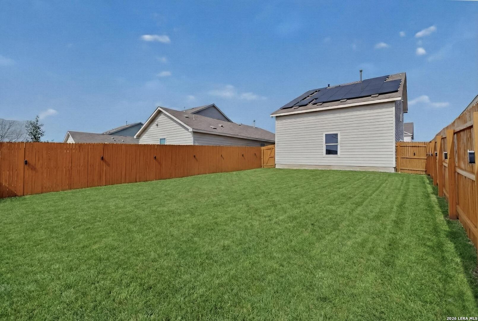 Beautifully maintained, move in ready, 4-bedroom, 2-bath home offering approximately 1,592 sq ft of living space, built in 2021 and situated on a large lot! Living room area is open floorplan with new luxury vinyl plank flooring. Kitchen features granite counter tops, amble cooking area with extra storage cabinets. Primary bedroom downstairs and three bedrooms upstairs with all new carpet. Recent upgrades include brand-new stainless steel appliances (microwave, dishwasher, and stove), new luxury light fixtures, updated plumbing fixtures, fresh interior paint. Enjoy added savings with energy-efficient solar panels. Large backyard great for entertaining and relaxing. Conveniently located in Southeast San Antonio near Brooks City Base with easy access to I-37, Loop 410, shopping, dining, and downtown. Move-in ready with modern updates don't miss it!