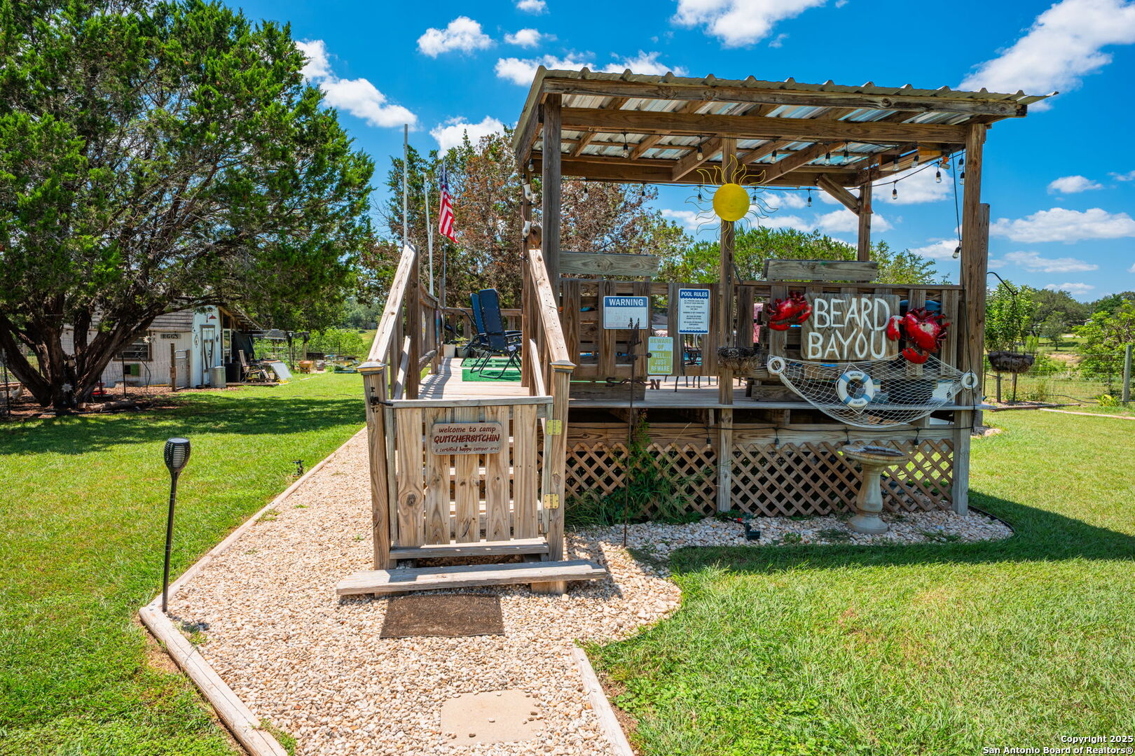 3BD/2 BA home w/1 BD/1 BA apartment unit-Currently an STR on Airbnb/VRBO as The Knotty Pine Cottage. Beautifully maintained 24' above ground pool with entertaining deck. 2 RV Hookups (50/30/110). All could be used for Guests/Rental Income/Multi-generational living. 1.1 Acre Private Homestead, No Restrictions/No HOA. Income Producing AirBnB, willing to convey Homestead Items. "Doesn't hurt to ask, it hurts not to!" Lots of Entertaining Hot Spots Beautiful @ Night-solar powered lighting. Multiple Garden Beds (Vegetable/Herbs) & Fruit Trees (Apple, Fig, Plum & Peach). Chicken Coop building w/electric, large tool shed building w/electric 2 Car Garage. Over $80k in UP-GRADES...Updated Living Spaces, Remodeled Bathrooms, Updated Kitchen Appliances, 10k Gallon Rainwater Collection System for self-sustained irrigation, Closed in Back Porch, Dual High Speed Internet Towers, Ceiling fans throughout. Listed @ $509,000 Also on Zillow. Owners flexible and eager to sell. FINANCING AVAILABLE TO QUALIFIED BUYER WITH GOOD DOWN PAYMENT