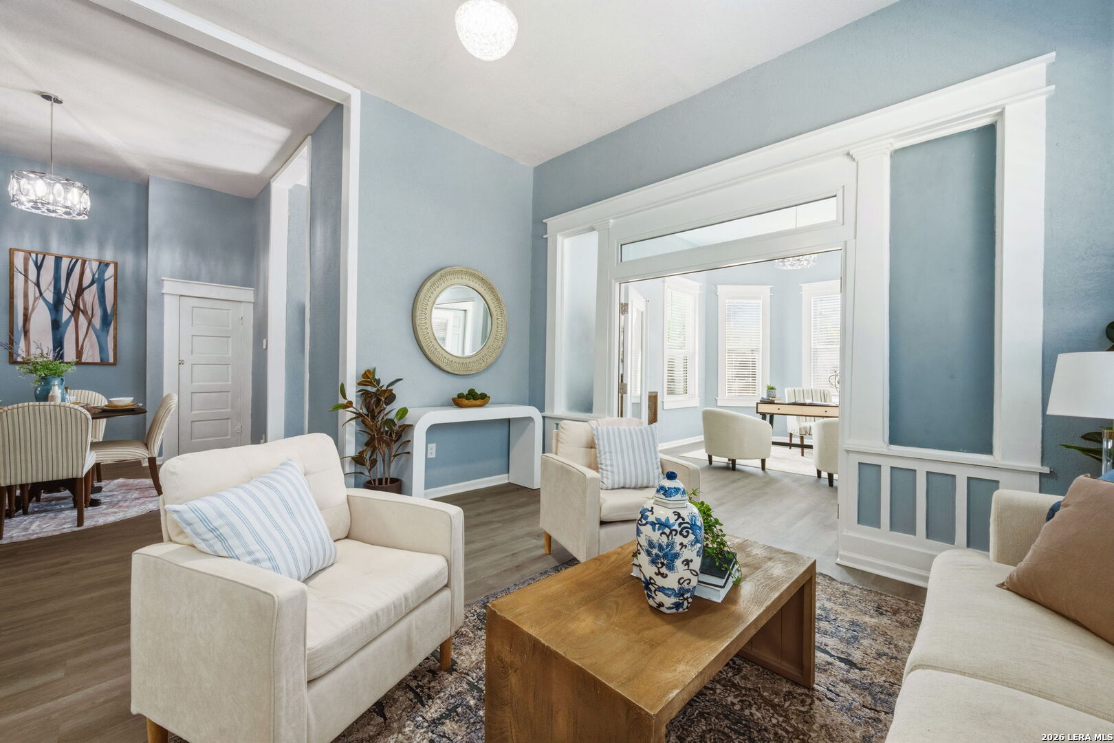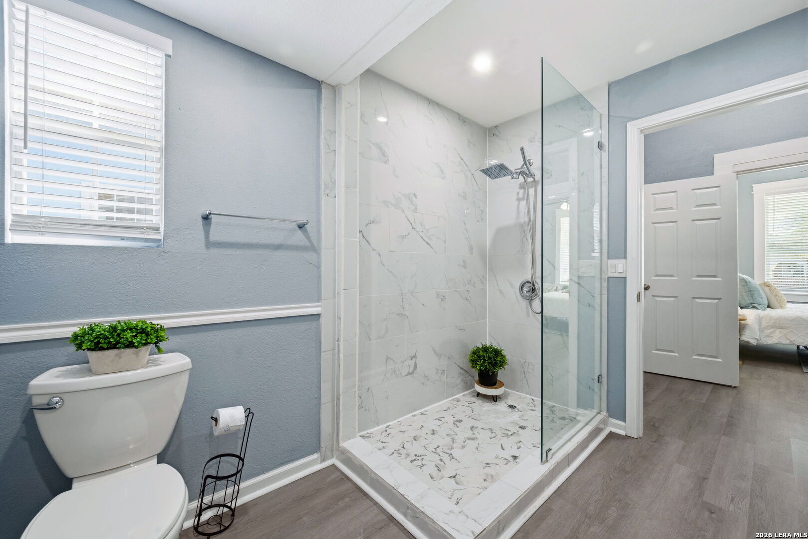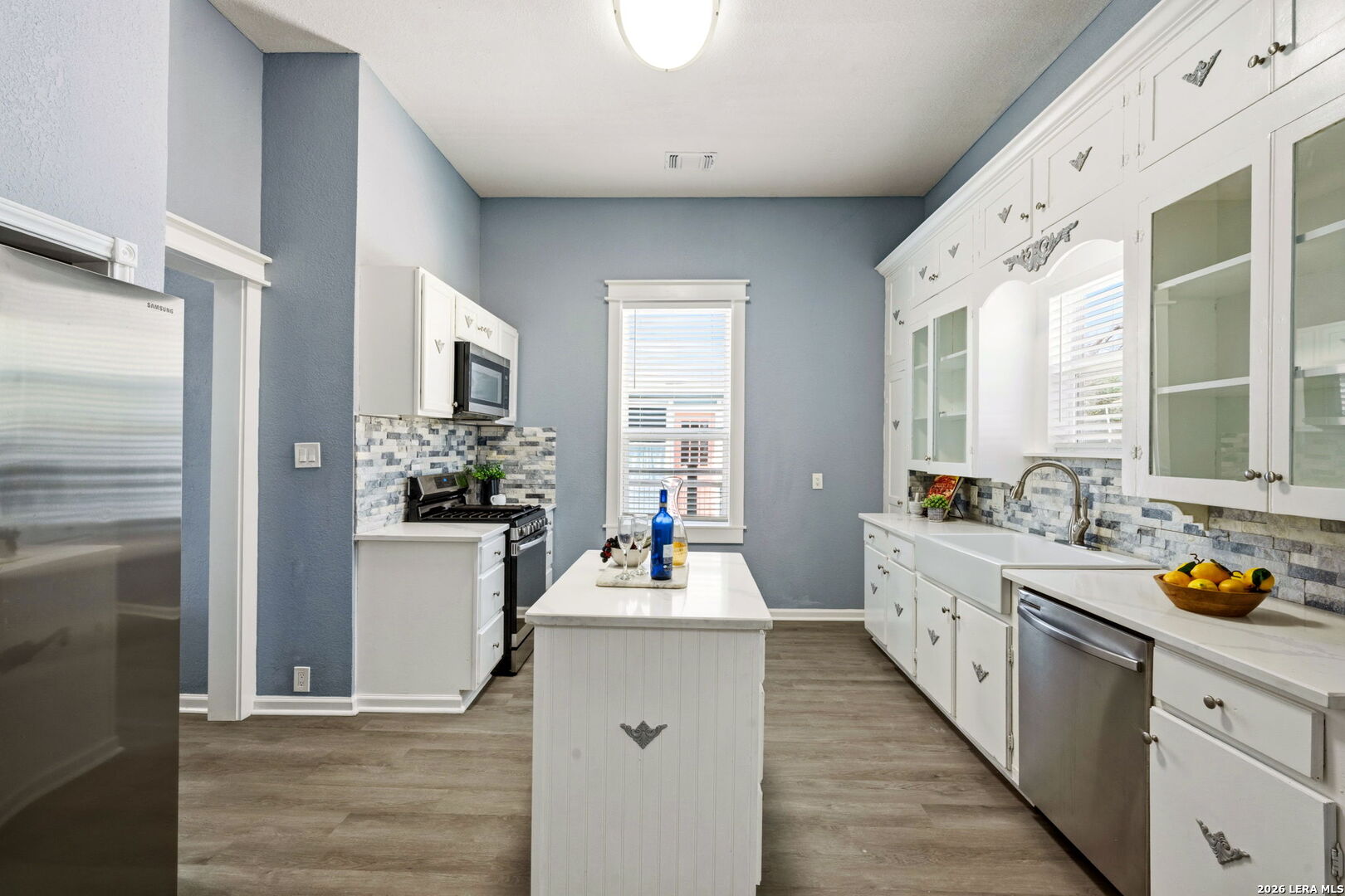 Live your best life in the heart of San Antonio's up-and-coming Lone Star District in this beautifully preserved and maintained 1930 Craftsman-style home just minutes from the River Walk, downtown restaurants, breweries, galleries, and live music. From the moment you step inside, the home's historic character shines through with original-style trim work, charming glass cabinet doors, & distinctive architectural details that give the space warmth and personality. The island kitchen with gas cooking and stainless appliances blends vintage charm with modern convenience and creates a natural gathering place for everyday living or entertaining. The spacious primary suite features a dedicated dressing area and a large full bath ensuite with both a soaking tub and luxurious shower. A spiral staircase leads to a versatile upstairs space that can serve as a third bedroom, creative studio, home office, or private retreat. Step out back to a large wooden deck and expansive backyard, offering rare outdoor space for a downtown property making it perfect for entertaining, gardening, or relaxing under the Texas sky. The property is framed by durable ranch-style metal fencing and includes a detached oversized two-car garage +storage, another uncommon find this close to the city center. With historic charm, modern updates, generous outdoor space, and one of the most exciting locations in San Antonio, 415 Helena offers a downtown lifestyle that's both authentic and unforgettable.