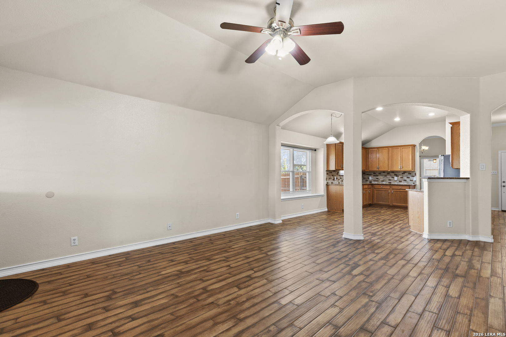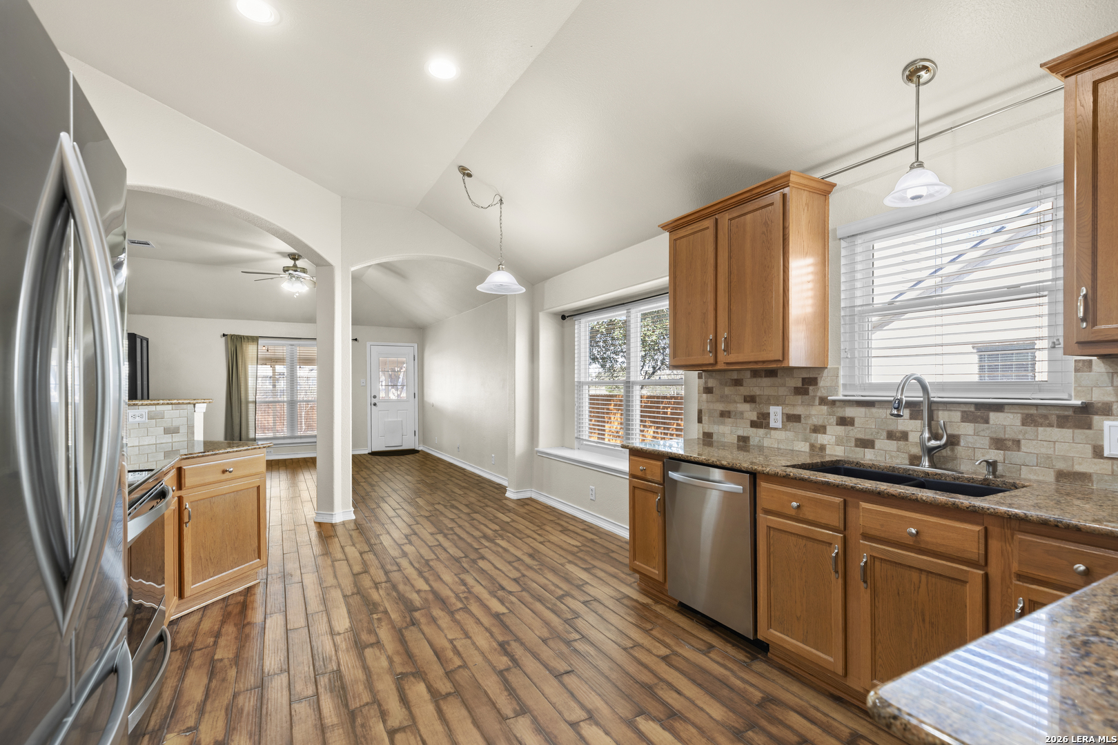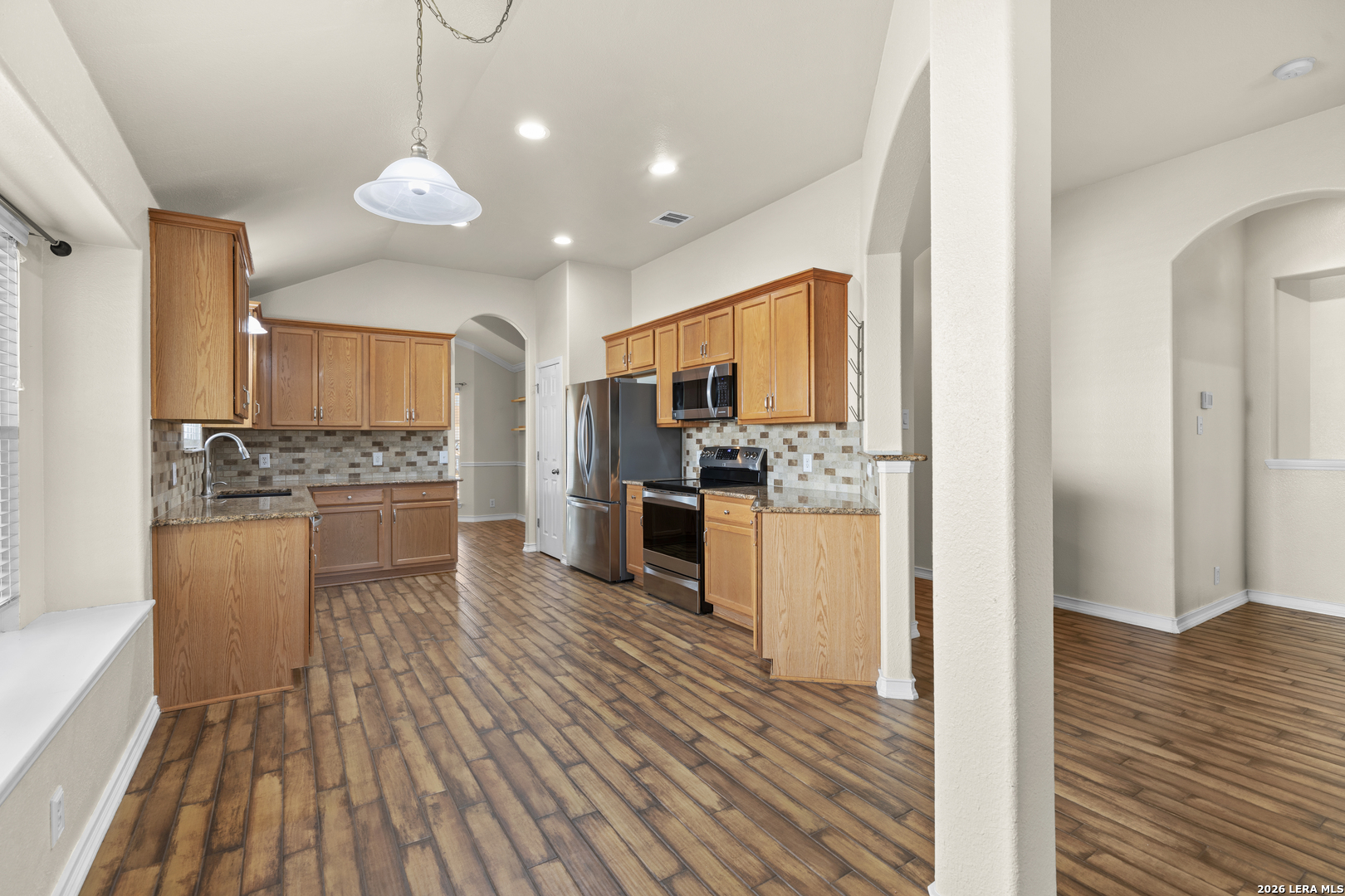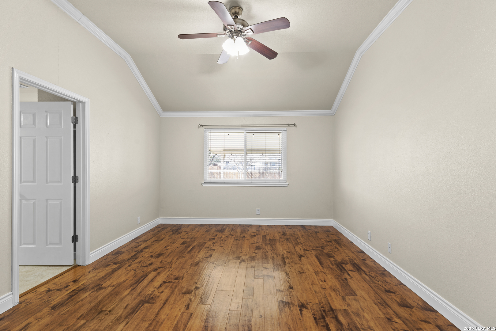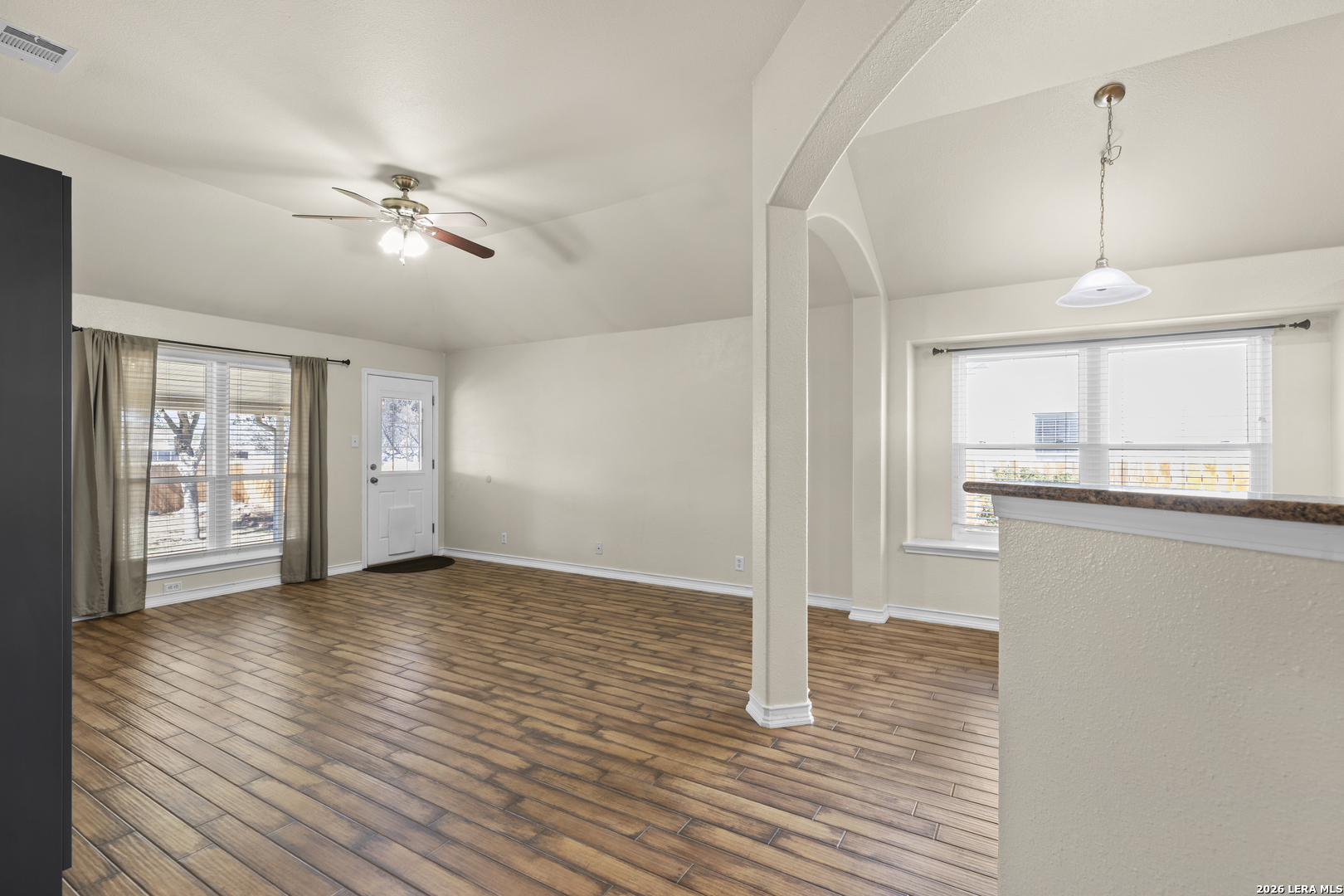 Welcome to this beautifully maintained 3-bedroom, 2-bath home featuring high ceilings, crown molding, and a bright open-concept floor plan. Enjoy a spacious, private backyard backing to green space-perfect for relaxing or entertaining. The kitchen offers generous granite counter space and a sunny breakfast area, ideal for everyday living. Bedrooms have 1 year old luxury vinyls. The expansive primary suite includes a private ensuite bath and an extra-large walk-in closet. The converted garage provides flexible space for a home office, workshop, or hobby room and can easily be converted back to a full garage if desired. And around the entire house is a paved walk way. Major updates include an HVAC system replaced in 2020, a professionally repaired foundation by Ramjack (September 2023) currently under warranty, and a brand-new roof installed December 7, 2023-offering peace of mind for years to come.
