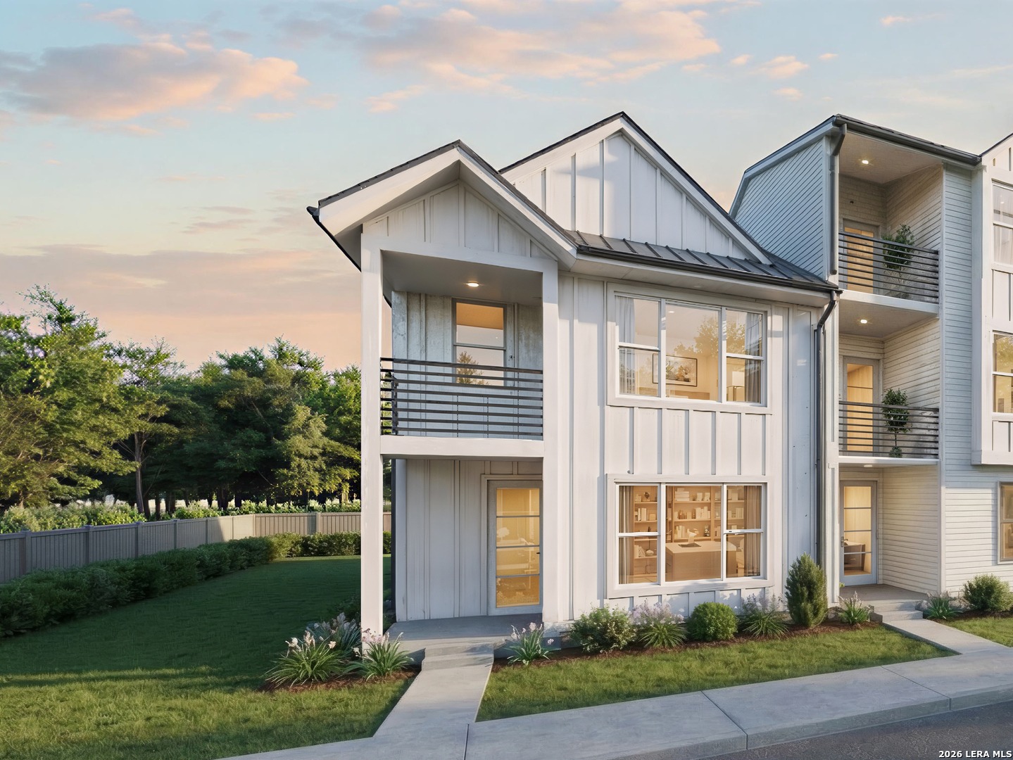 Welcome to Victoria Commons, located in the culturally rich and vibrant Lavaca Neighborhood part of Southtown. Steps from everything Downtown San Antonio has to offer, including award-winning restaurants, cocktail lounges, coffee shops, vibrant arts scene, theater and music venues, Alamodome, Hemisphere-Civic Park, Riverwalk, Blue Star Arts Complex, Museum and Mission Reach, and ease of access to major expressways. Don't miss out on the chance to experience the best of city living in this truly exceptional home. Experience the Capistrano floorplan, a seamless blend of contemporary design and everyday comfort in this corner unit two-story townhome. The entry level features a bright and open living space that flows into the dining area and kitchen. The kitchen features quartz countertops, tasteful backsplash, sleep appliances, gas cooking, custom cabinetry, pantry, and peninsula for entertaining. The primary suite offers a tranquil retreat with a dual-vanity bath, walk-in shower, private balcony, and a generously sized closet. Secondary en-suite bedroom offers options for guests or an office space. Entertaining is a breeze with a covered patio on the main level with a private enclosed yard, perfect to let the pups run around or a quaint garden. Thoughtful design, abundant upgrades, and energy-efficient, low-maintenance features make everyday living effortless. Home to be built, slated for late 2026 completion. Rendering images are for illustrative purposes, selections, elevations, and design is subject to change.