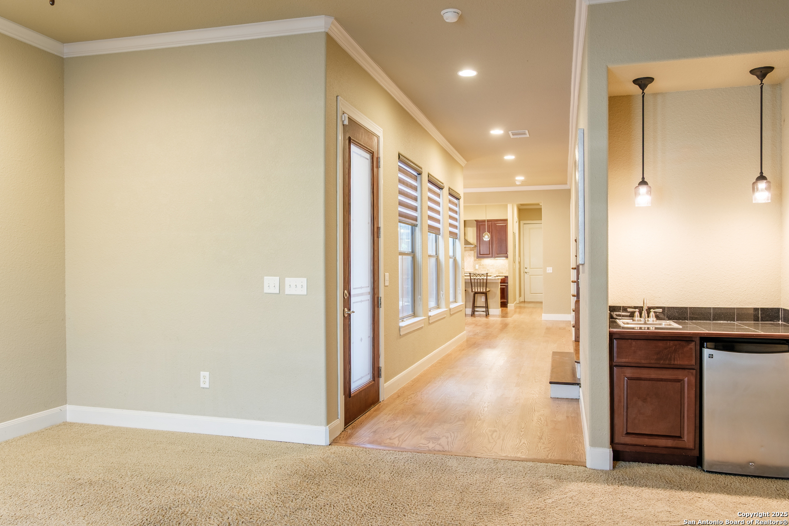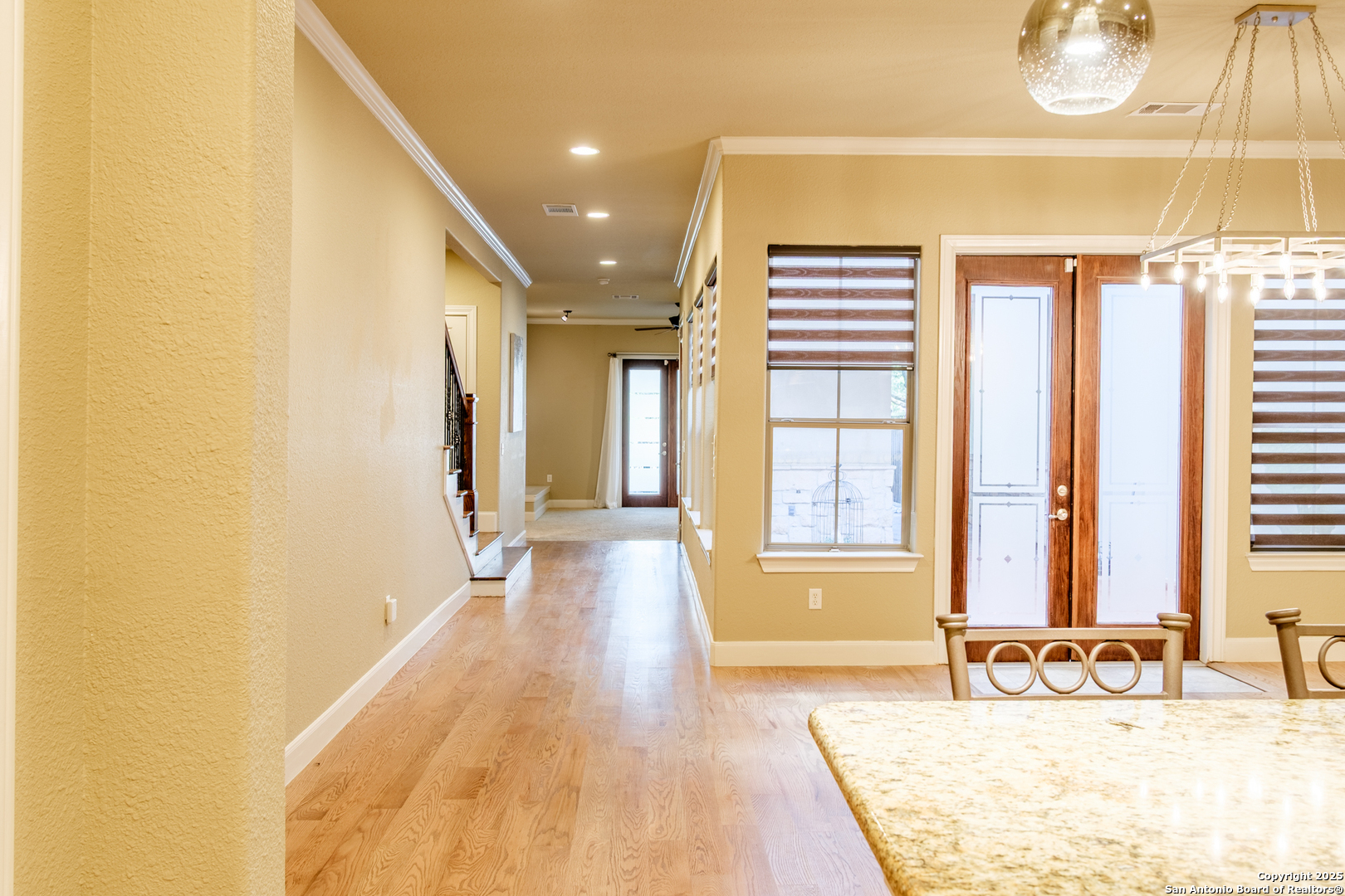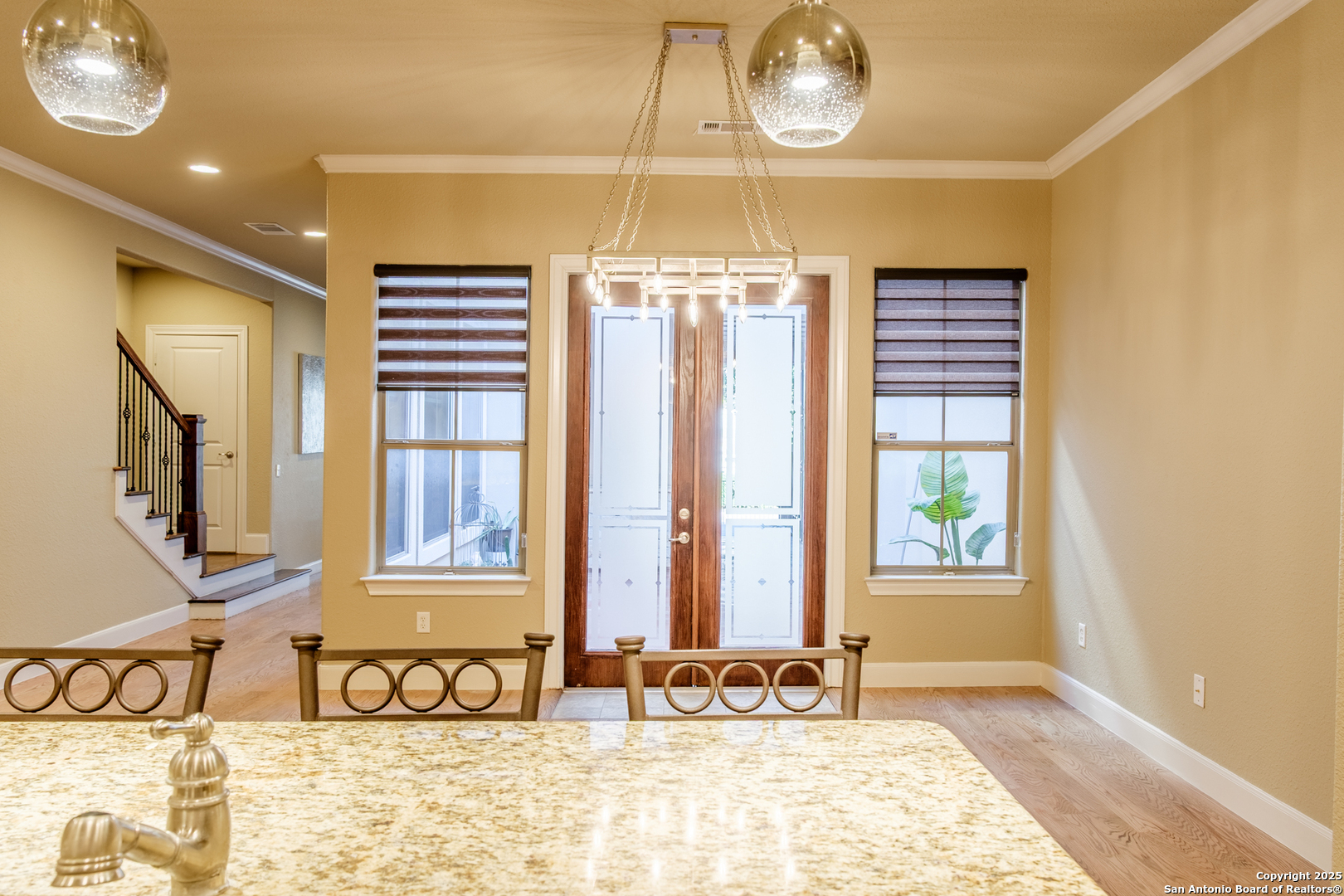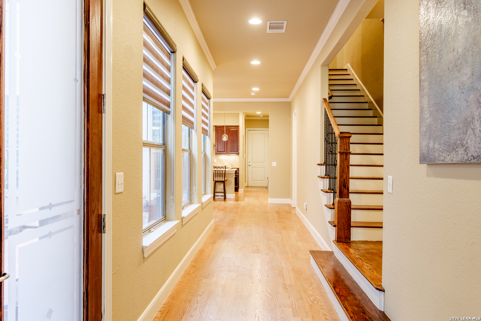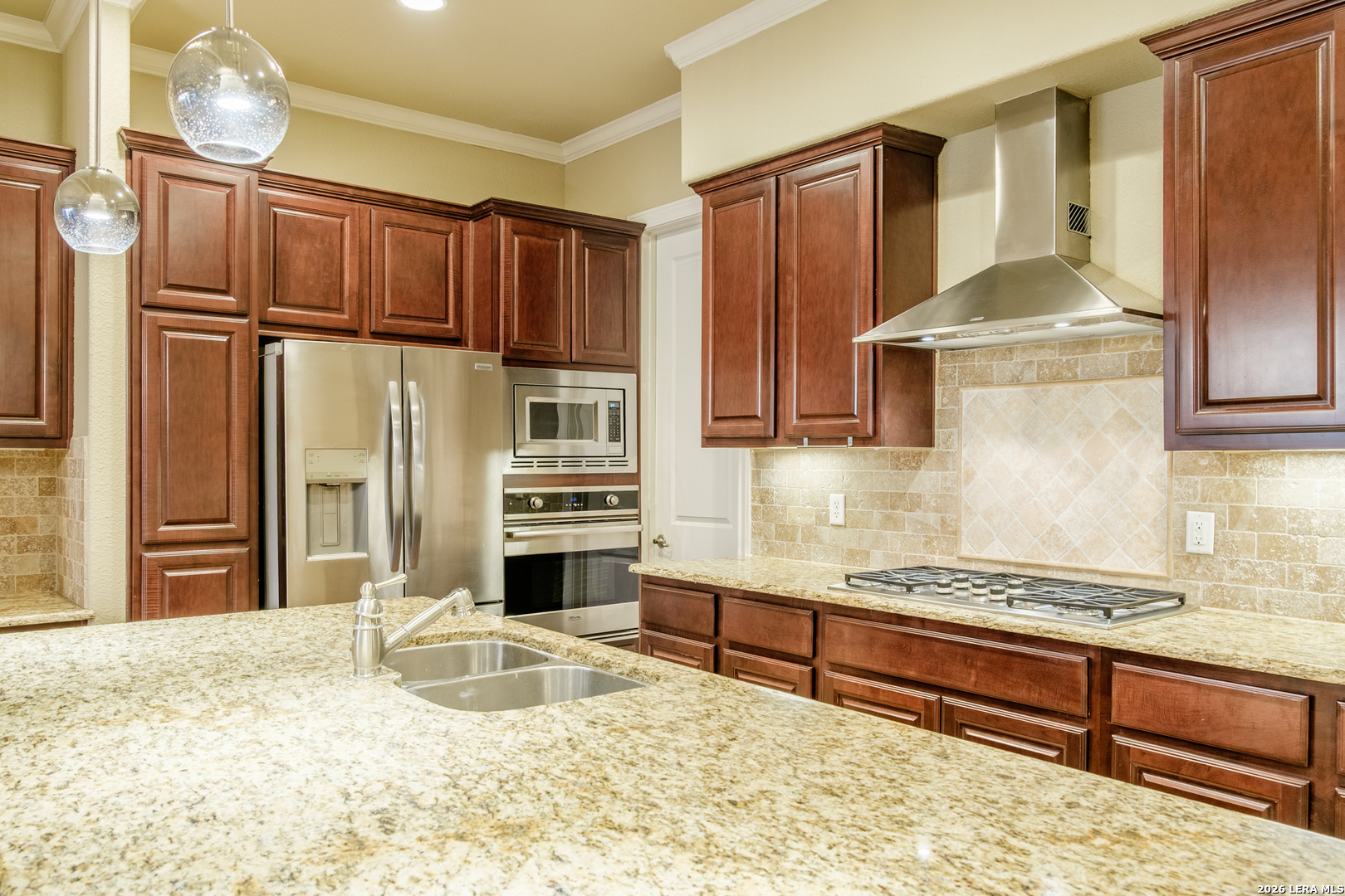 Nestled in the heart of Shavano Park, this two-story luxury garden villa boasts a Tuscan Contemporary design. Features a gourmet kitchen with a granite island, gas cooktop, and Viking stainless appliances. The versatile and open floor plan includes a private interior courtyard, providing ample space for relaxation and entertaining. Throughout the villa, custom designer upgrades add a touch of elegance, while an optional elevator shaft enhances convenience. The master suite boasts a balcony, a private fireplace, and a sitting area. The living room features a fireplace and a wet bar, while the second living area and study are located upstairs. Oversized two-car garage ensures ample parking for guests. Located in the desirable Shavano Park area that is close to the Texas Hill Country, Nature Parks, UTSA, the South Texas Medical Center and other major Entertainment, Shopping and Dining destinations. This home is in Move-In Ready condition and Convenience, Luxury and Enjoyment awaits!