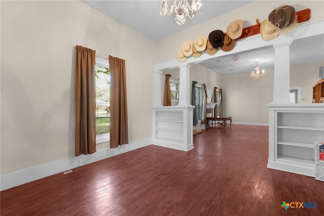 12.83 BEAUTIFUL acres covered in healthy, mature trees within minutes of Lampasas! This property has it all! Upon entering and driving down the lane you will see a great farmhouse that has a lot of charm. Many updates and additions have been made over the years to make the home functional but it still maintains its character with built in bookcases, vintage light fixtures and beautiful columns in the main living area. High ceilings in the main room make it feel large and open. The home has 2 full baths and an updated kitchen. Other recent updates include the septic tank, the metal roof, fencing, the 40x30 shop with roll up doors, paint and much more!