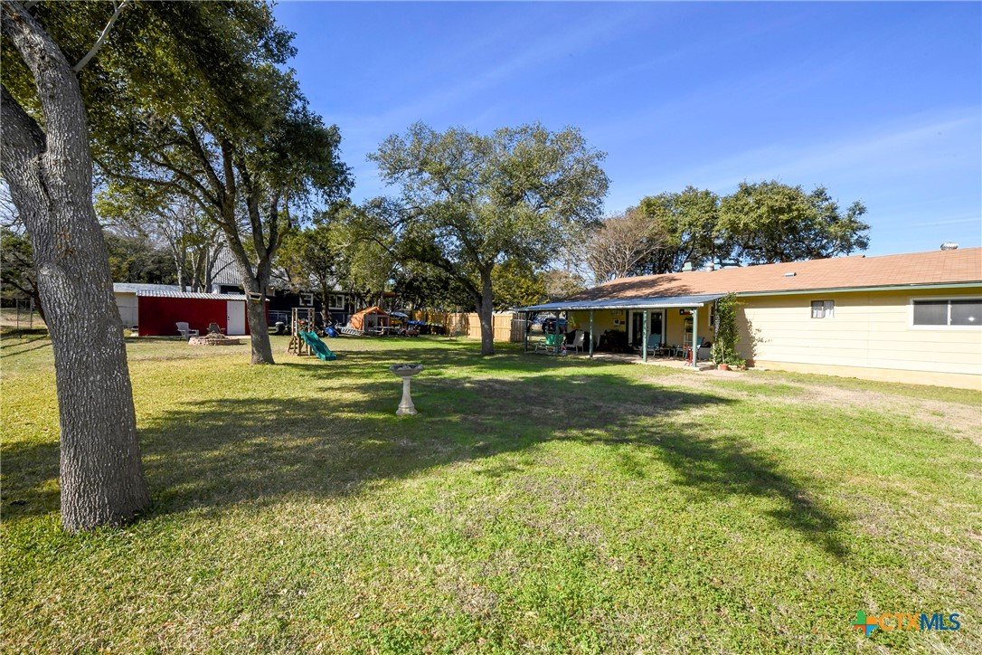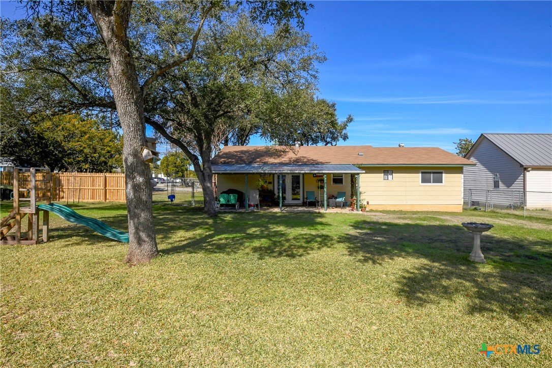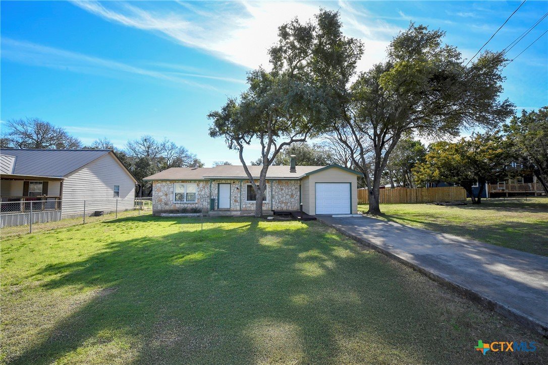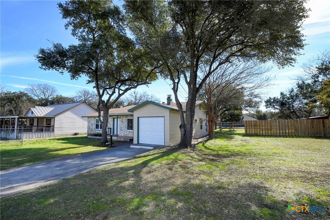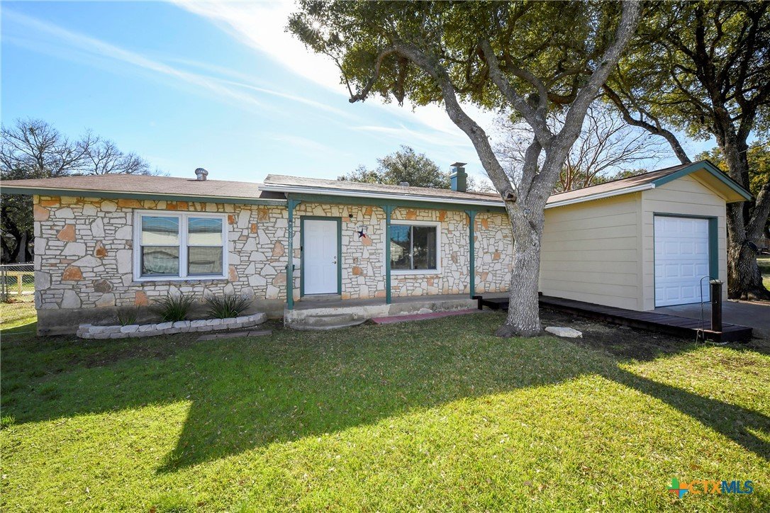 Plant a garden, create a playground, and bring your chickens! This charming home is set on a level lot with mature trees, providing a peaceful, shaded escape. The open floor plan is anchored by a stunning rock fireplace, adding character to the space. New upgrades include a custom cedar-lined hall closet and a versatile bonus room- ideal for an office, hobby space, or media room (not included in square footage). The home features updated windows that enhance both its aesthetic appeal and energy efficiency, keeping it quiet and reducing utility costs. Recent electrical updates ensure peace of mind. The 2020 HVAC unit and 10'x25' attached garage with a deck walkway offer convenience and plenty of storage. The backyard is perfect for outdoor living, with an 11' x 27' covered porch. The entire exterior has been freshly caulked and painted, making this home both beautiful and move-in ready!