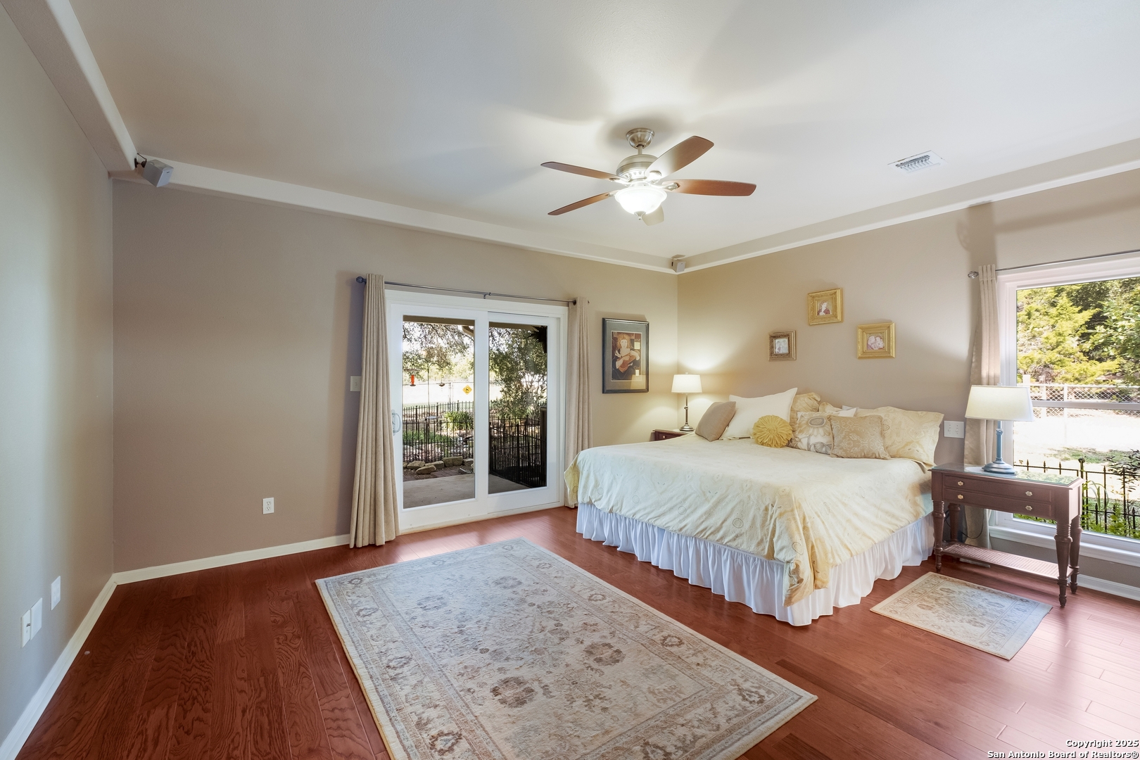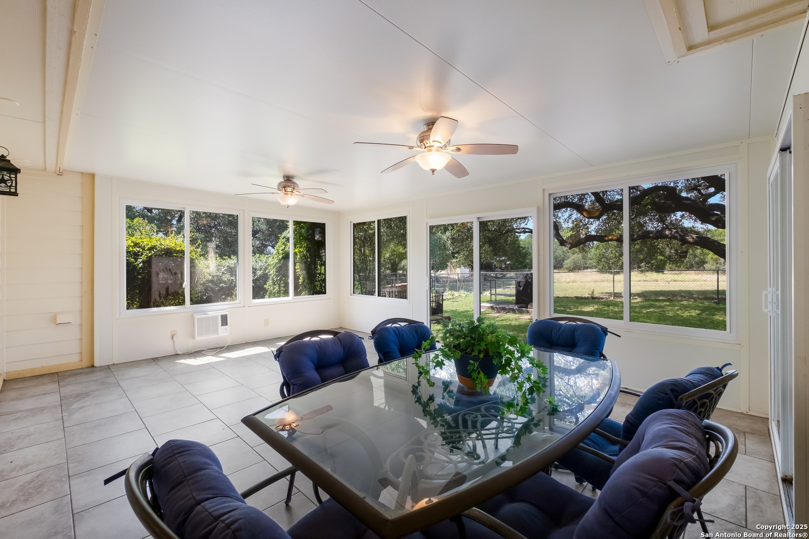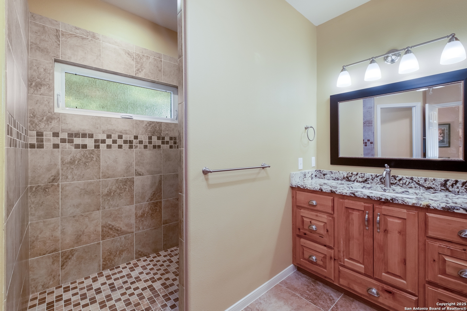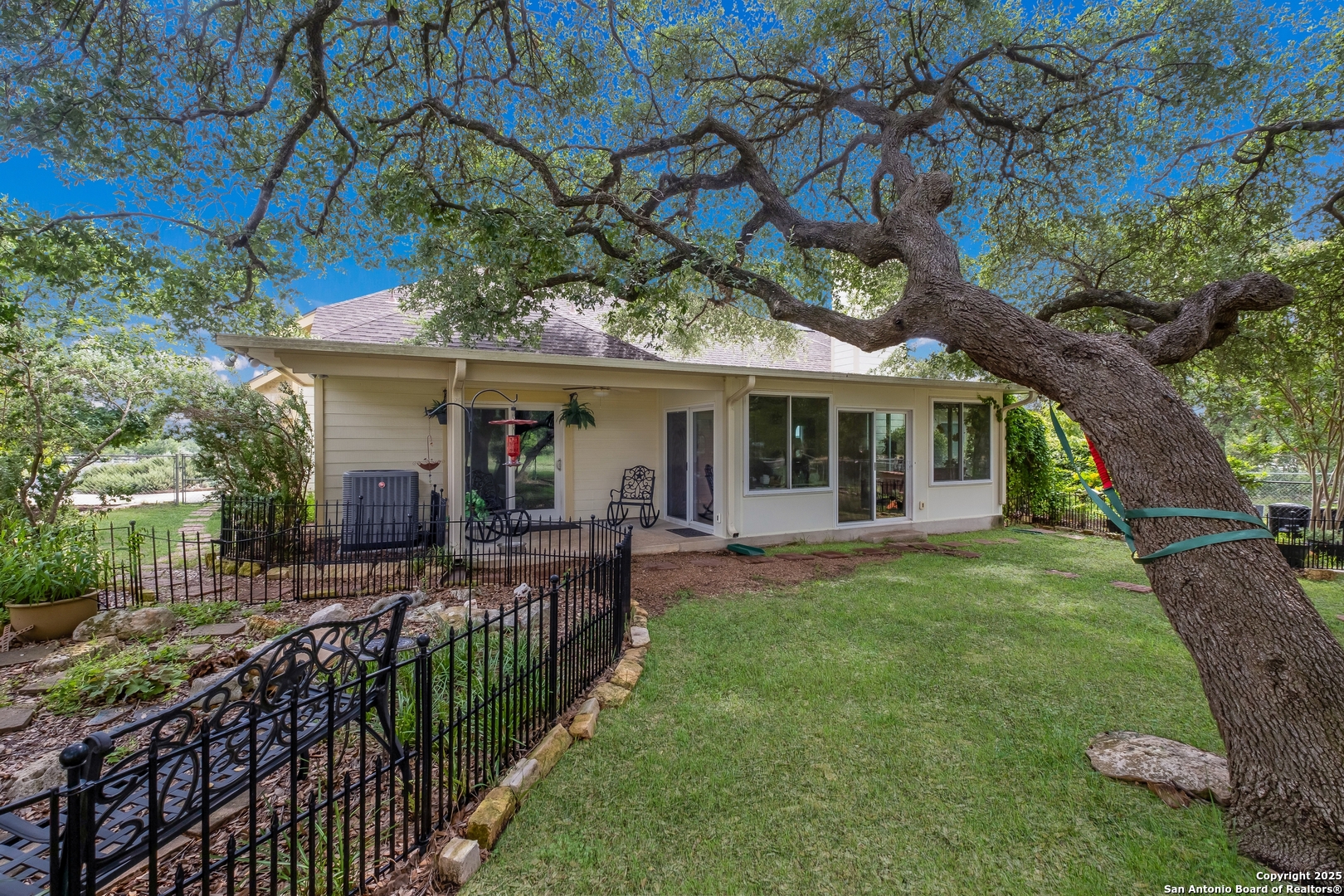 Welcome to your slice of Texas Hill Country paradise! This stunning 4-bedroom, 2.5-bathroom home sits proudly on 3.59 acres of level land, where mature oak trees provide natural shade and year-round beauty. With 2,137 square feet of thoughtfully designed living space plus a delightful 300-square-foot Four Seasons sunroom featuring new tile flooring and trim, you'll have plenty of room to spread out and breathe easy. Step inside to discover gorgeous wood floors flowing throughout the main living areas, centered around an open floor plan concept that seamlessly connects the living room with a stunning enhanced stone fireplace to the dining area and completely renovated kitchen. This flowing layout creates an inviting space perfect for both everyday living and entertaining. The kitchen would make any chef smile, featuring gleaming granite countertops, creamy white cabinetry, stainless steel appliances, butcher block island, subway tile backsplash, and pull-out drawers in most lower cabinets. The modern induction cooktop provides precise temperature control and energy efficiency, while the huge walk-in pantry offers abundant storage for all your culinary essentials. The open design allows conversation to flow naturally between the kitchen, dining area, and living room, creating a warm and welcoming atmosphere.The primary bathroom transformation is nothing short of spectacular, featuring a luxurious walk-in tiled shower with tile bench and built-in storage for the ultimate in comfort. The outdoor living spaces truly shine with extensive improvements including a new 8x10 covered patio complete with ceiling fan for comfortable entertaining. A dedicated 5x7 concrete grilling pad creates the perfect outdoor cooking space, while your Four Seasons sunroom provides year-round enjoyment. Thoughtful landscaping additions include fruit trees, elegant crepe myrtles, and beautiful gardens throughout the property. The Purple Martin house adds charming character while supporting local wildlife. Beyond these improvements, you'll find a detached 2-car garage and workshop, enhanced split rail fencing with recent expansions, fresh exterior painting, and a fenced backyard perfect for furry family members. The expansive acreage is ideal for horses, chickens, and goats. The real treasure lies in your exclusive access to the Guadalupe River through the private homeowner's river park. Located in the desirable River Mountain Ranch community within the highly-rated Boerne Independent School District, you're just minutes from Cave Without a Name, local wineries, and charming Boerne shopping.