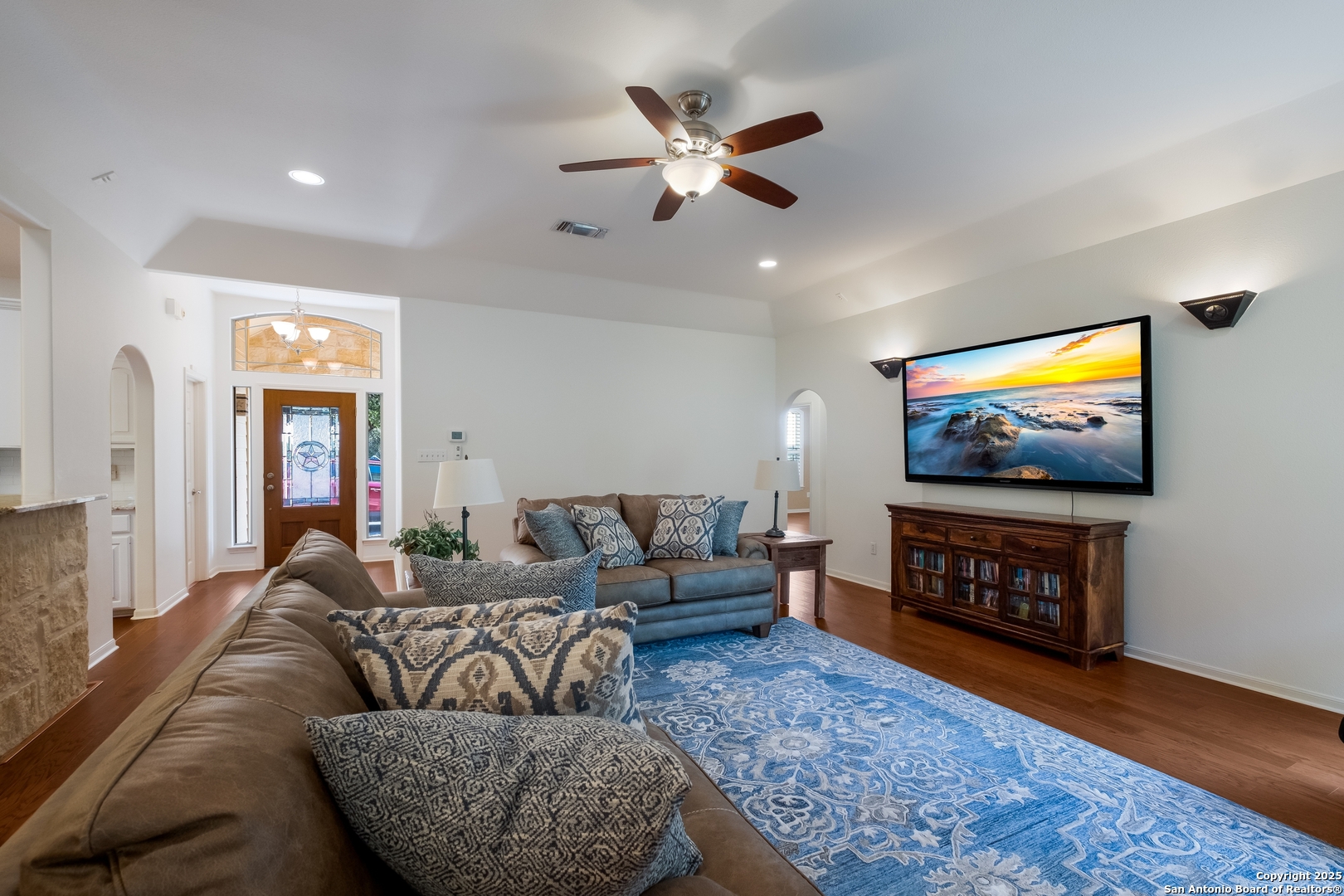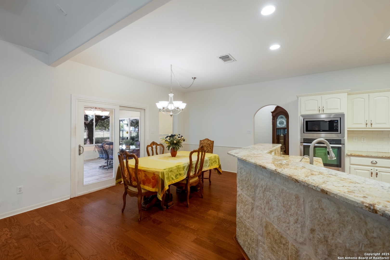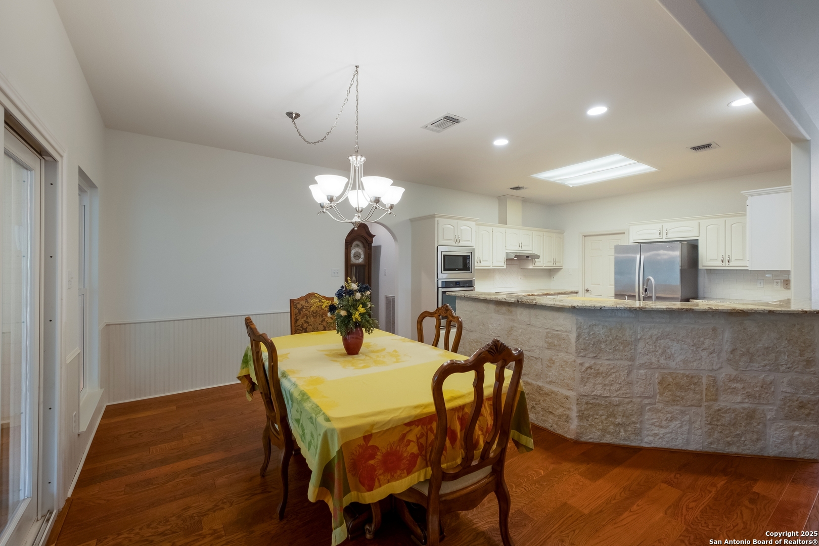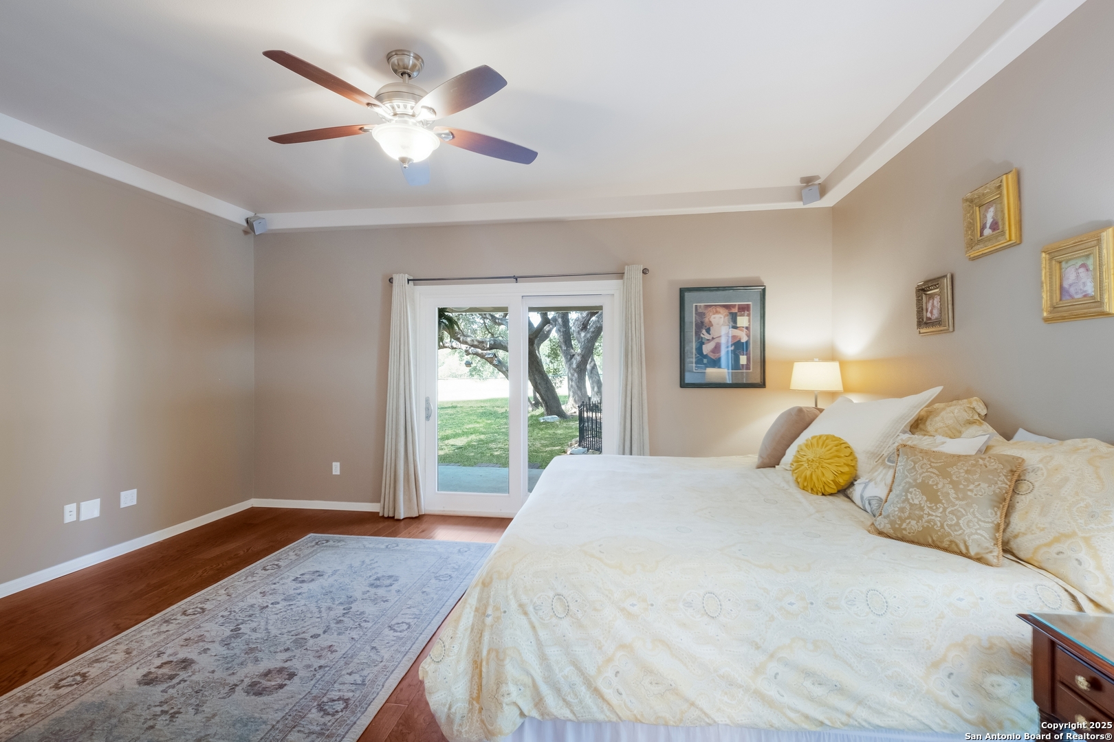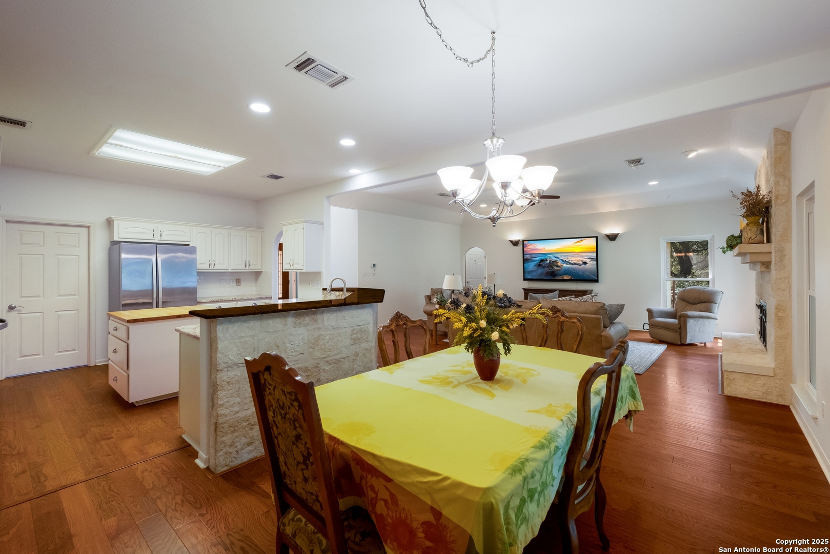 Welcome to your slice of Texas Hill Country paradise! This stunning 4-bedroom, 2.5-bathroom home sits proudly on 3.59 acres of level land, where mature oak trees provide natural shade and year-round beauty. With 2,137 square feet of thoughtfully designed living space plus a delightful 300-square-foot Four Seasons sunroom featuring new tile flooring and trim, you'll have plenty of room to spread out and breathe easy. Step inside to discover gorgeous wood floors flowing throughout the main living areas, centered around an open floor plan concept that seamlessly connects the living room with a stunning enhanced stone fireplace to the dining area and completely renovated kitchen. This flowing layout creates an inviting space perfect for both everyday living and entertaining. The kitchen would make any chef smile, featuring gleaming granite countertops, creamy white cabinetry, stainless steel appliances, butcher block island, subway tile backsplash, and pull-out drawers in most lower cabinets. The modern induction cooktop provides precise temperature control and energy efficiency, while the huge walk-in pantry offers abundant storage for all your culinary essentials. The open design allows conversation to flow naturally between the kitchen, dining area, and living room, creating a warm and welcoming atmosphere.The primary bathroom transformation is nothing short of spectacular, featuring a luxurious walk-in tiled shower with tile bench and built-in storage for the ultimate in comfort. The outdoor living spaces truly shine with extensive improvements including a new 8x10 covered patio complete with ceiling fan for comfortable entertaining. A dedicated 5x7 concrete grilling pad creates the perfect outdoor cooking space, while your Four Seasons sunroom provides year-round enjoyment. Thoughtful landscaping additions include fruit trees, elegant crepe myrtles, and beautiful gardens throughout the property. The Purple Martin house adds charming character while supporting local wildlife. Beyond these improvements, you'll find a detached 2-car garage and workshop, enhanced split rail fencing with recent expansions, fresh exterior painting, and a fenced backyard perfect for furry family members. The expansive acreage is ideal for horses, chickens, and goats. The real treasure lies in your exclusive access to the Guadalupe River through the private homeowner's river park. Located in the desirable River Mountain Ranch community within the highly-rated Boerne Independent School District, you're just minutes from Cave Without a Name, local wineries, and charming Boerne shopping.