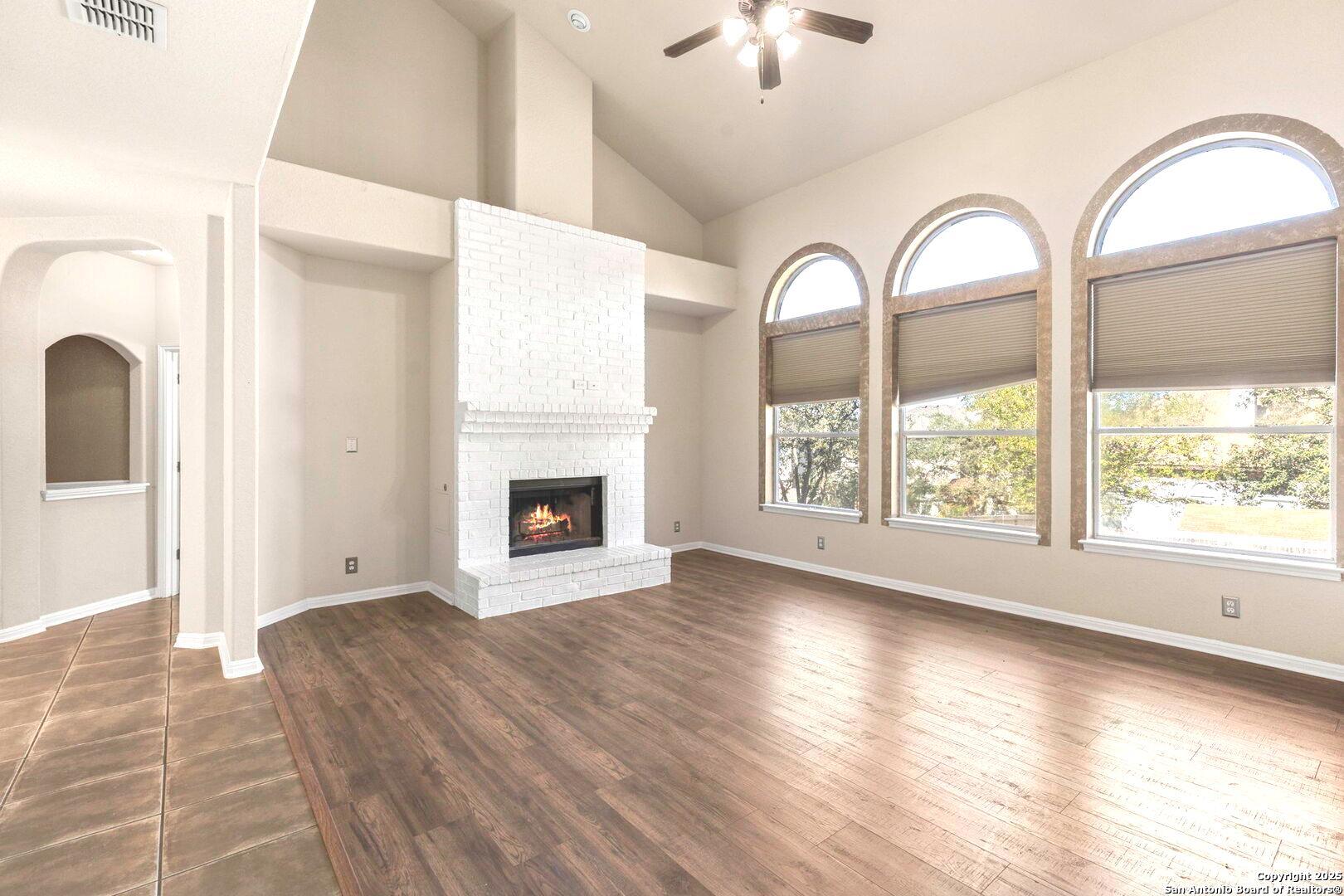 MOVE IN READY IN STONE OAK !!! This elegant and charming 4/3.5 rental home located in the heart of Stone Oak in the coveted Remington Heights neighborhood, features an open floor plan with abundant natural light and upgrades galore! Master bedroom is down, updated master bathroom with double vanities, separate shower and garden tub and walk-in closet. The nice size living/family room with new floors is accentuated with arched windows and a grand brick gas fireplace and is separate from the dinning room. Upstairs are 2 bedrooms w/1 bath and a 3rd bedroom with private full bath & a nice size game room/loft with new floors. Kitchen w/ SS appliances including a double oven range and a new Dishwasher and Refrigerator, opens to the living/family room & breakfast rm. Covered backyard patio with a new Gazebo!! Great schools! Enjoy neighborhood pool and other amenities and the easy access to top class shopping, restaurants and major highways!!Situated in a cul-de-sac with a great curb appeal. Schedule a showing today.